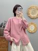 Camisa de manga larga para mujer de algodón puro con estampado artístico retro de tiras finas, primavera y otoño 2025, nueva camisa combinable.