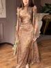 Vestido de verano para mujer, estilo europeo y americano, con cuello redondo, estampado, manga larga, corte entallado, a la moda, Amazon 2025