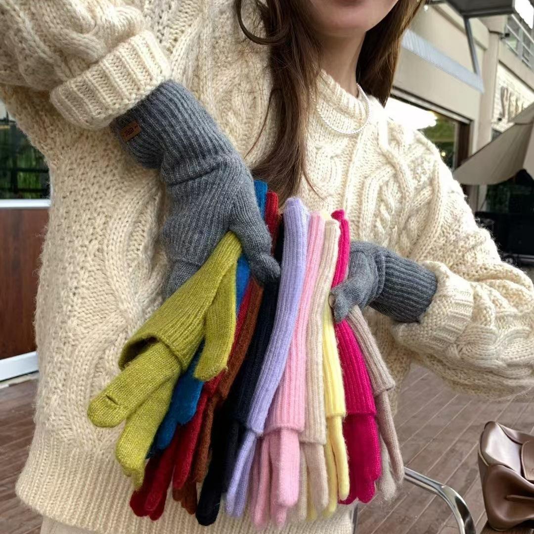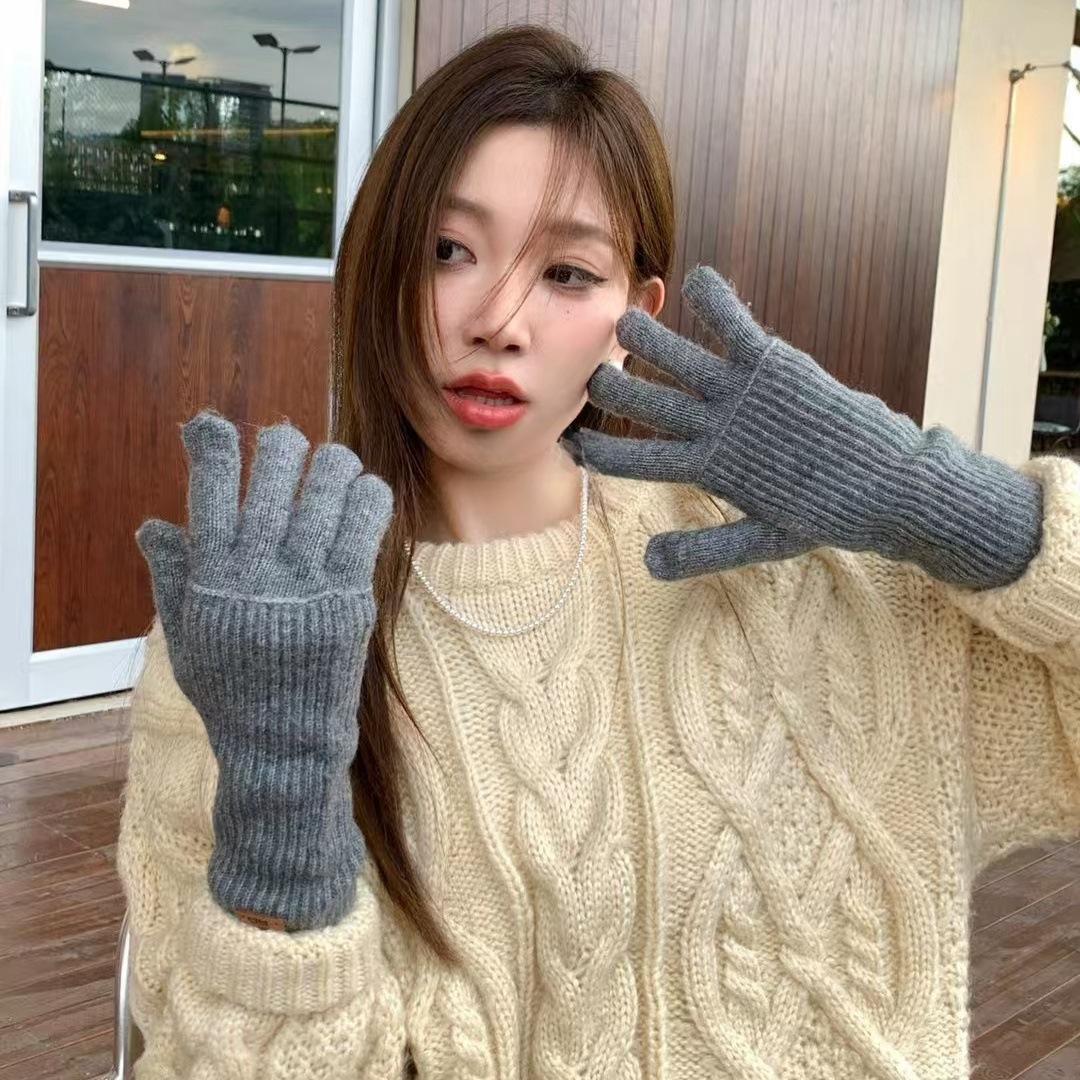 Guantes de invierno cálidos para mujer, estilo coreano, con pantalla táctil, combinables, de punto, 2024