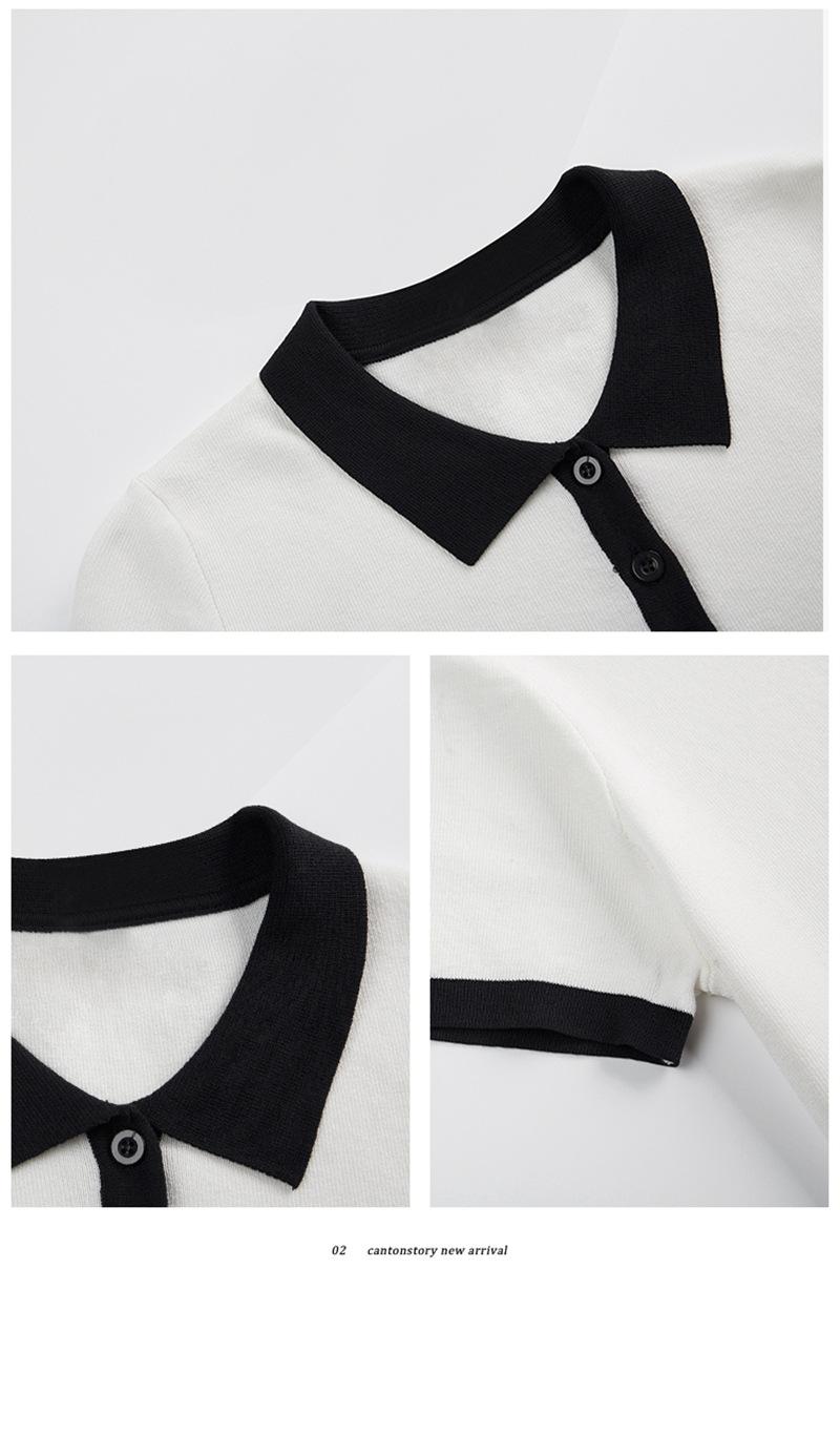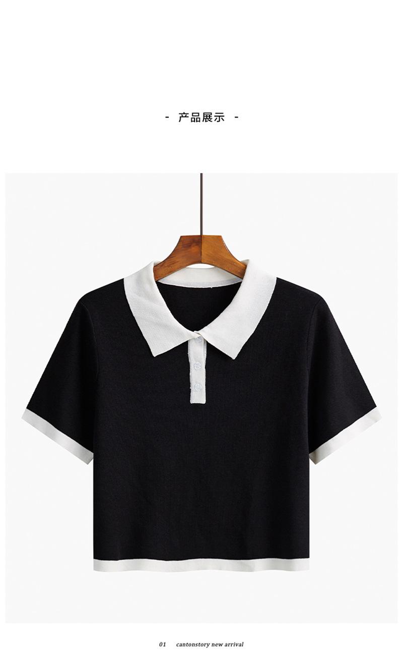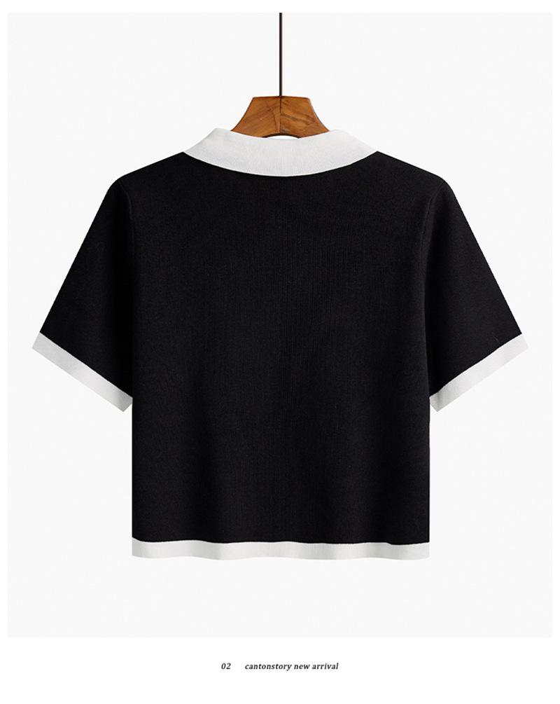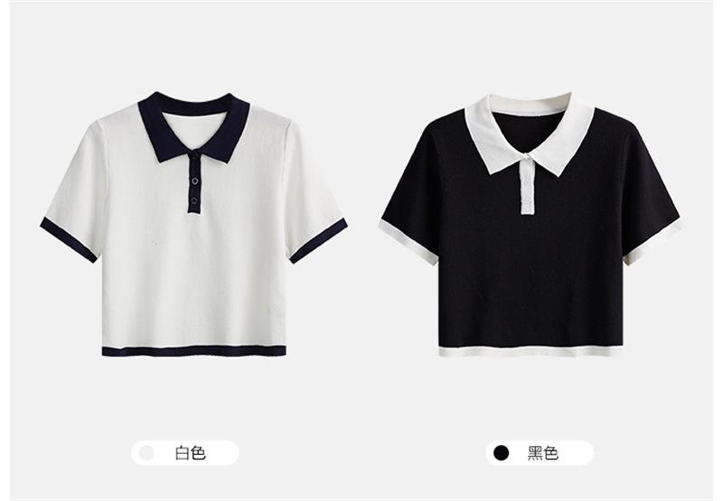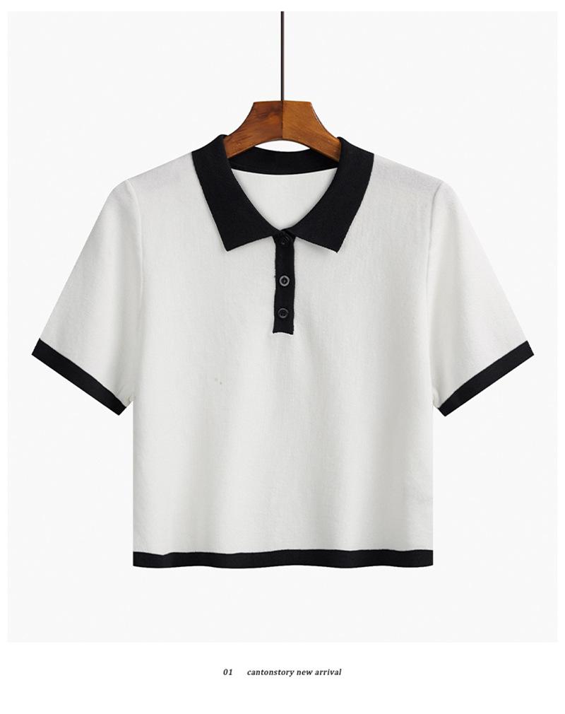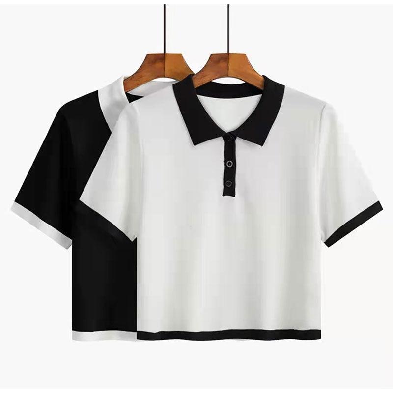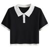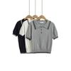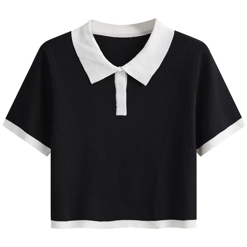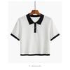 Camiseta de Punto de Manga Corta con Hombro Descubierto para Gorditas Diseño Estilo Francés Cuello Polo Top Corto Ajustado
