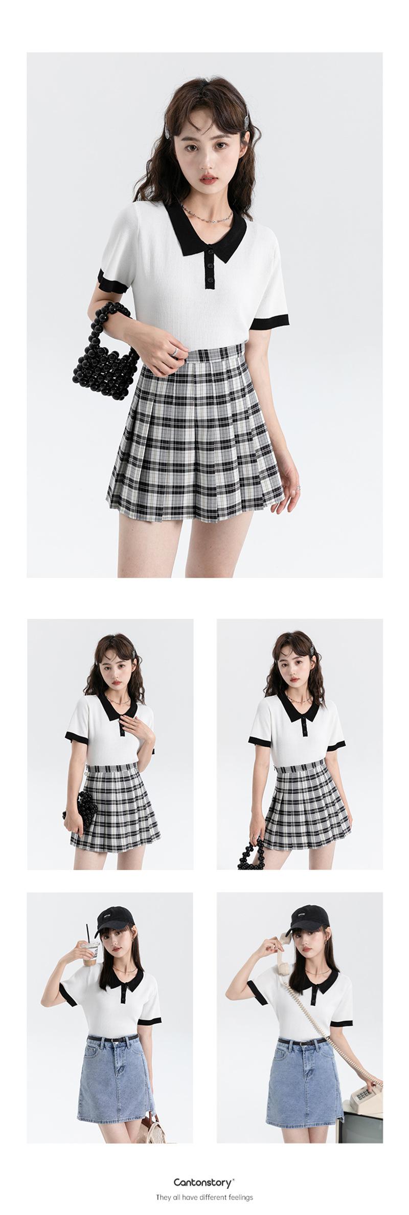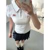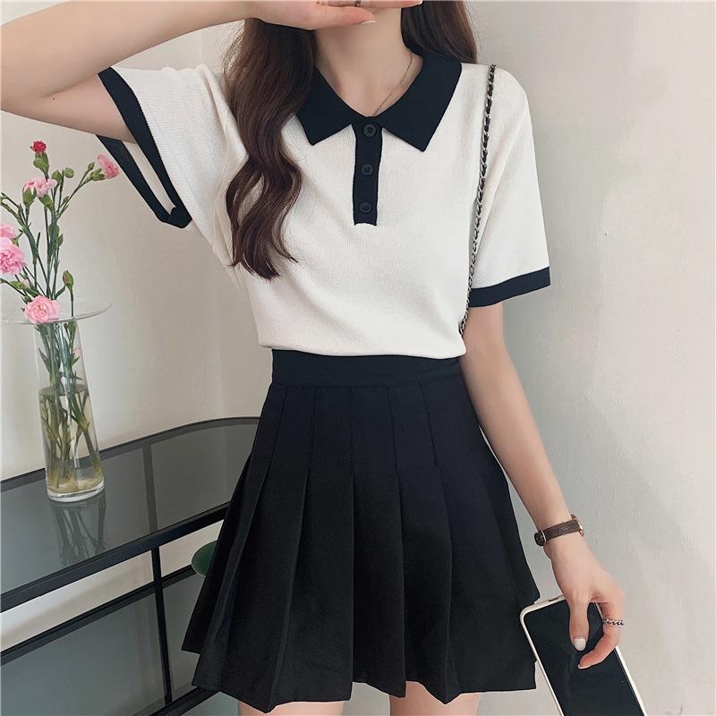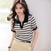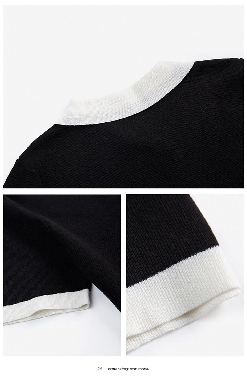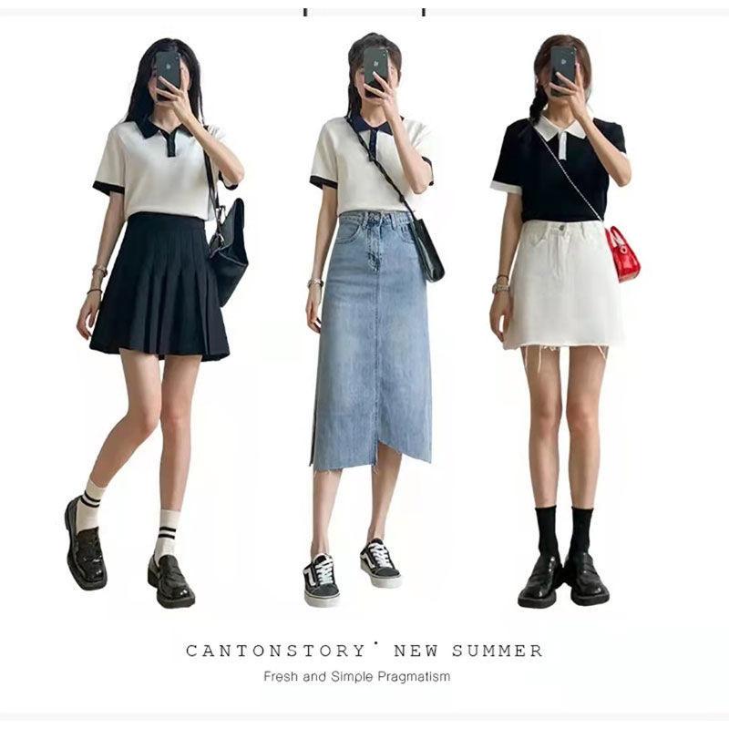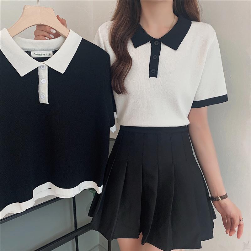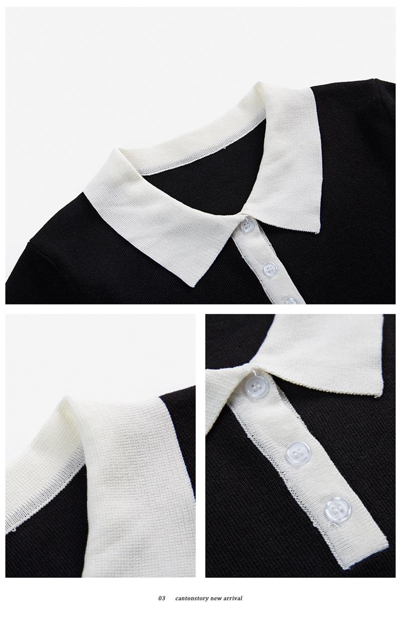 Camiseta de Punto de Manga Corta con Hombro Descubierto para Gorditas Diseño Estilo Francés Cuello Polo Top Corto Ajustado
