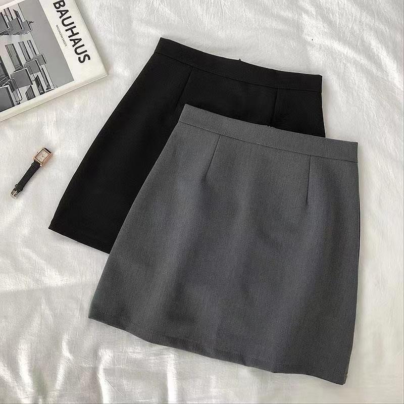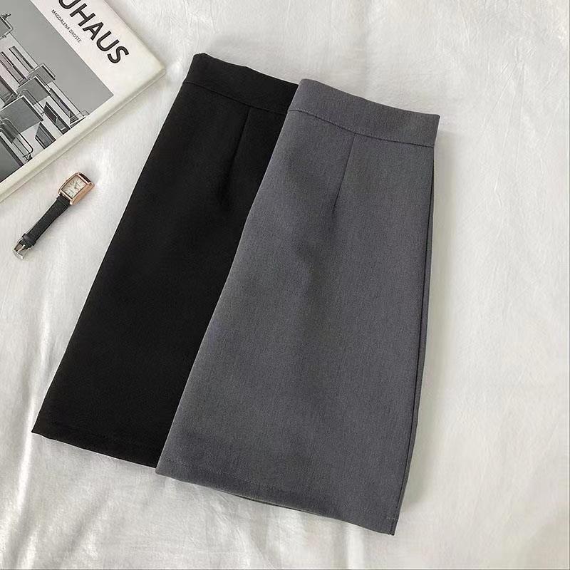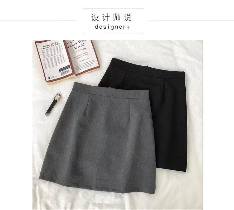Falda corta de cadera, falda de traje de media longitud, falda negra clásica, falda profesional para mujer, bolsa de cintura alta, falda adelgazante de color sólido A