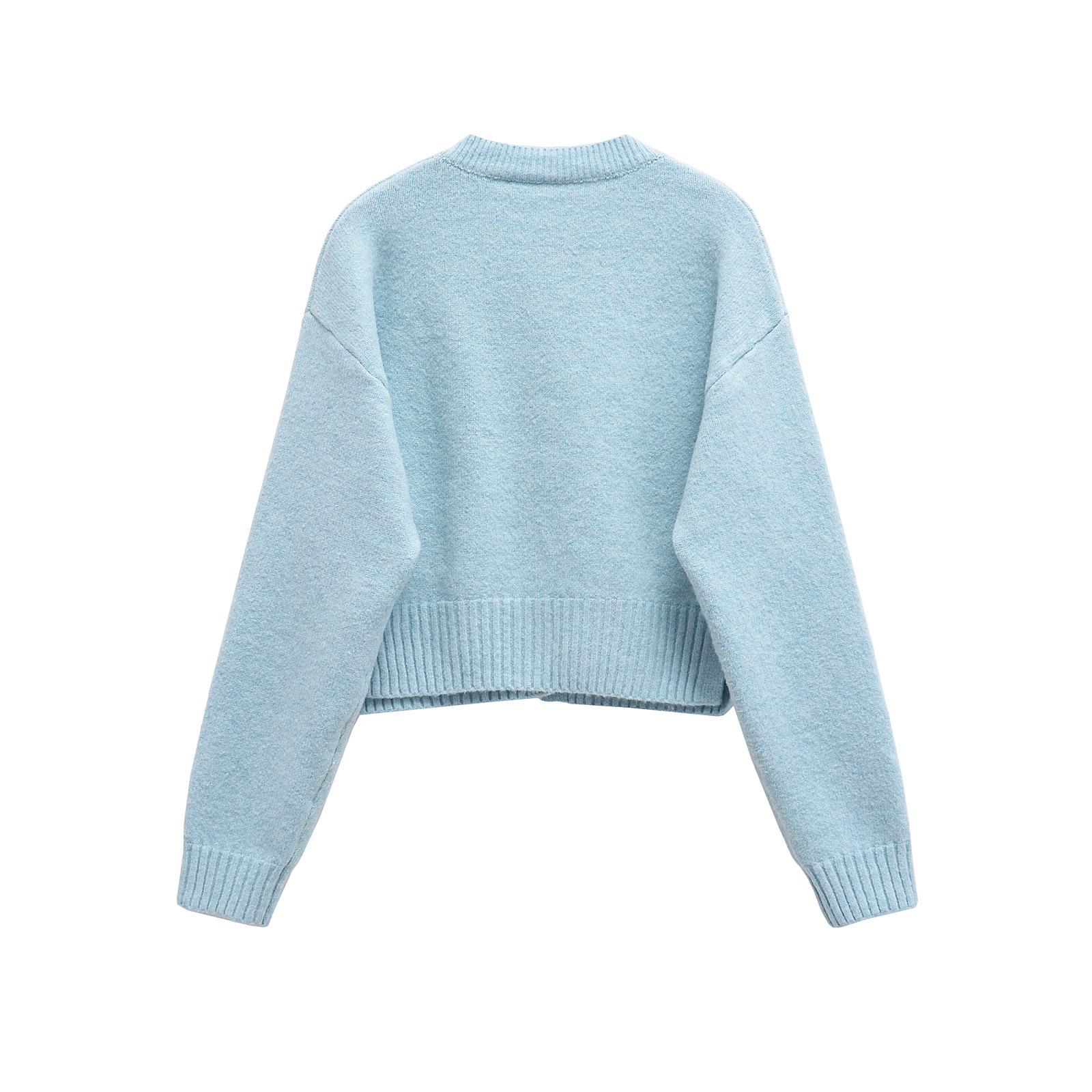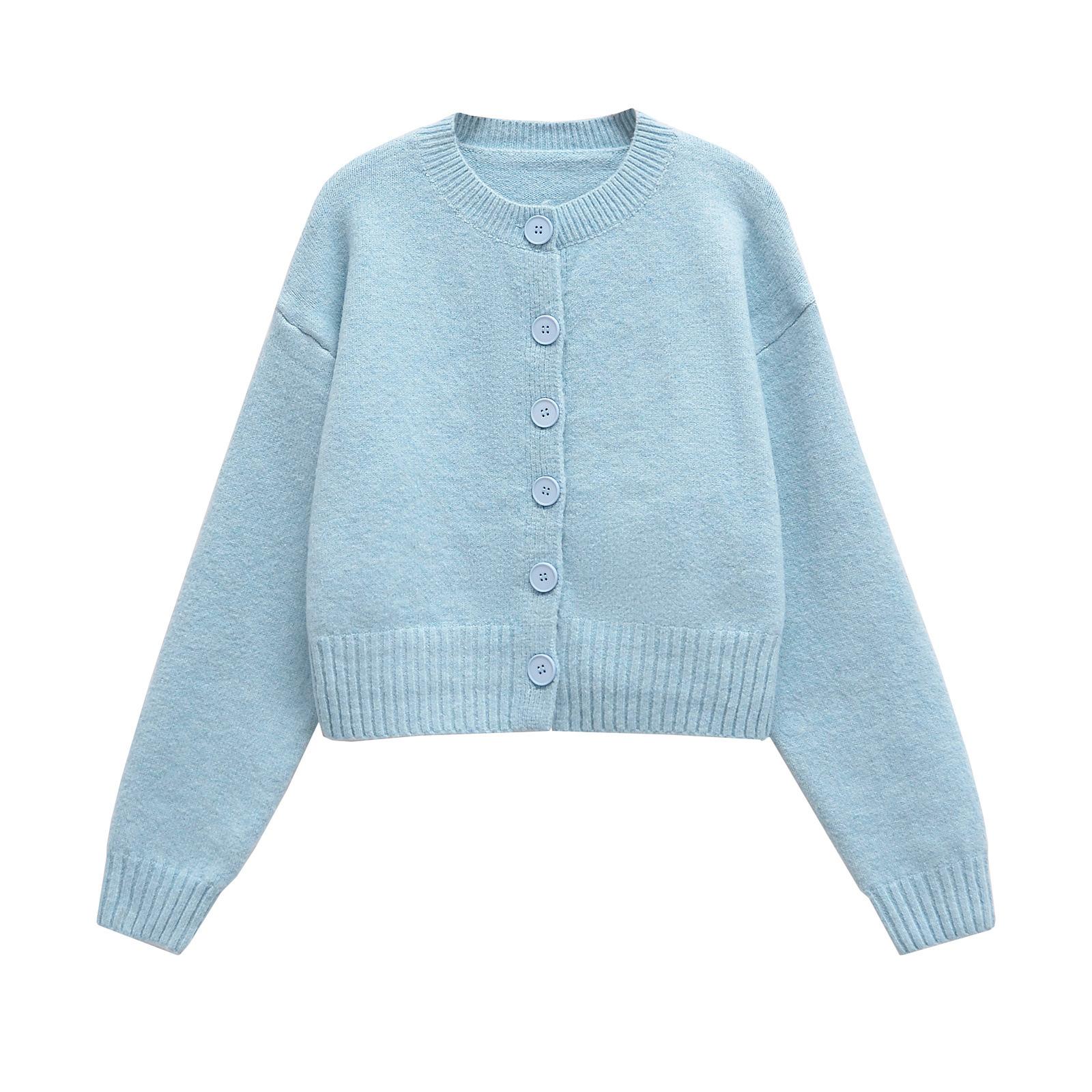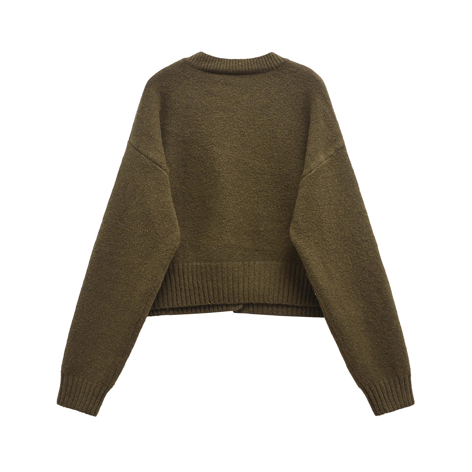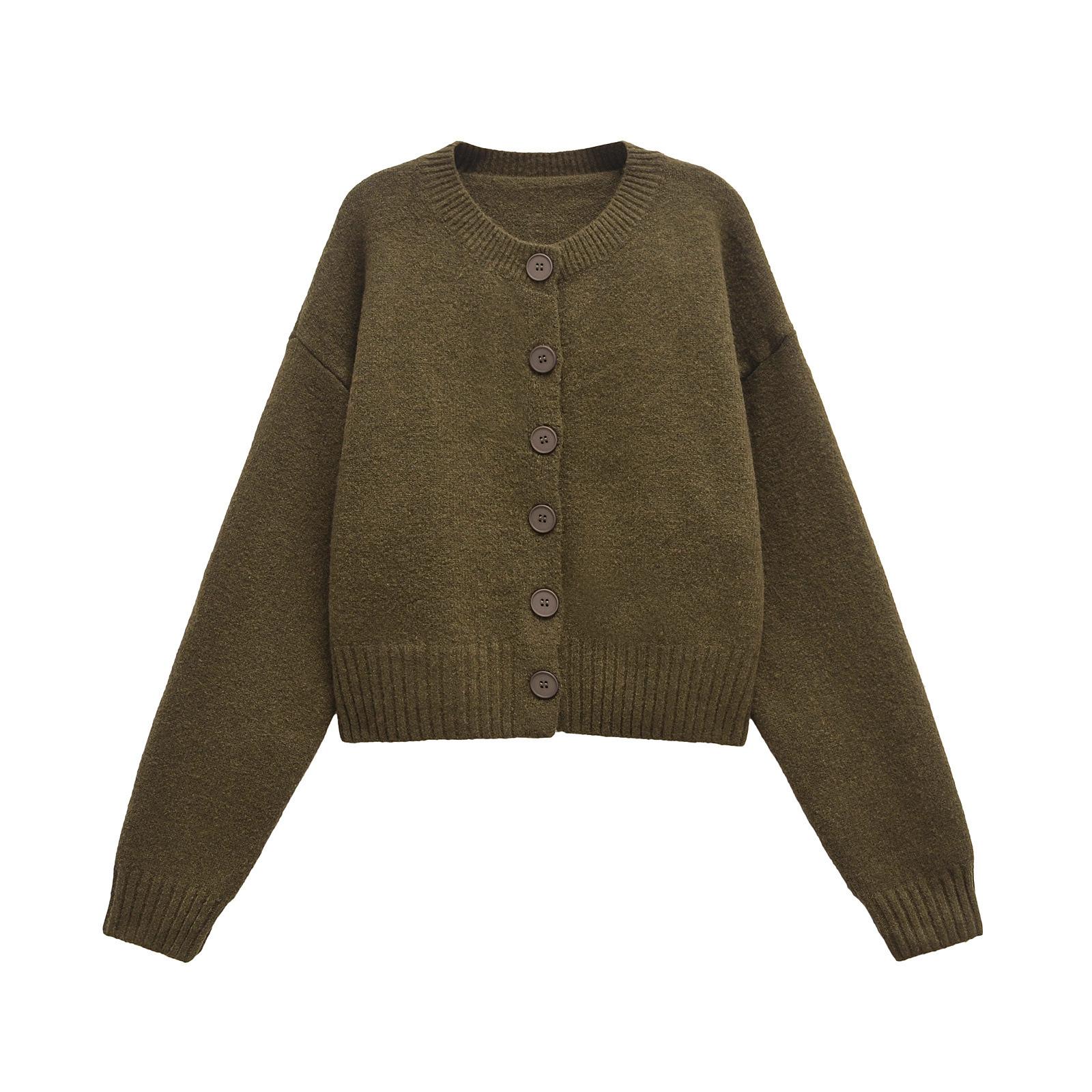 Chaqueta de punto de manga larga suave con cuello redondo y hebilla, estilo transfronterizo europeo y americano, invierno 2024, G8919