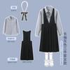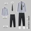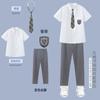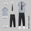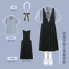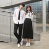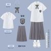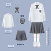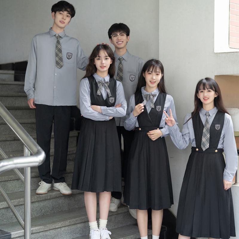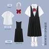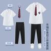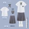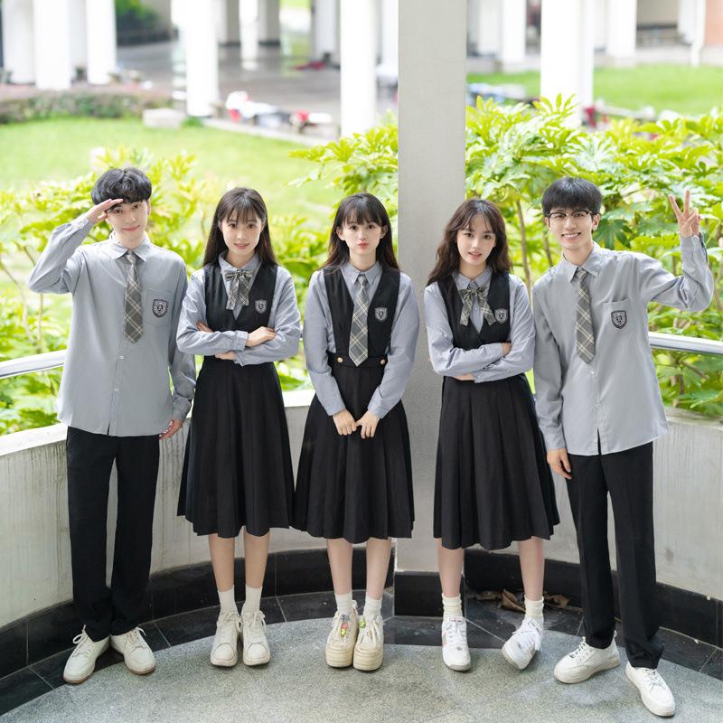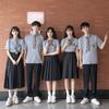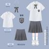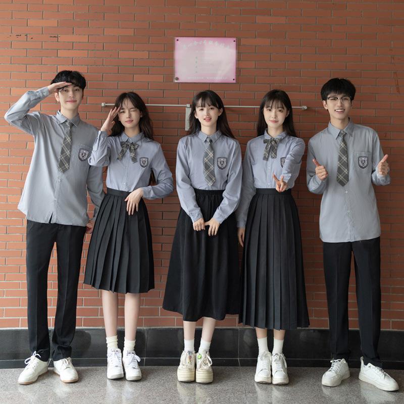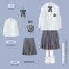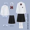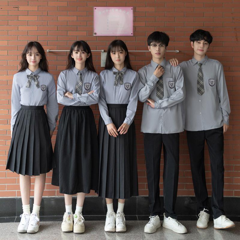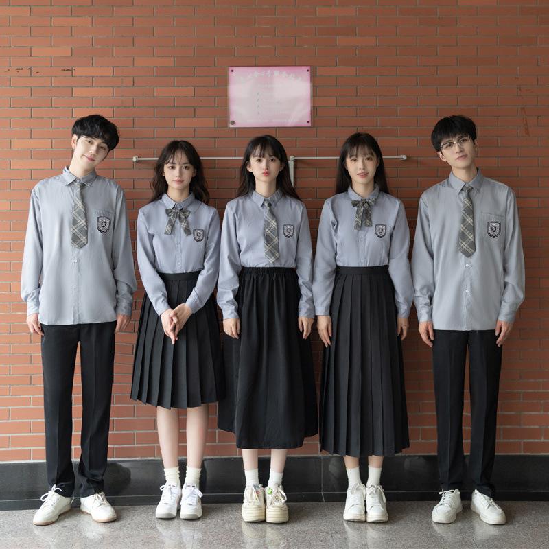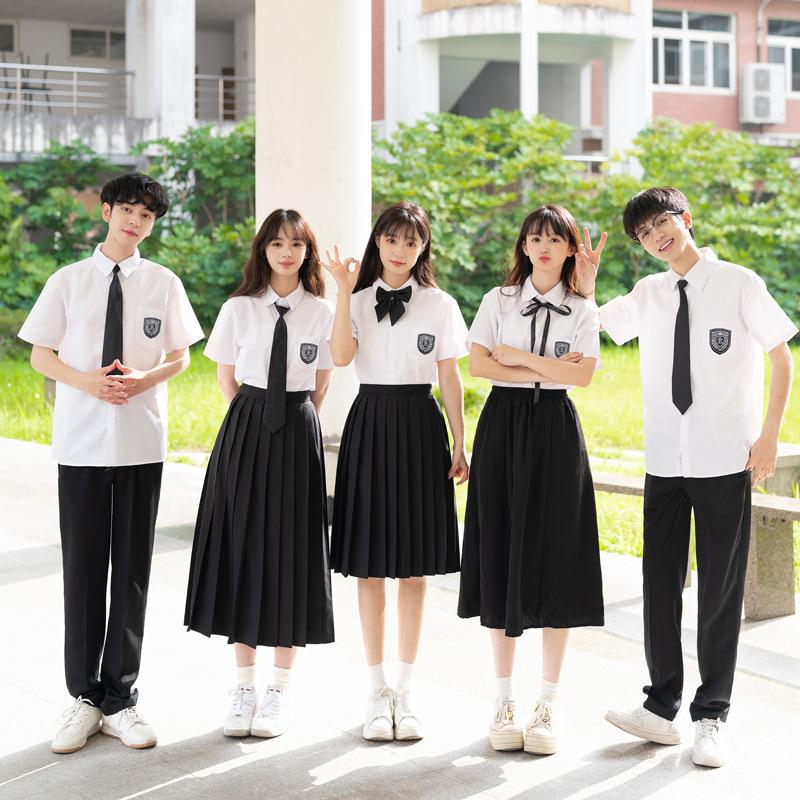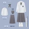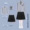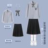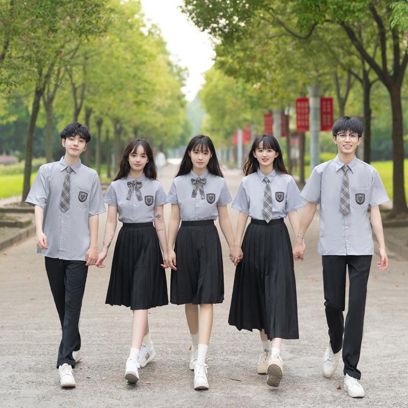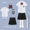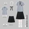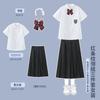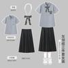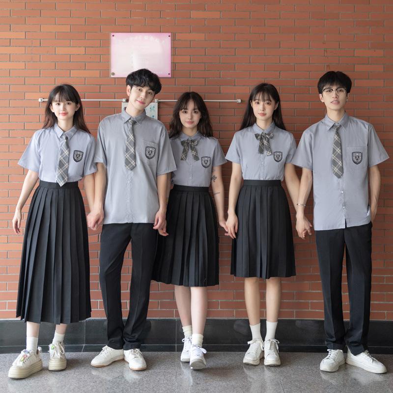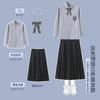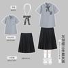 White short sleeves + gray skirt + gray plaid bow tie + k badge, White short sleeves + gray midi skirt + gray ...