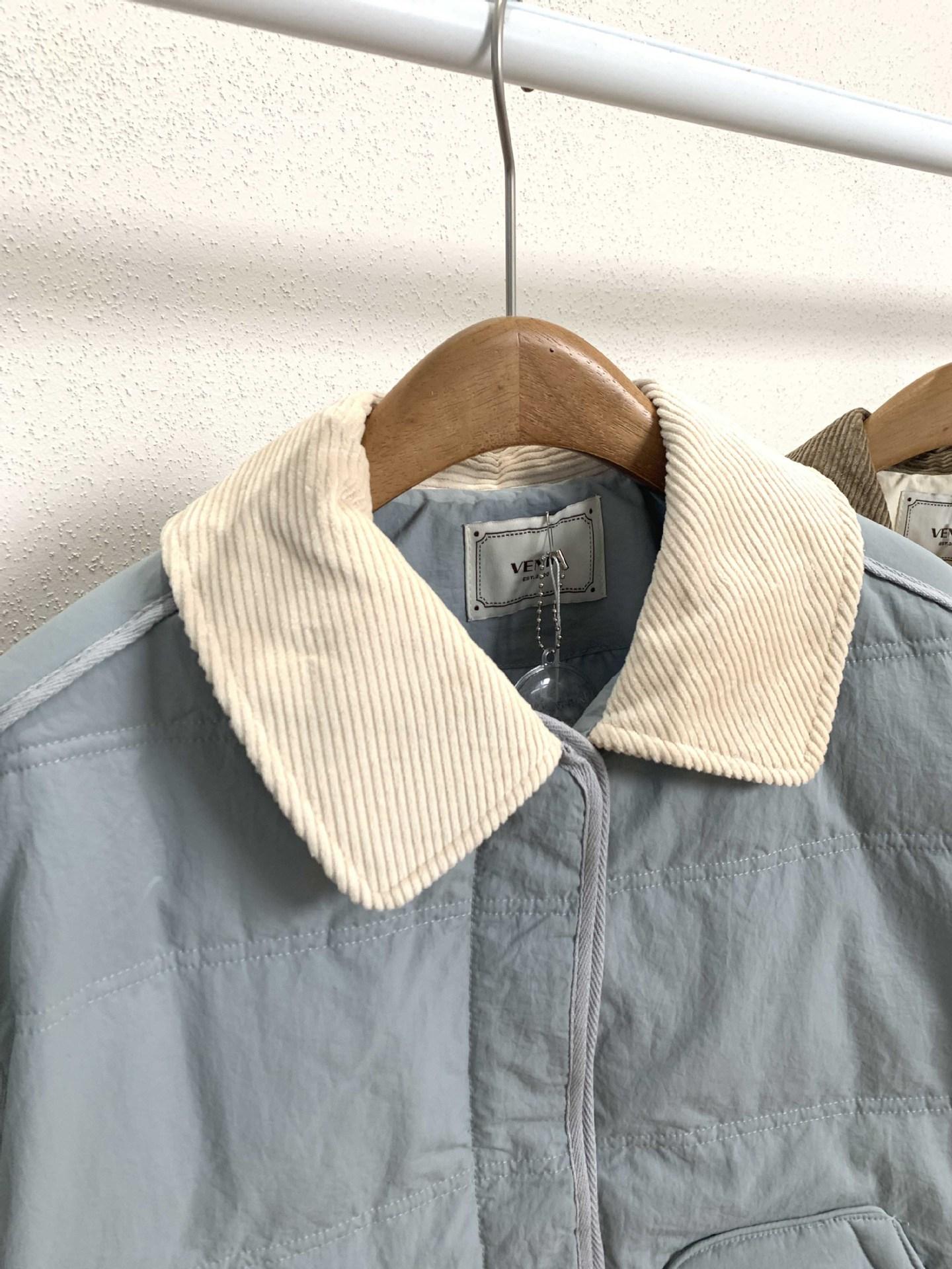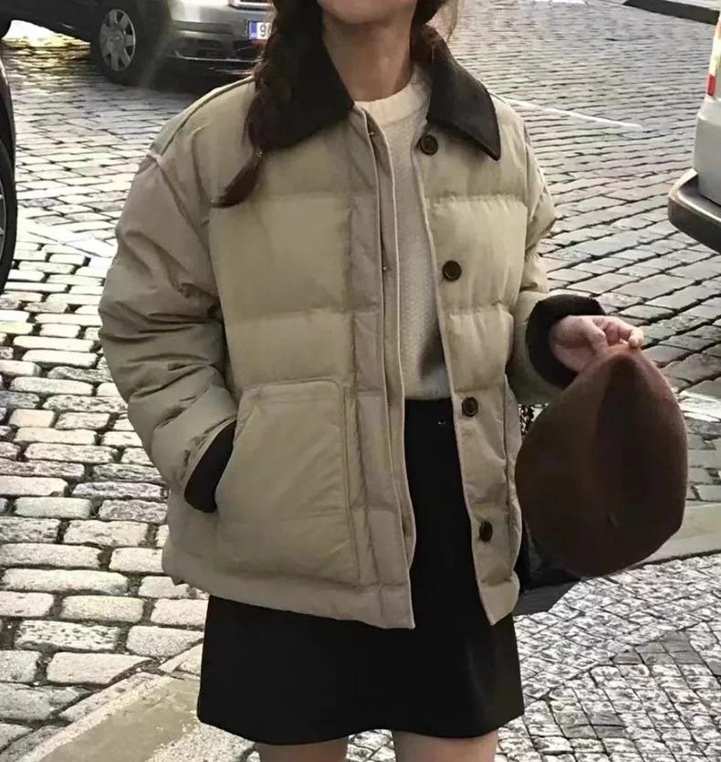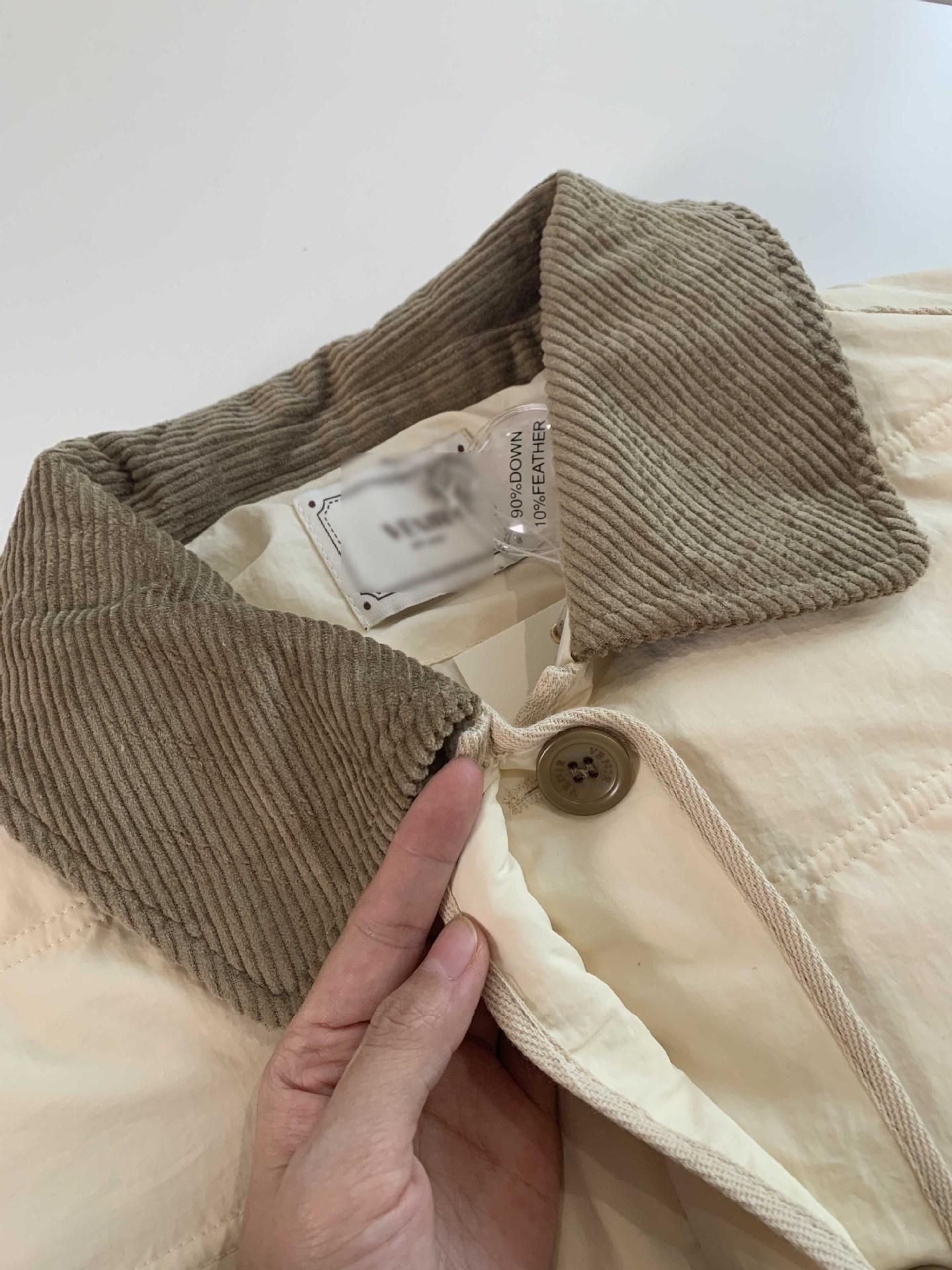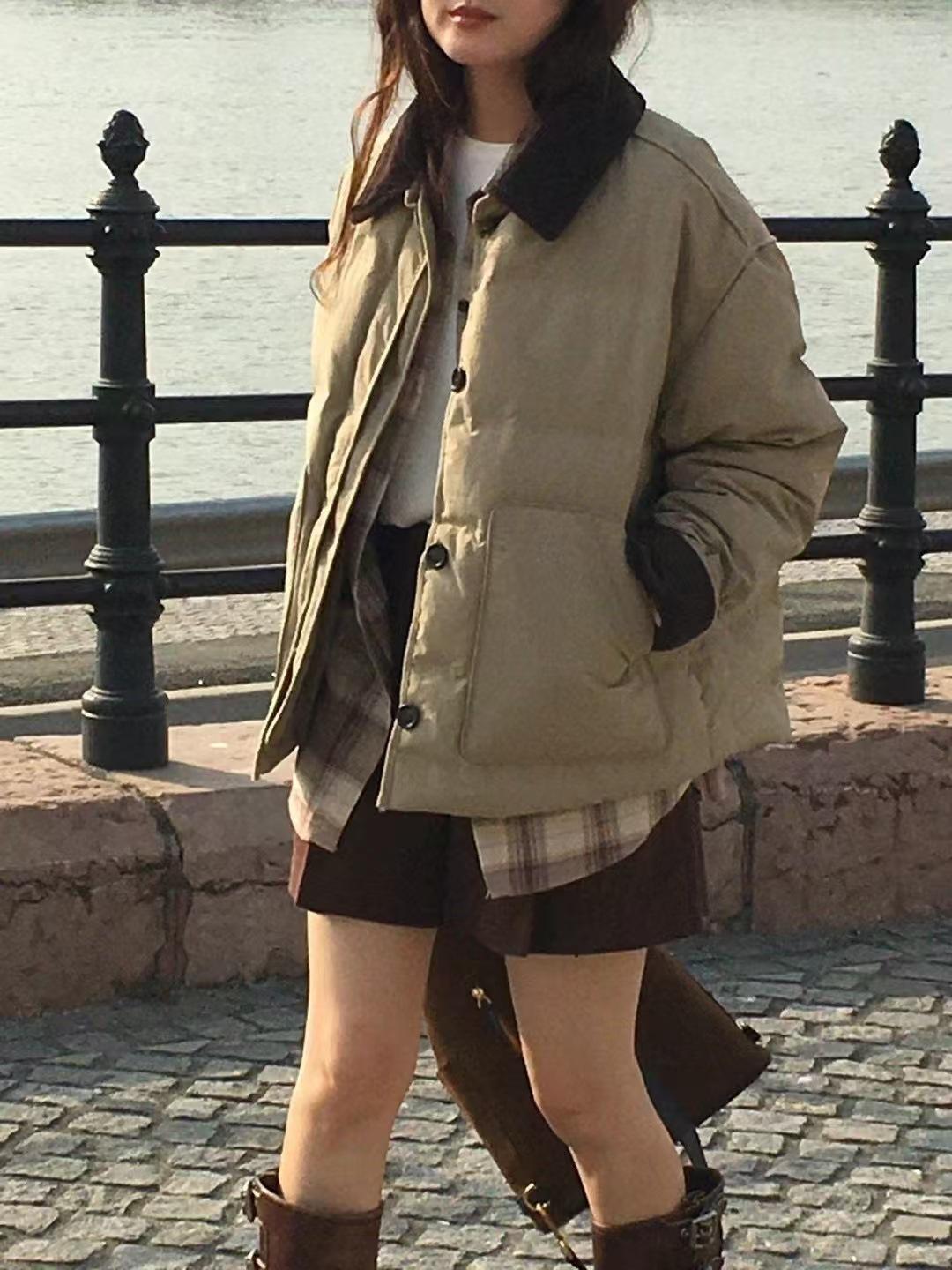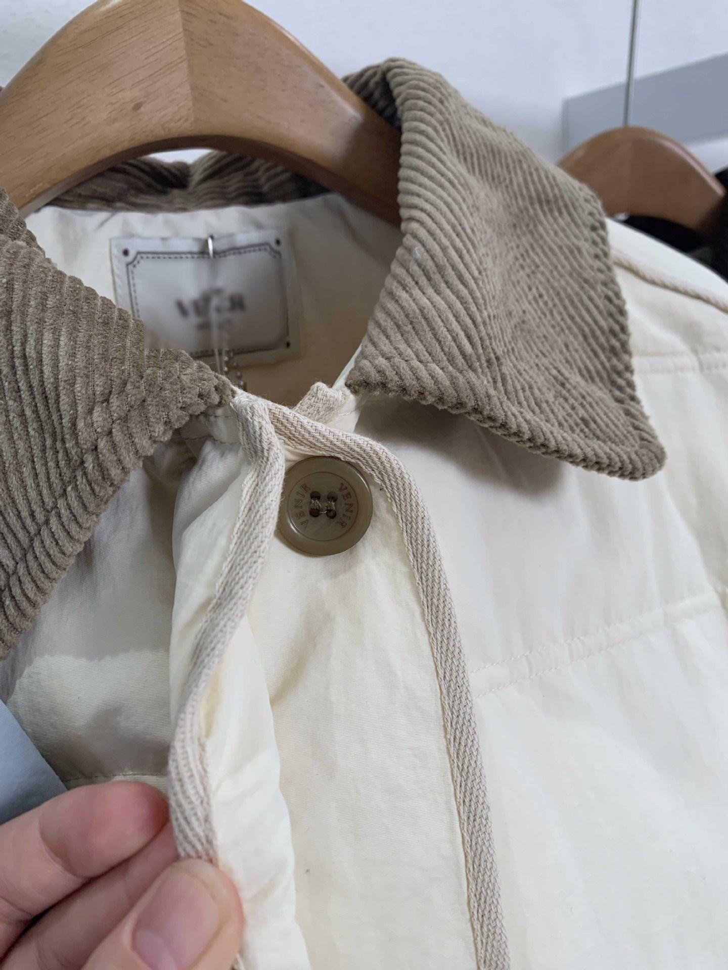 Stock Listo Chaqueta Acolchada de Pana con Solapa en Contraste 2024 Otoño e Invierno Nueva Chaqueta Simple Holgada de Estilo Coreano de Alta Gama