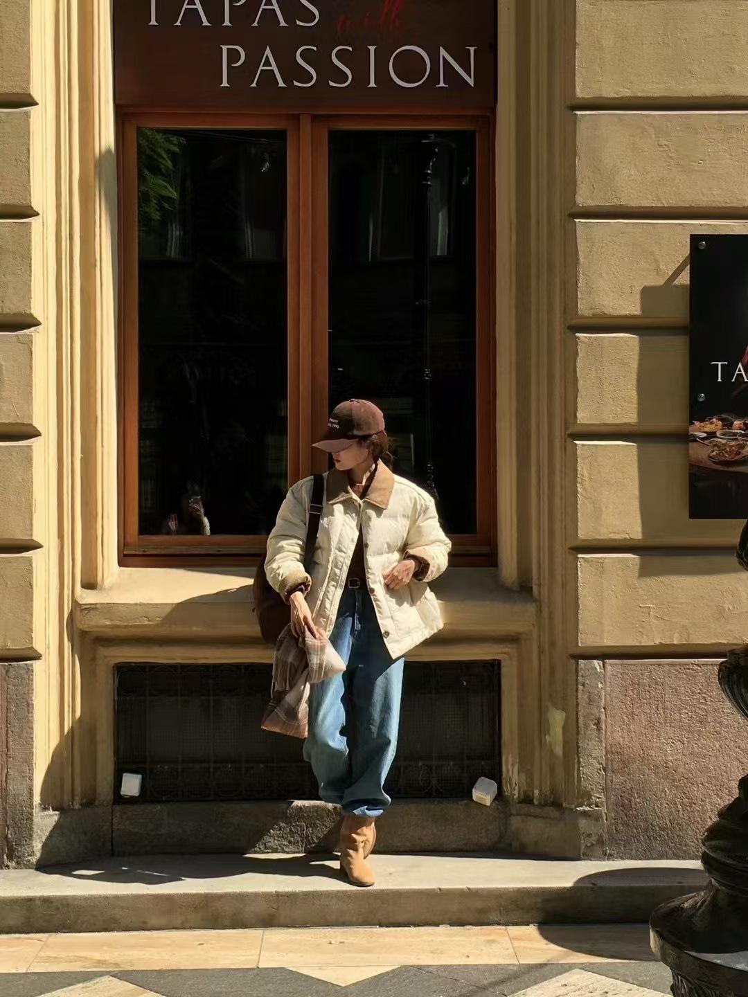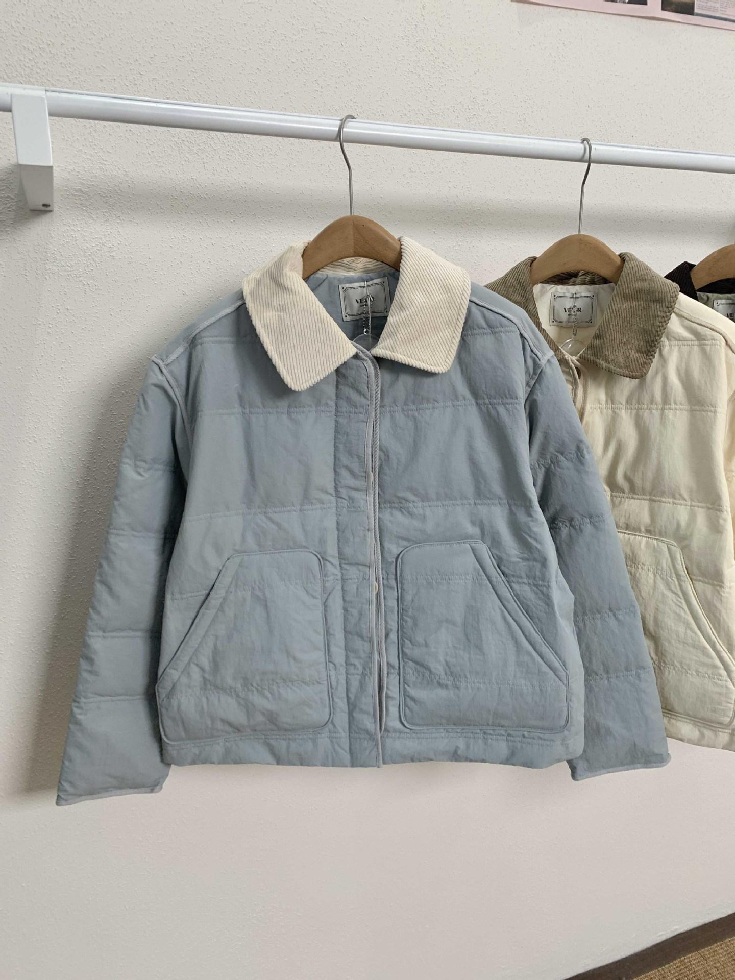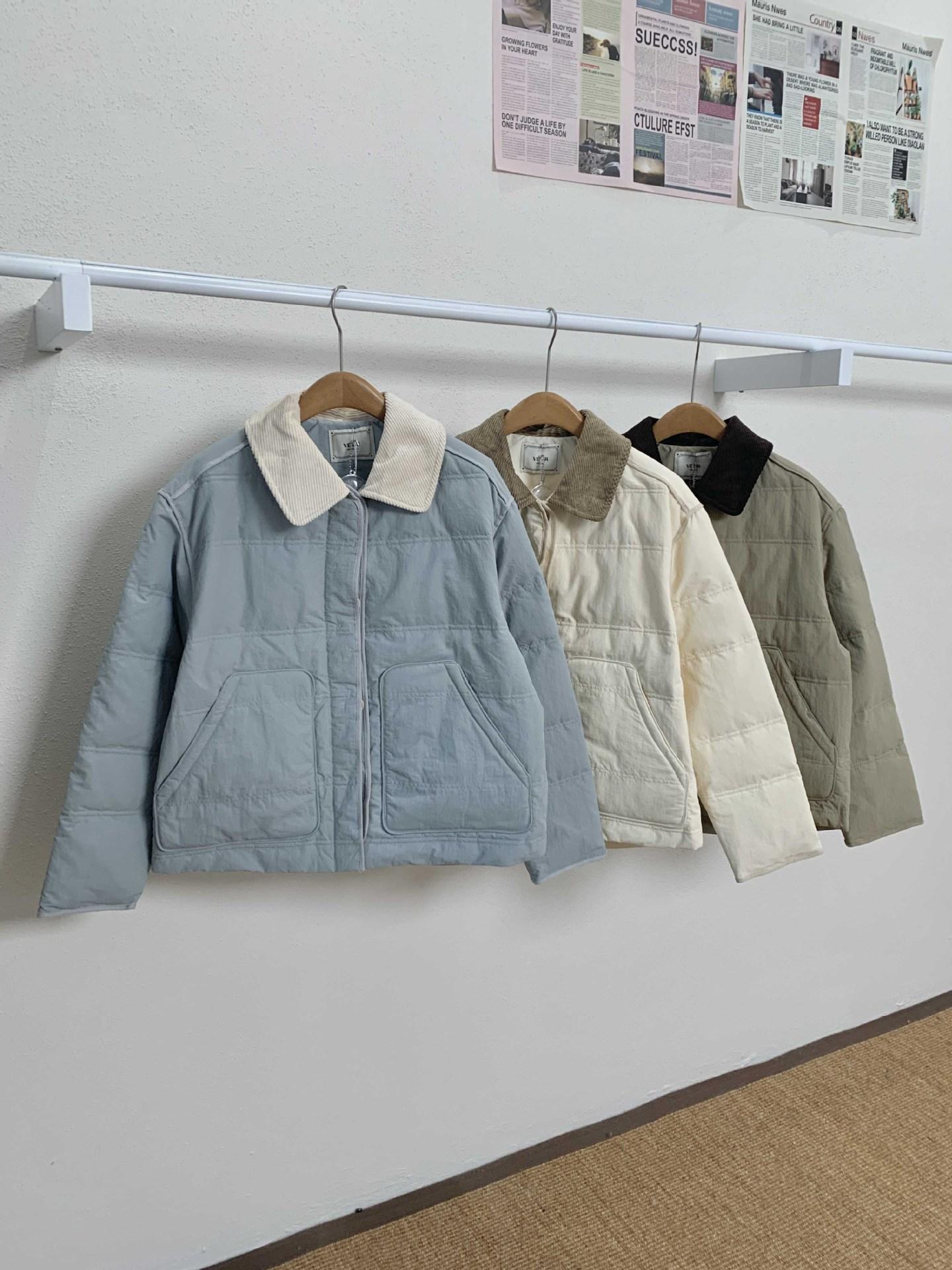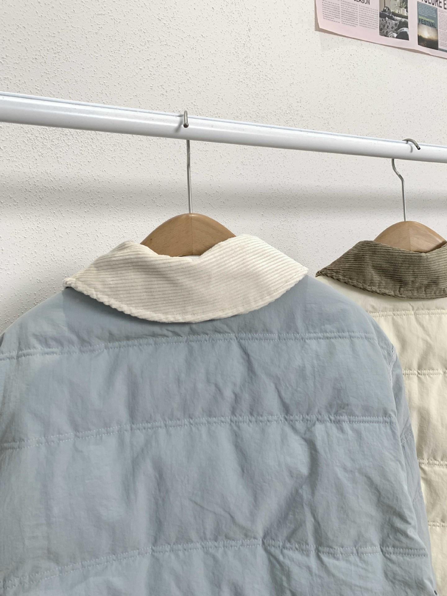 Stock Listo Chaqueta Acolchada de Pana con Solapa en Contraste 2024 Otoño e Invierno Nueva Chaqueta Simple Holgada de Estilo Coreano de Alta Gama