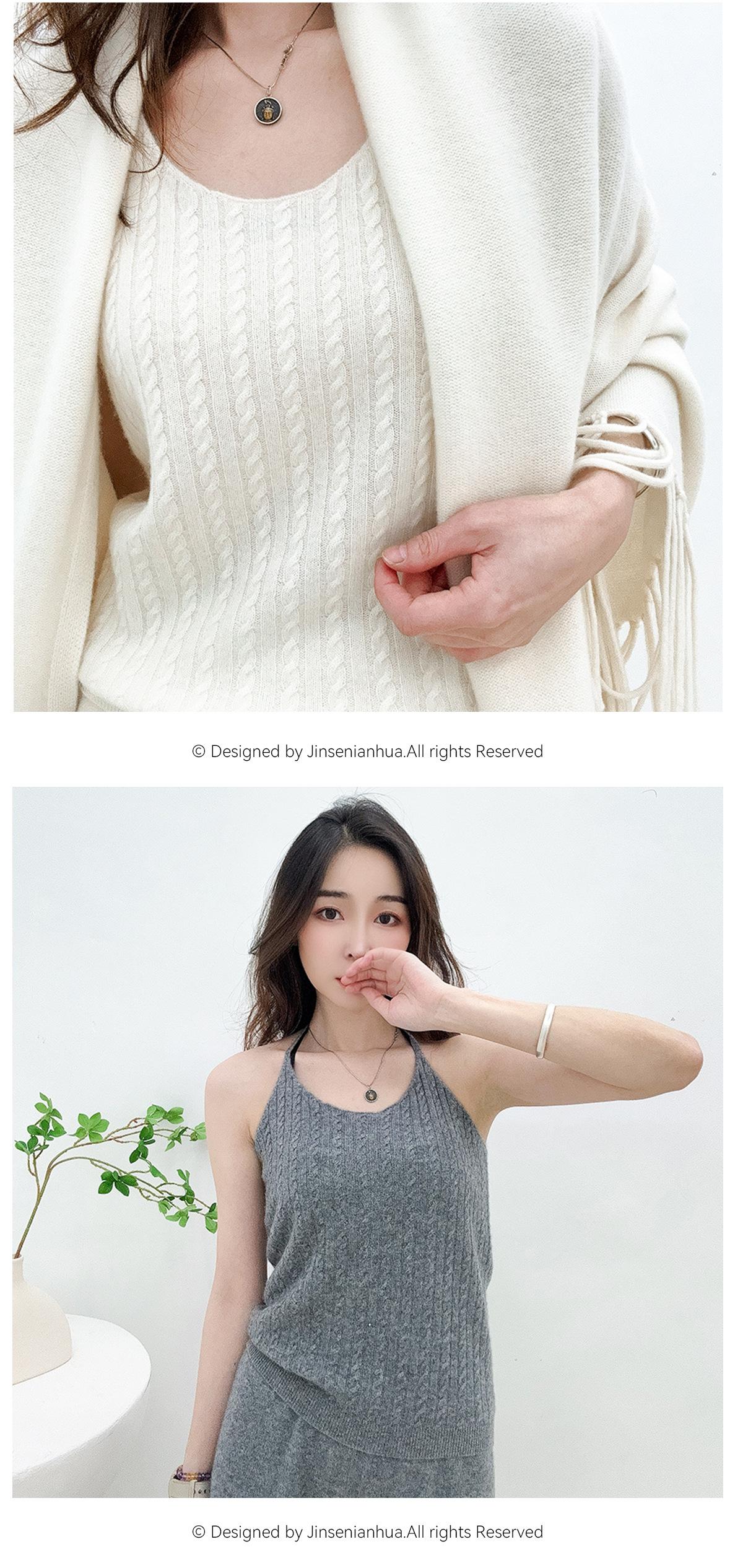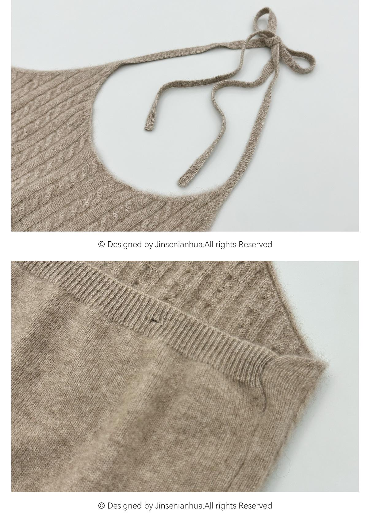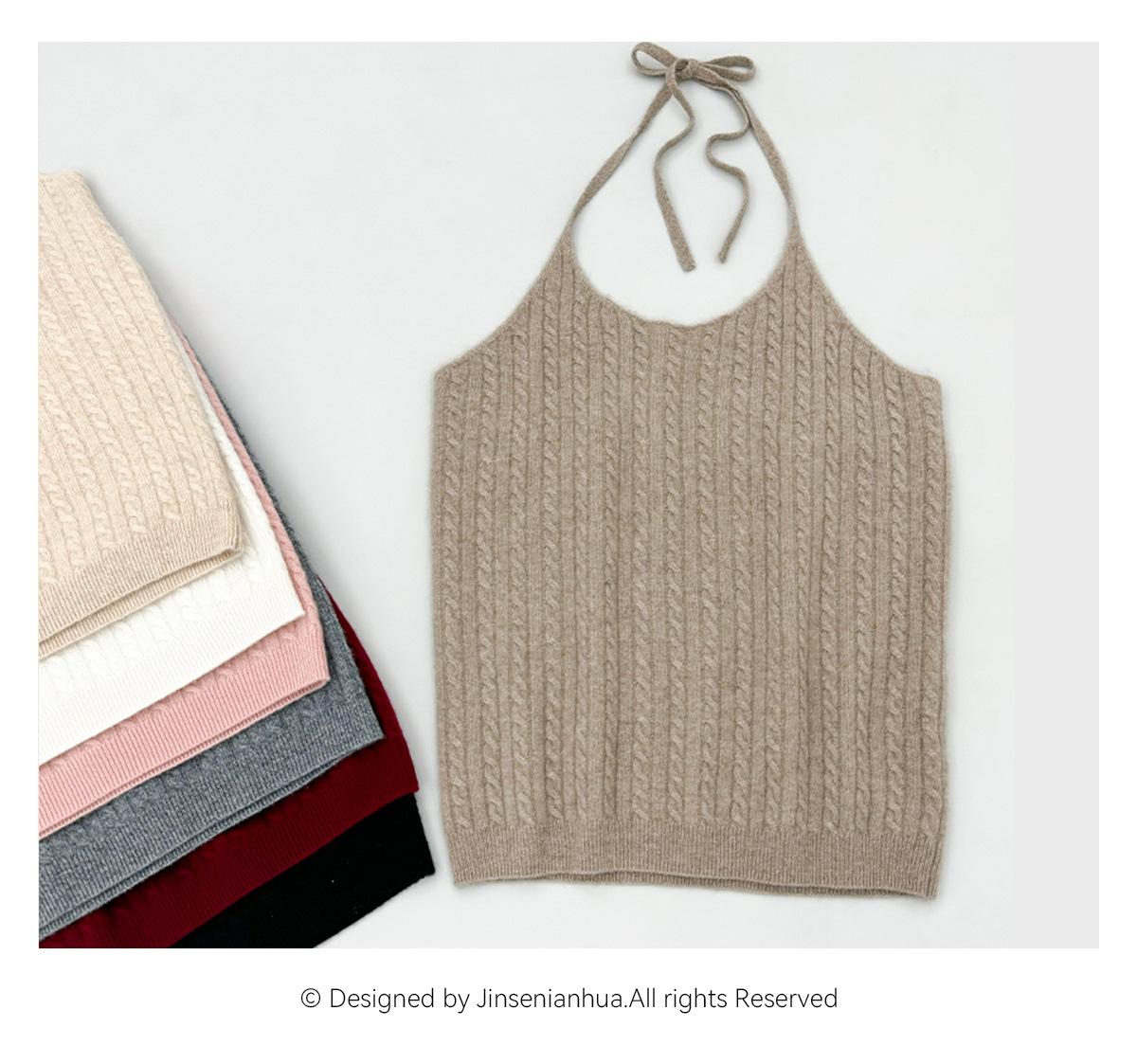 Chaleco de cachemira trenzada para mujer, otoño e invierno 2024, nuevo, de punto con cuello de pico y cachemira pura.
