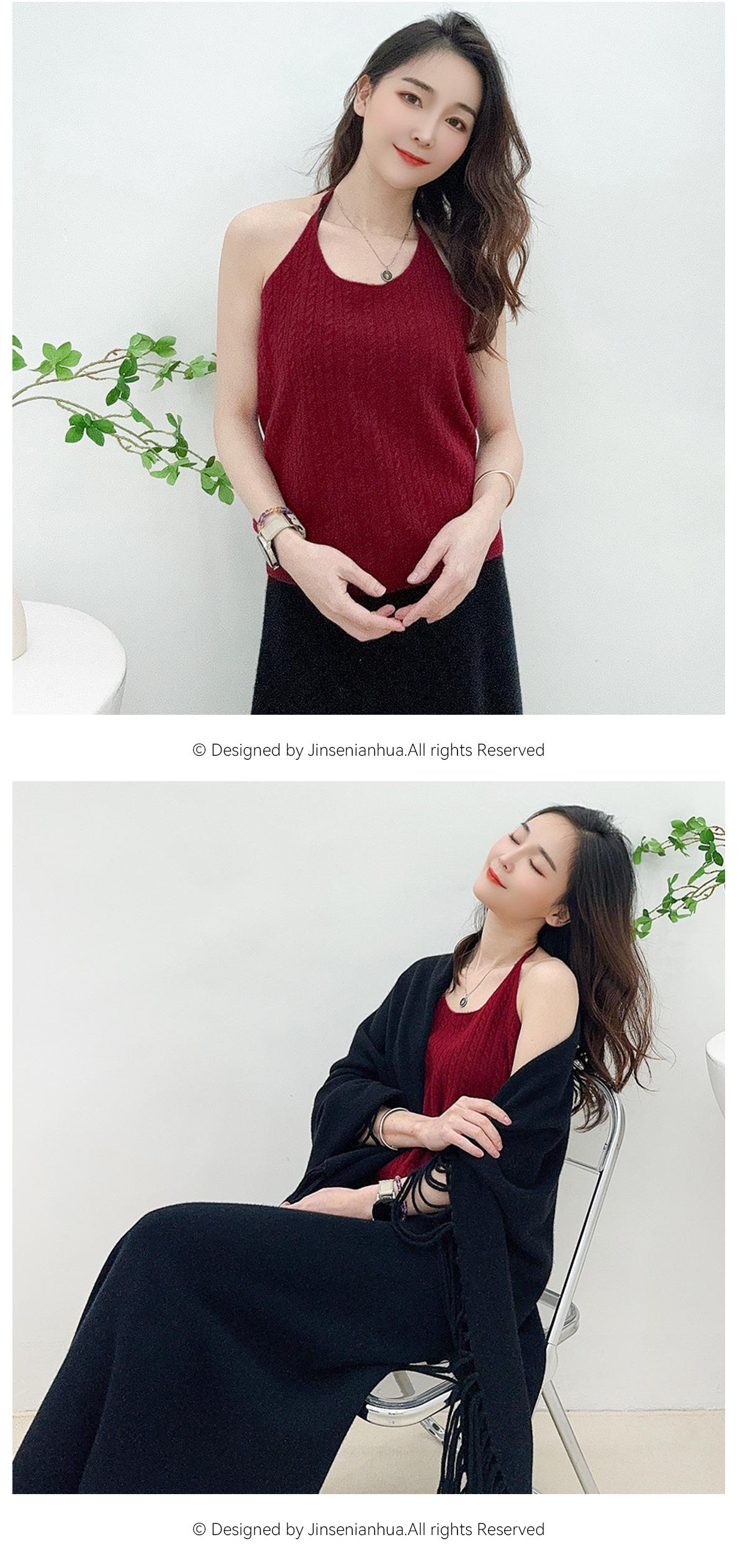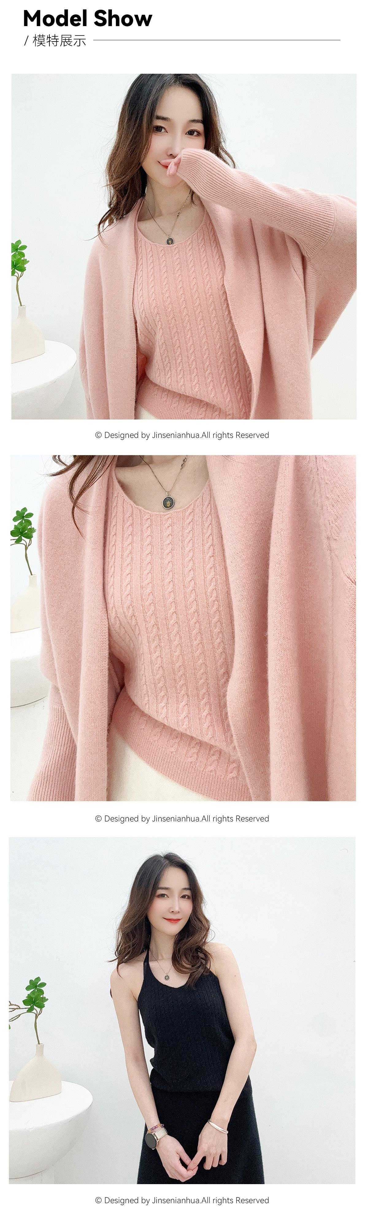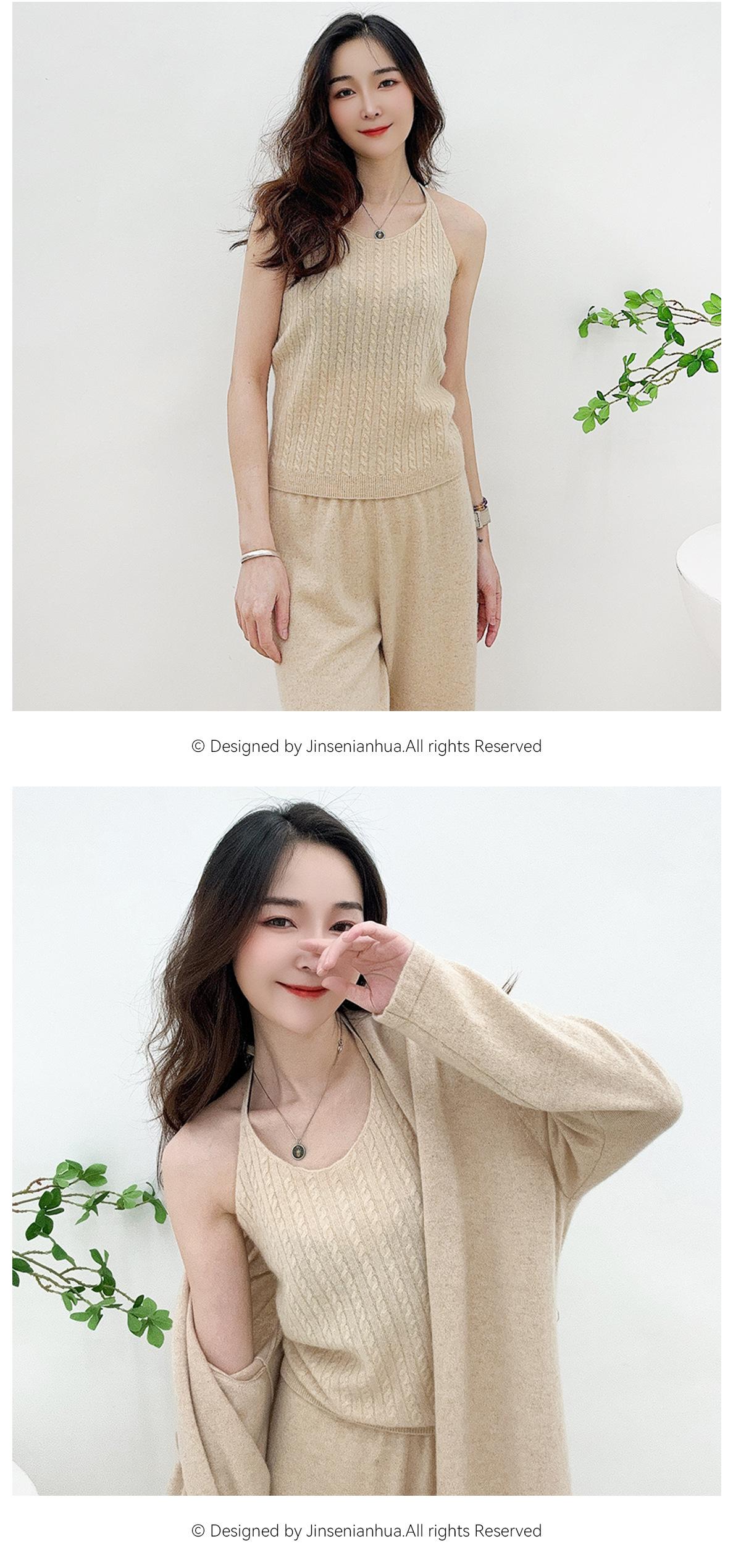 Chaleco de cachemira trenzada para mujer, otoño e invierno 2024, nuevo, de punto con cuello de pico y cachemira pura.