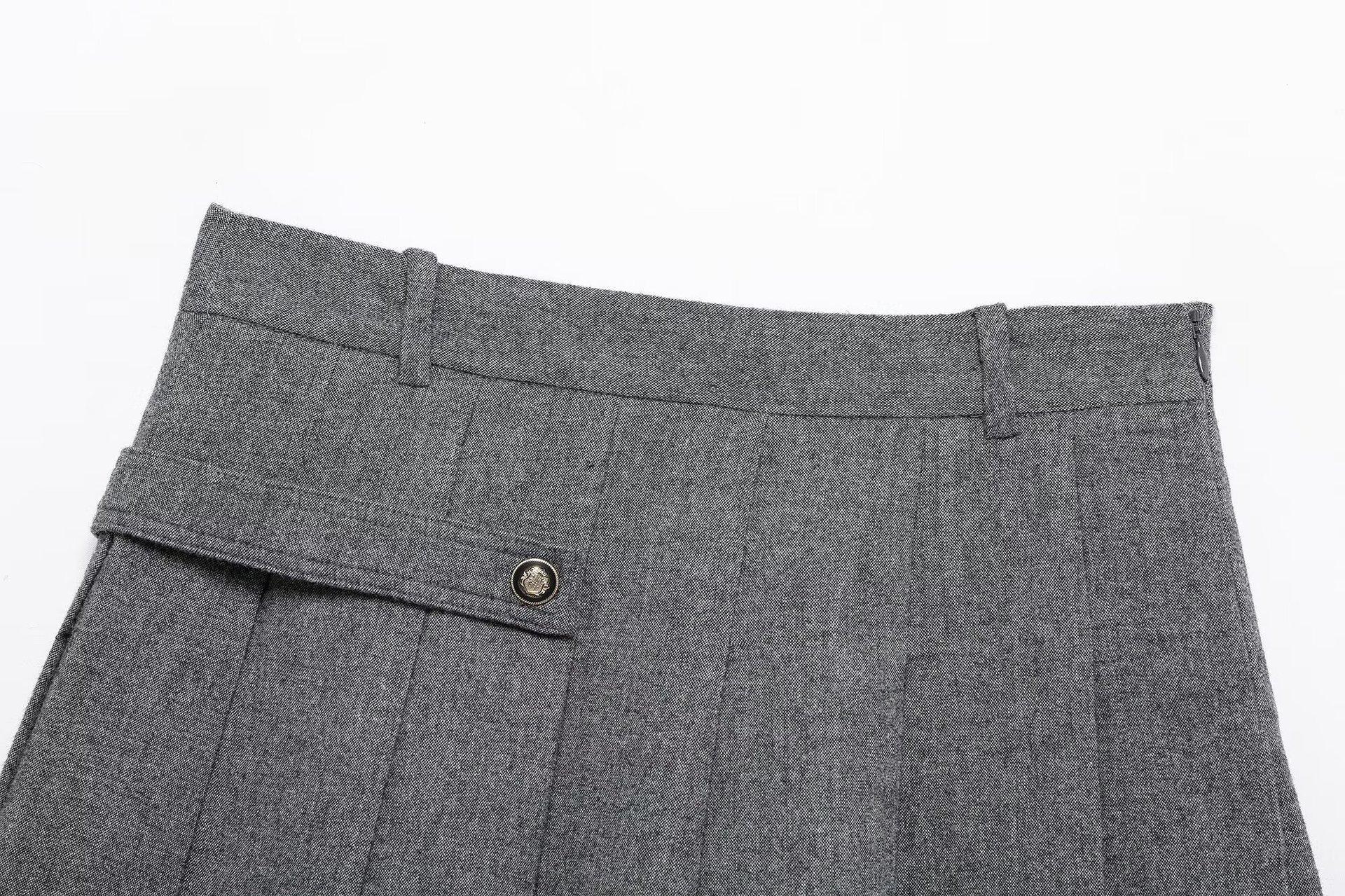 Comercio exterior transfronterizo para mujer, otoño e invierno, nuevo estilo europeo y americano, moda informal, cintura alta, falda plisada ancha, falda de línea A