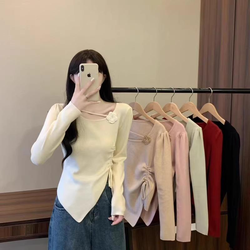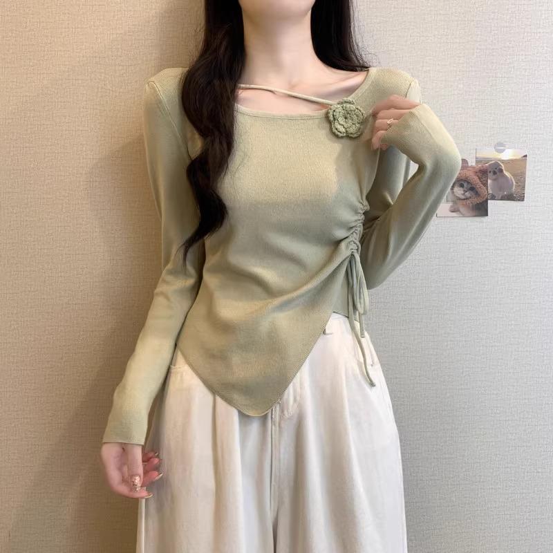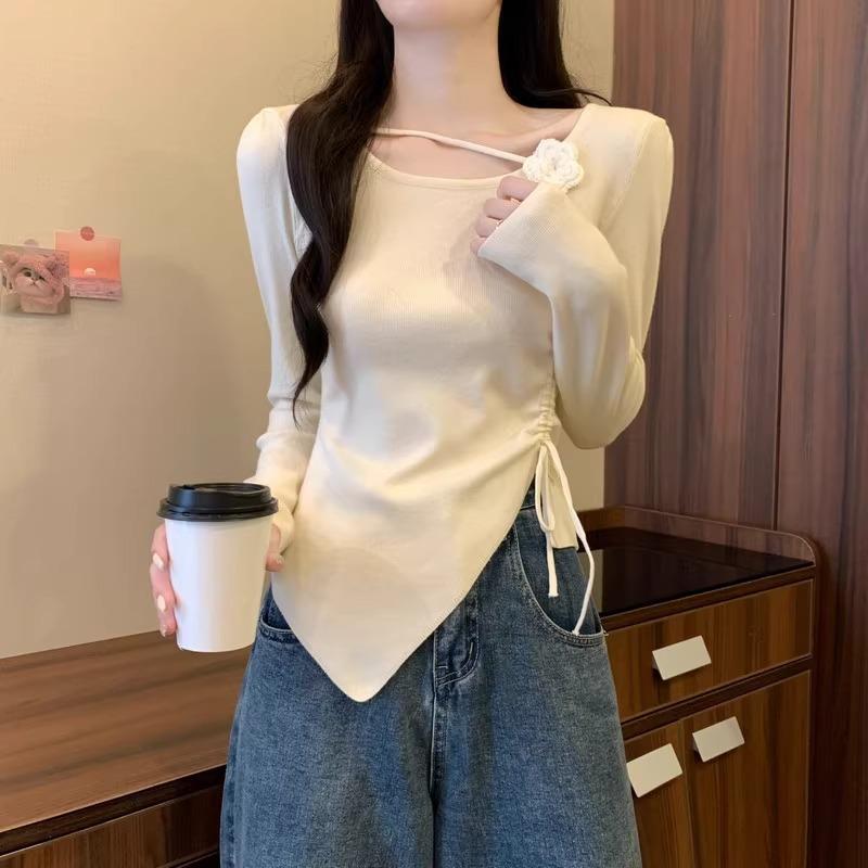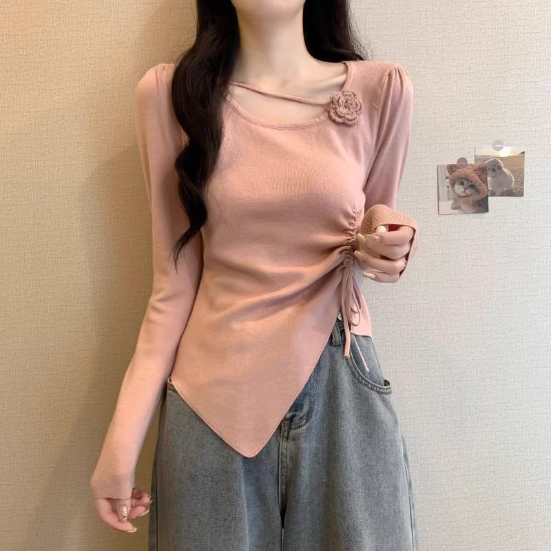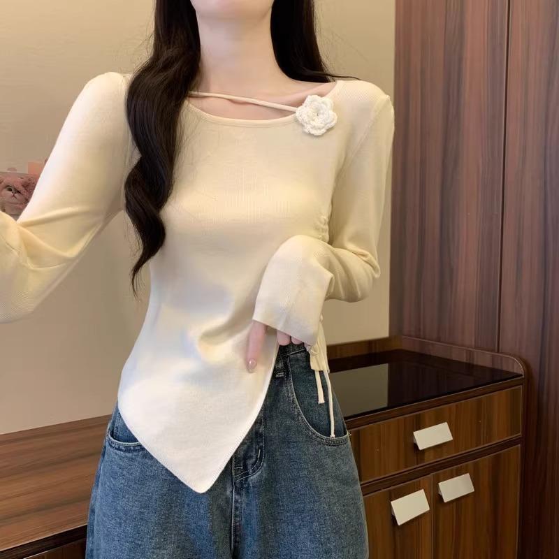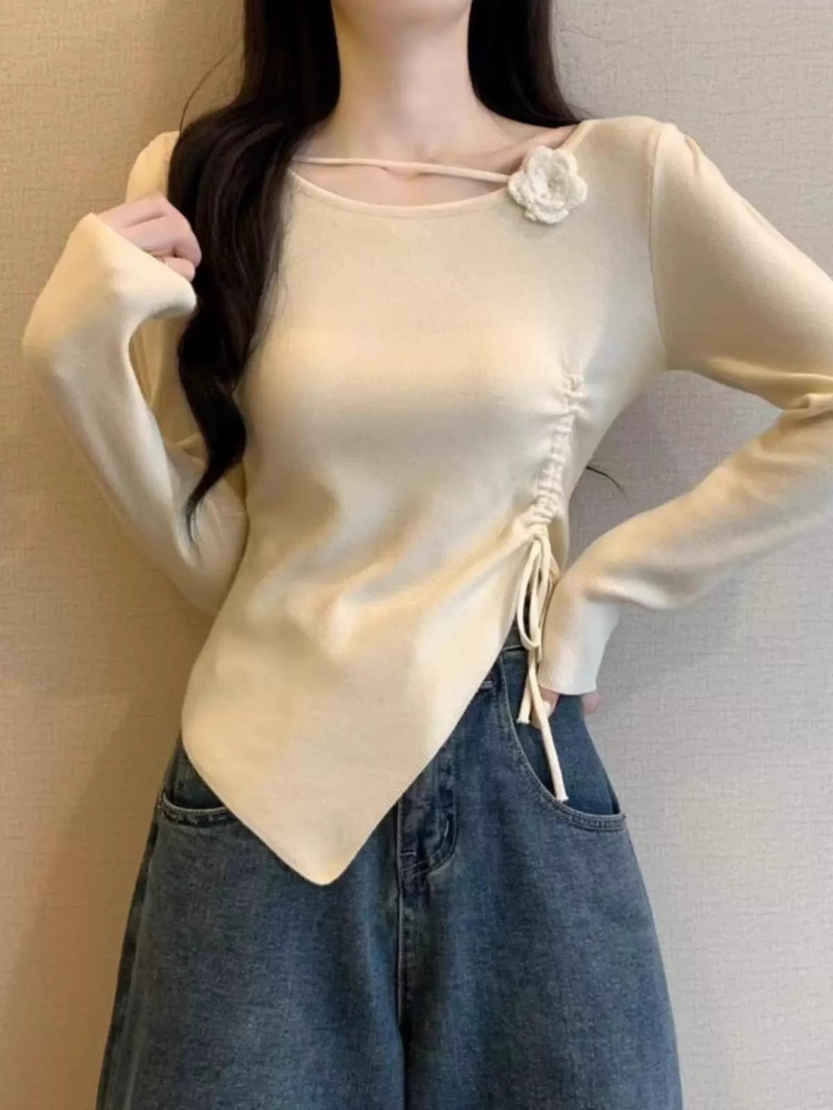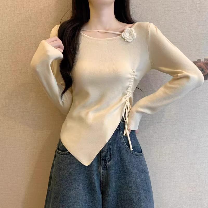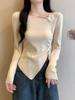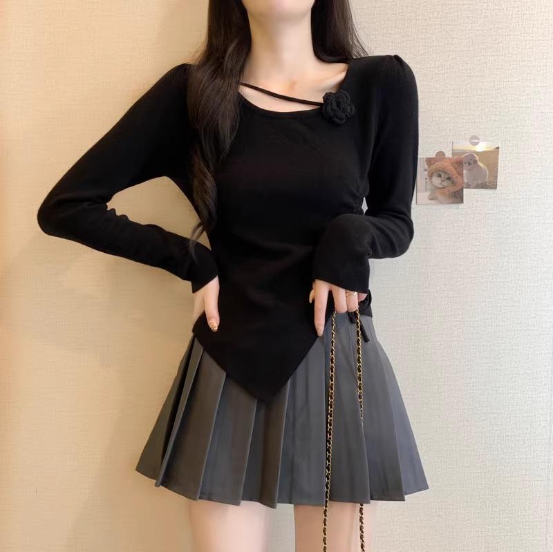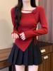 Suéter de punto con base interior, diseño de nicho, irregular, ajustado, corto, para mujer, otoño e invierno 2024
