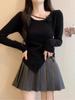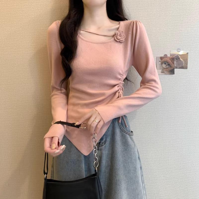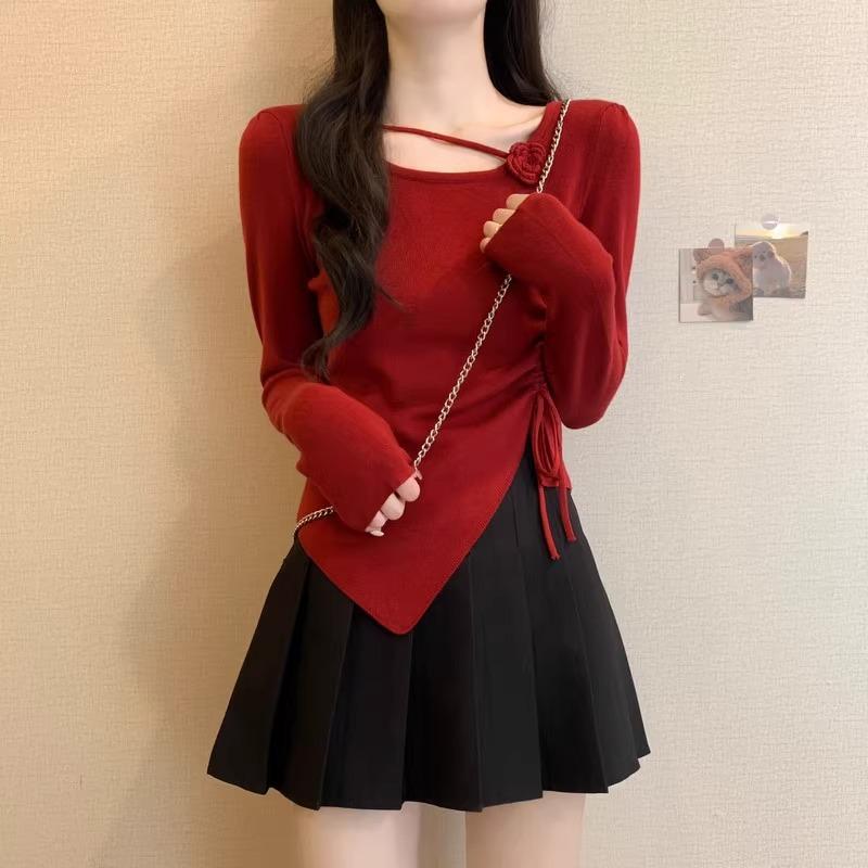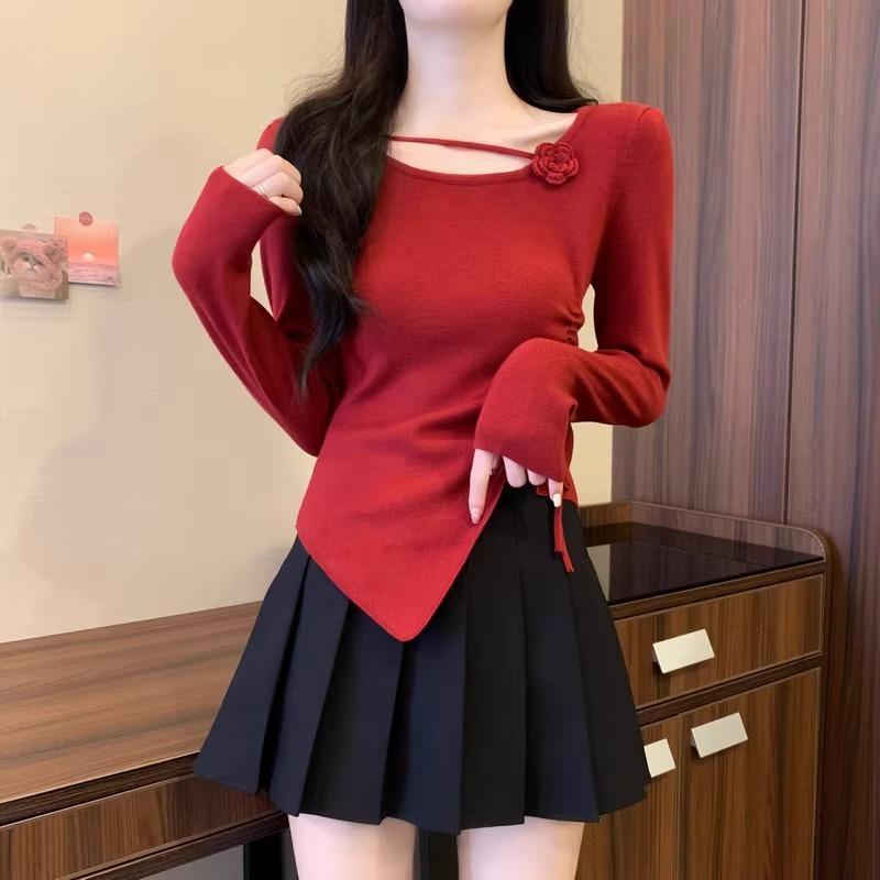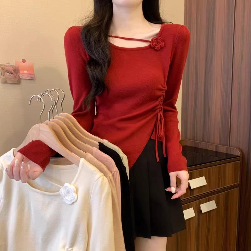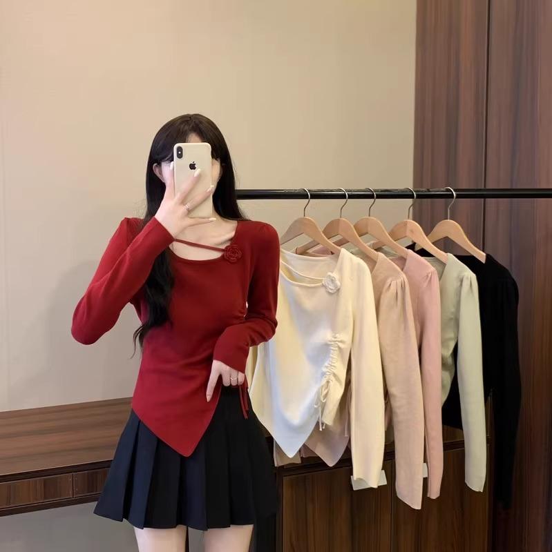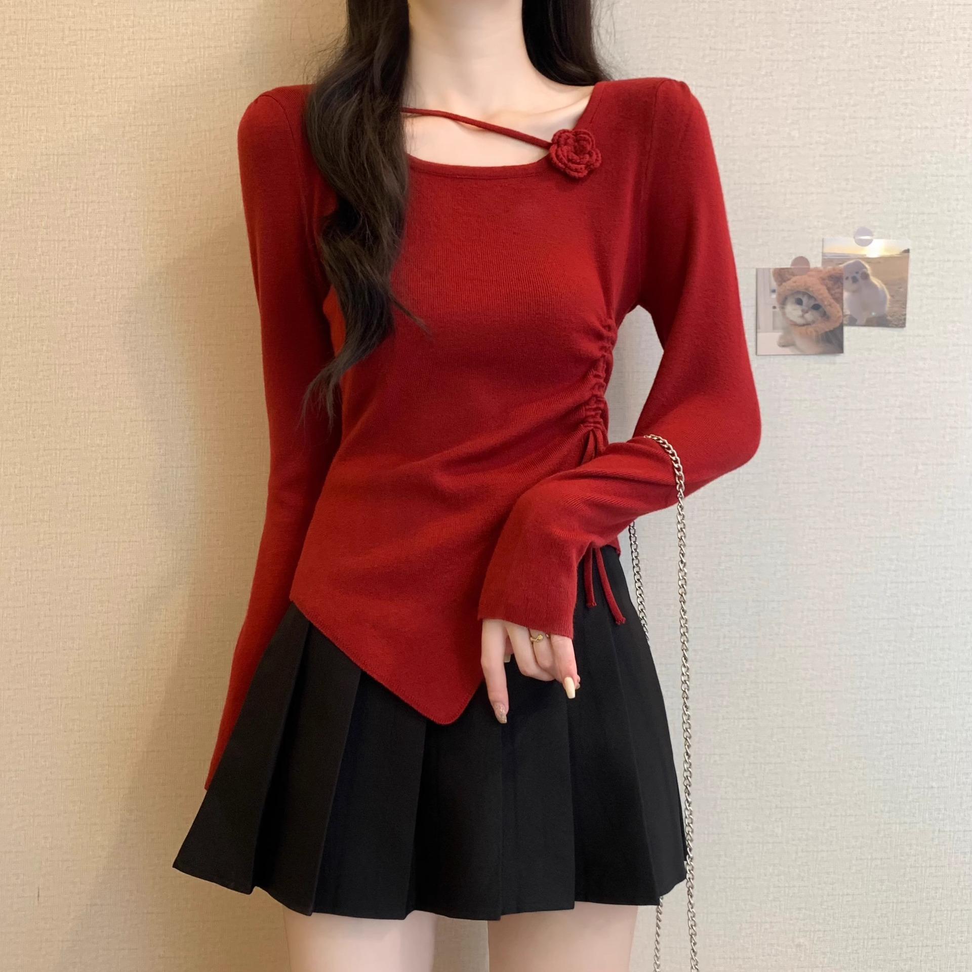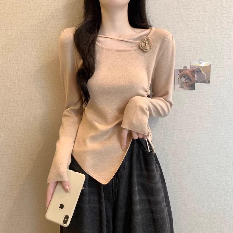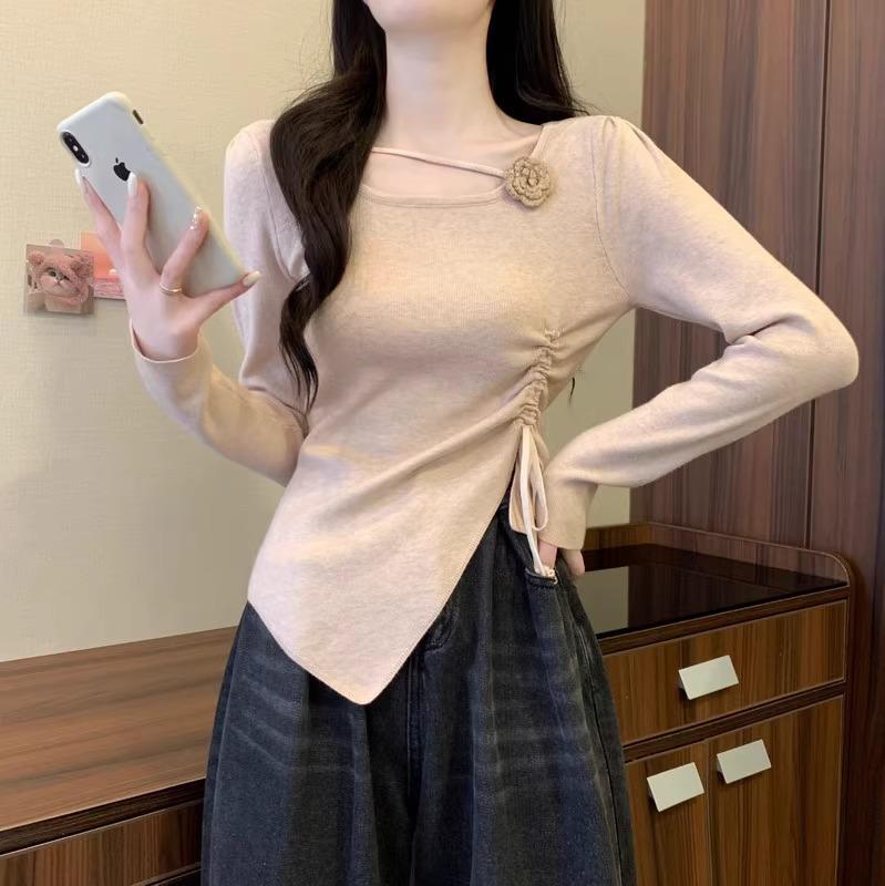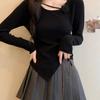 Suéter de punto con base interior, diseño de nicho, irregular, ajustado, corto, para mujer, otoño e invierno 2024