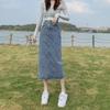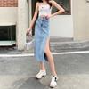 Falda vaquera blanca para mujer, de verano, de longitud media, nueva, de cintura alta, elegante, con abertura lateral en la cadera, falda de corte A