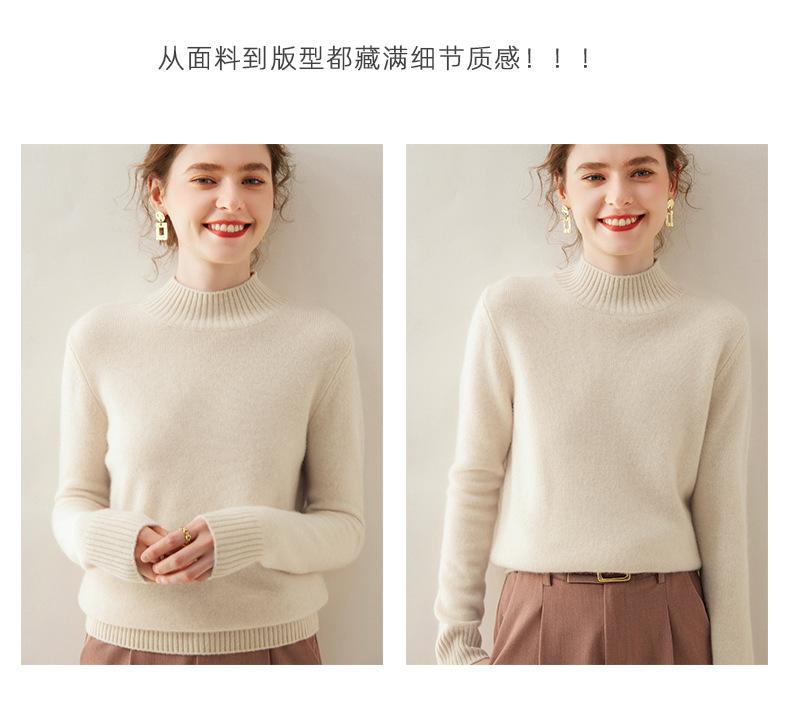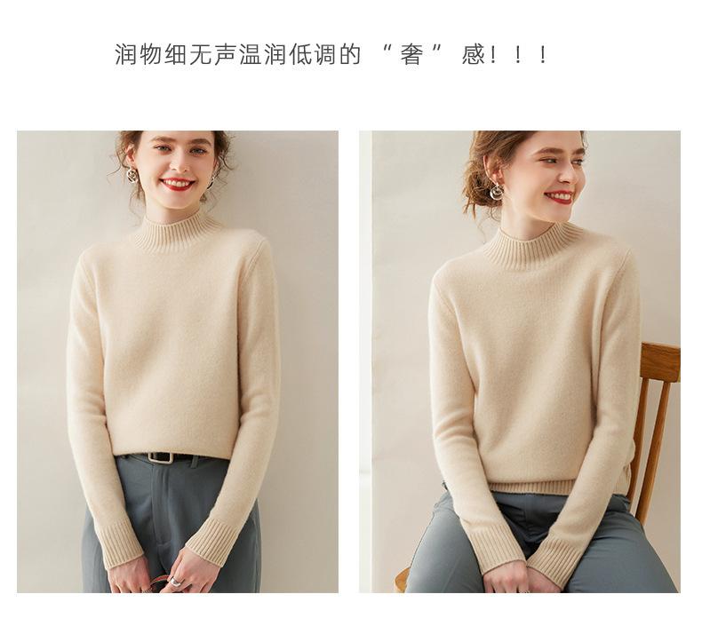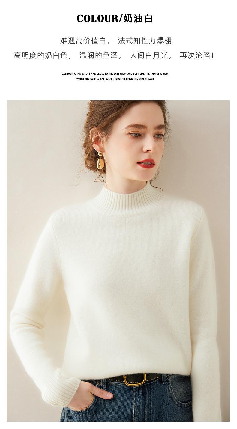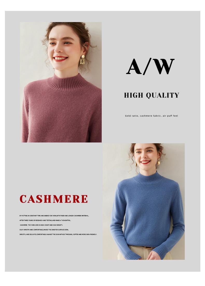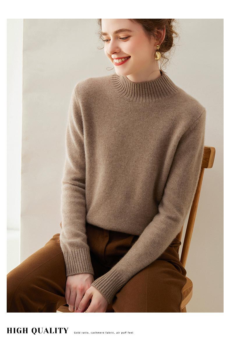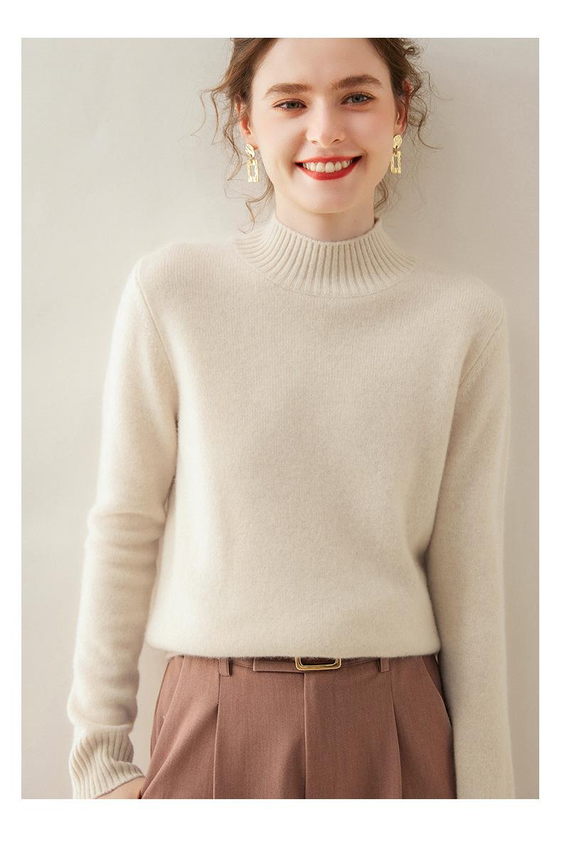 Suéter de cachemira de color liso con cuello alto medio, suelto, adelgazante, para otoño e invierno, tejido con hombros gruesos y manga larga para mujer
