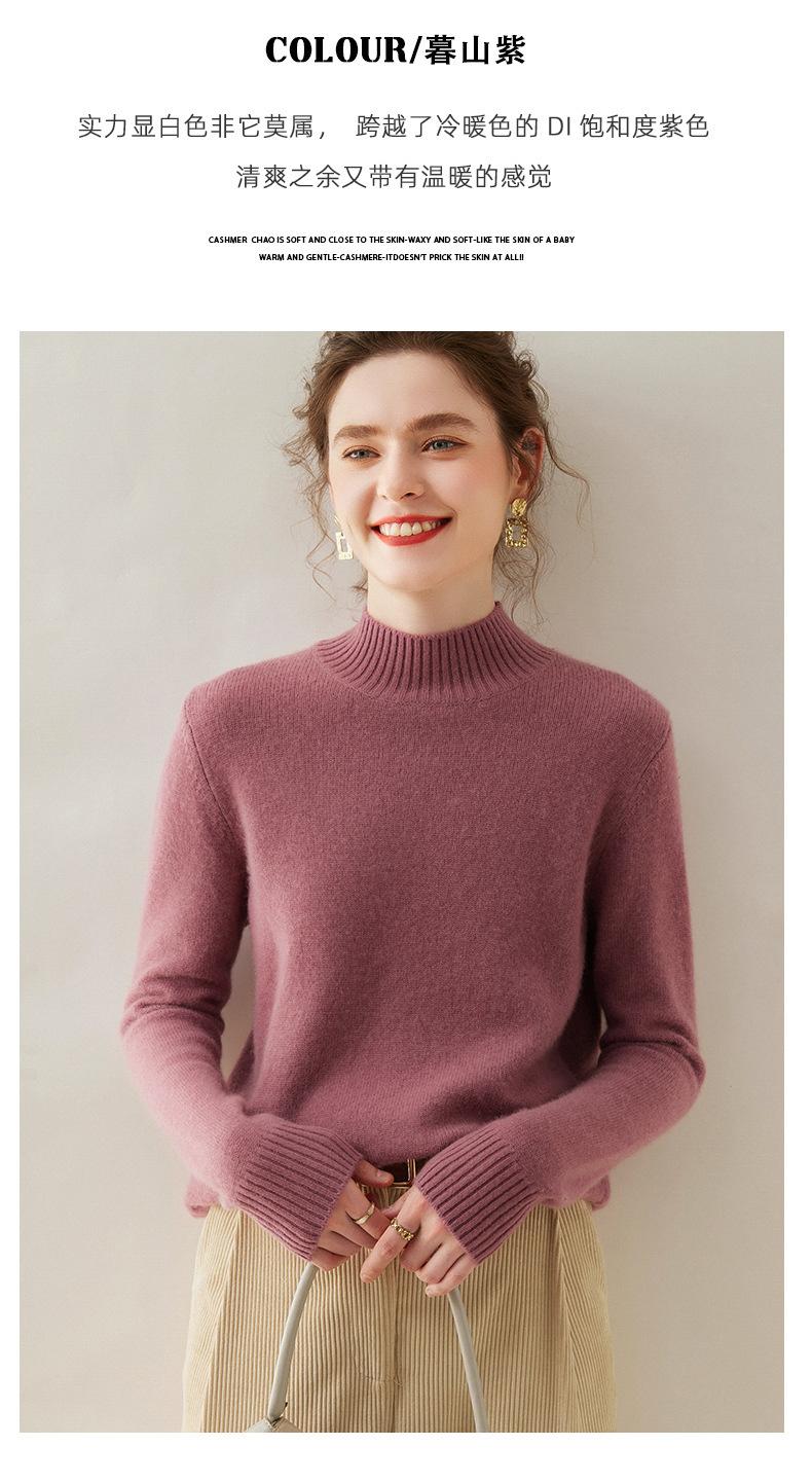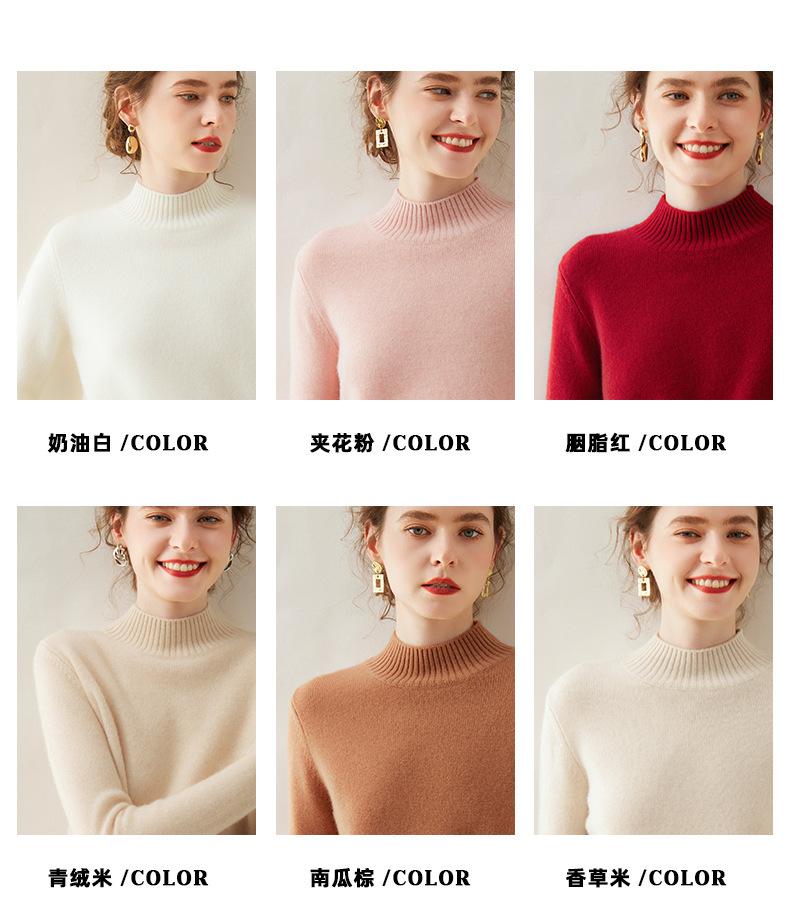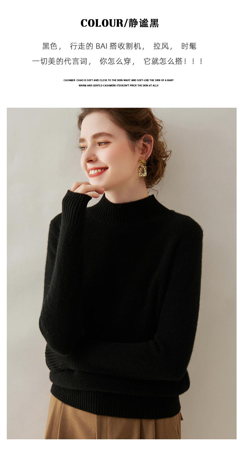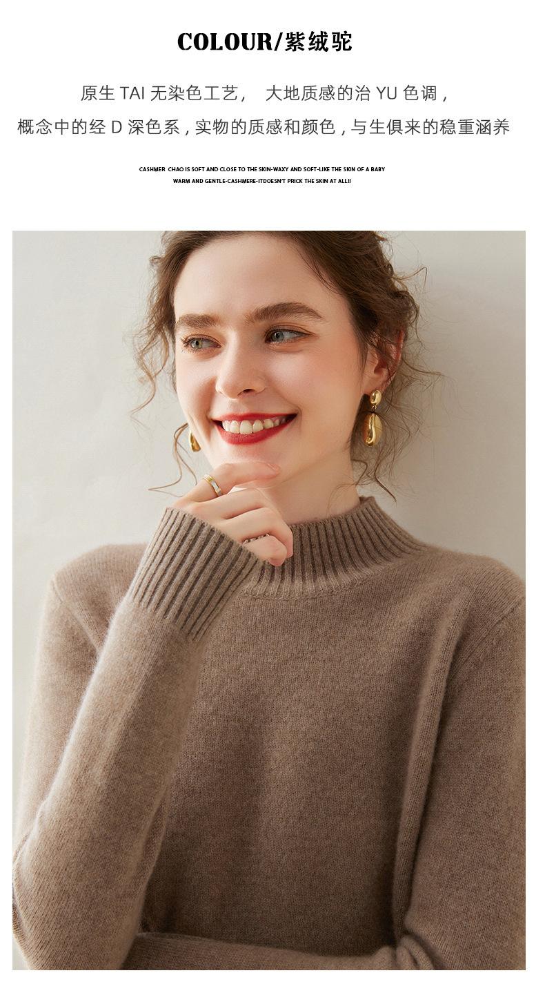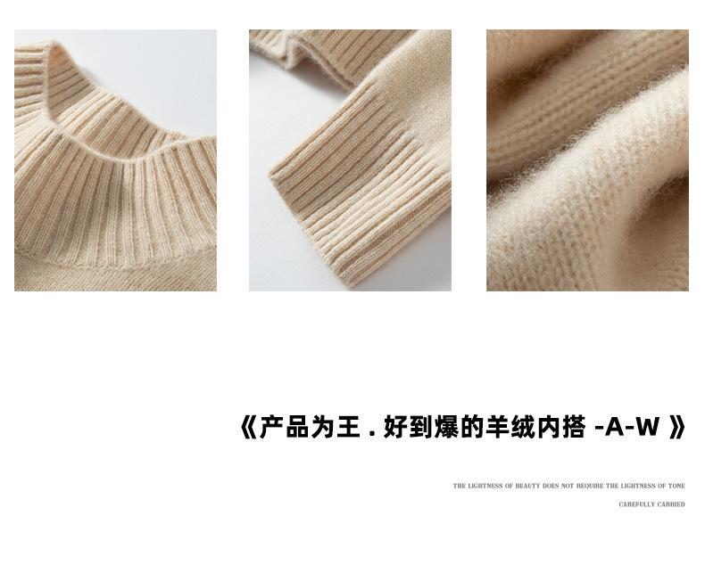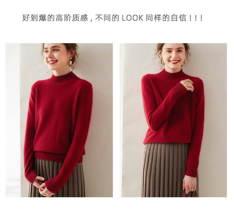 Suéter de cachemira de color liso con cuello alto medio, suelto, adelgazante, para otoño e invierno, tejido con hombros gruesos y manga larga para mujer