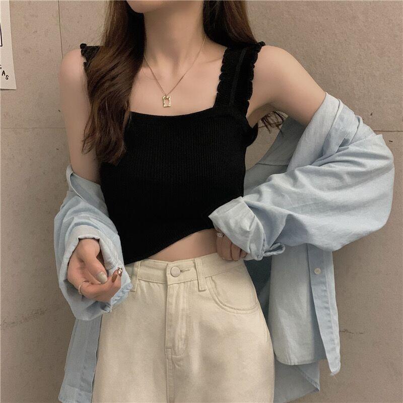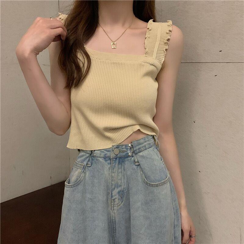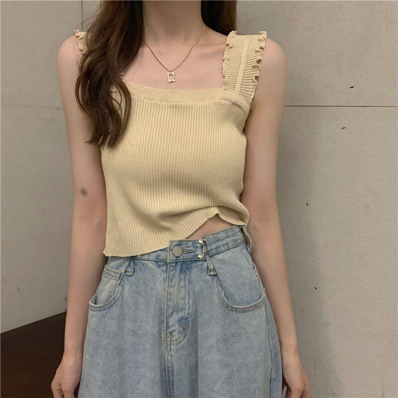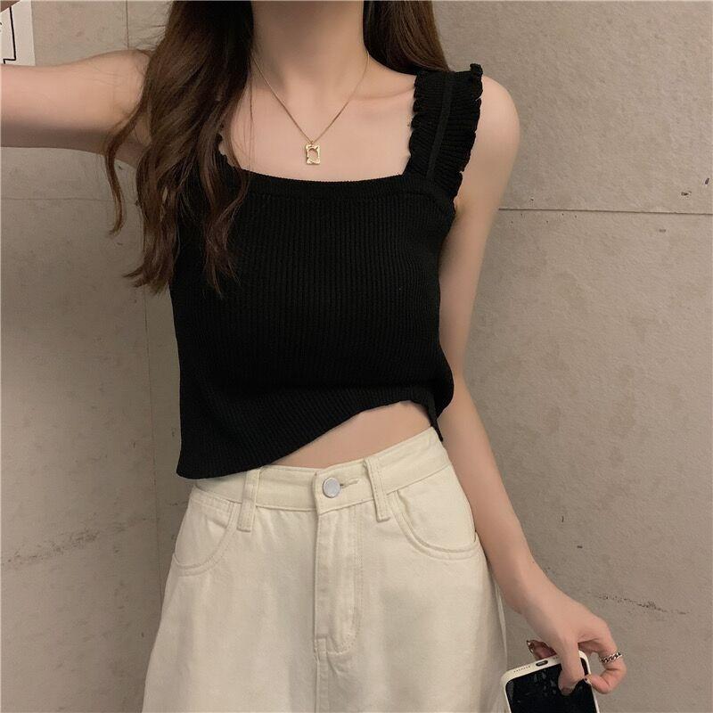 Camisola para Mujer Ropa Interior Verano Sentido del Diseño Nicho Fondo Top de Tubo Blanco Top de Punto Combinable Básico para Exterior
