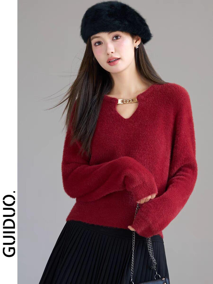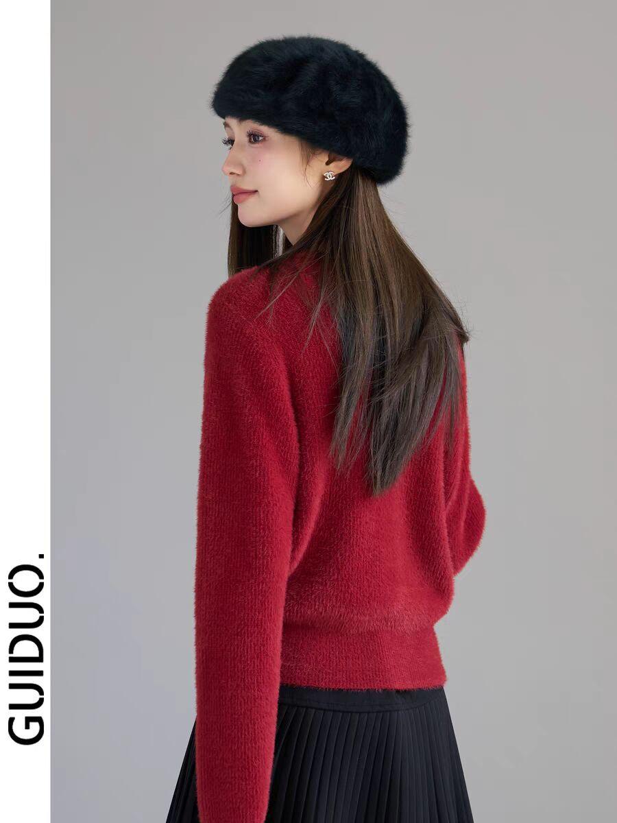 Suéter Invierno para Mujer Nuevo Estilo Estilo Chanel Camisa Base Interior Otoño e Invierno Terciopelo de Visón Imitación Top Tejido