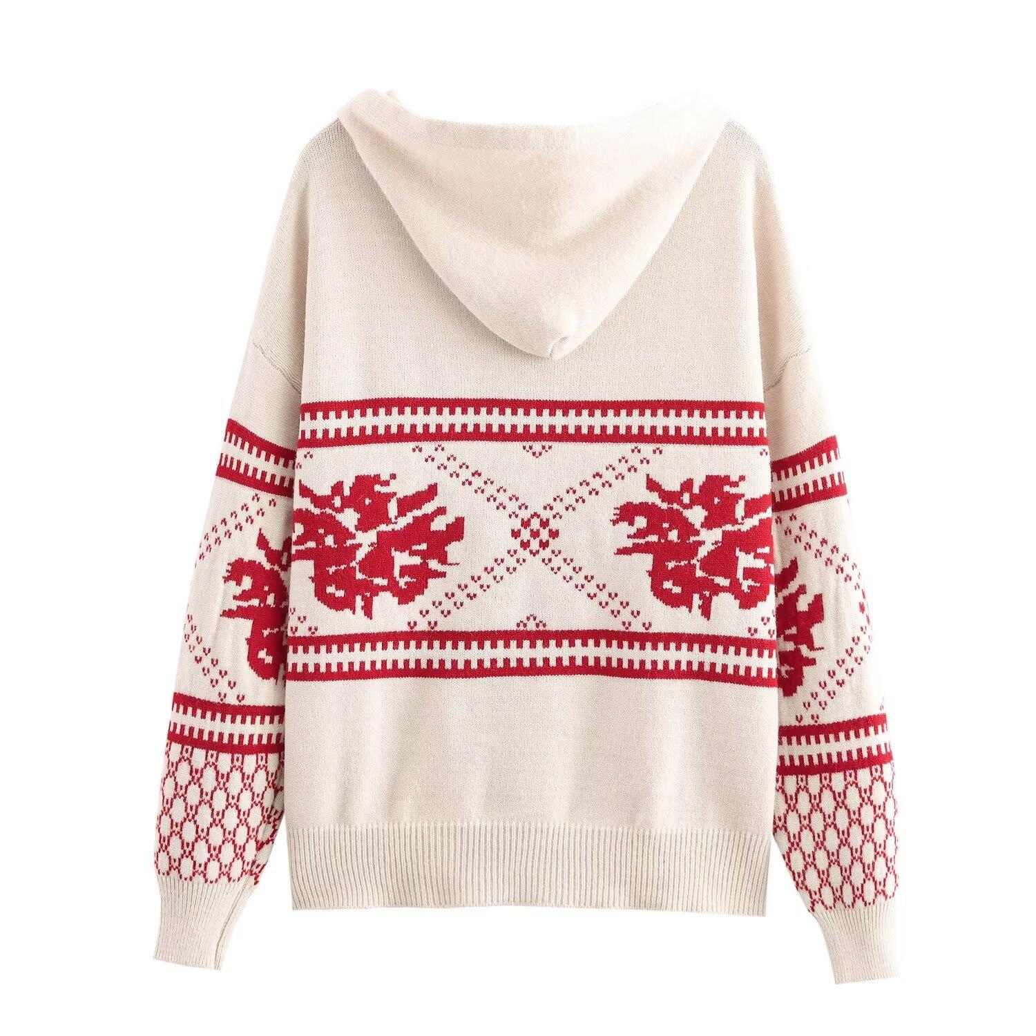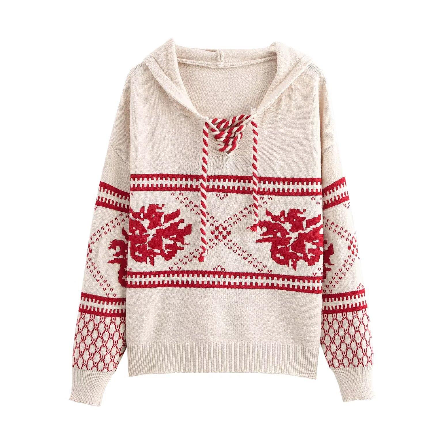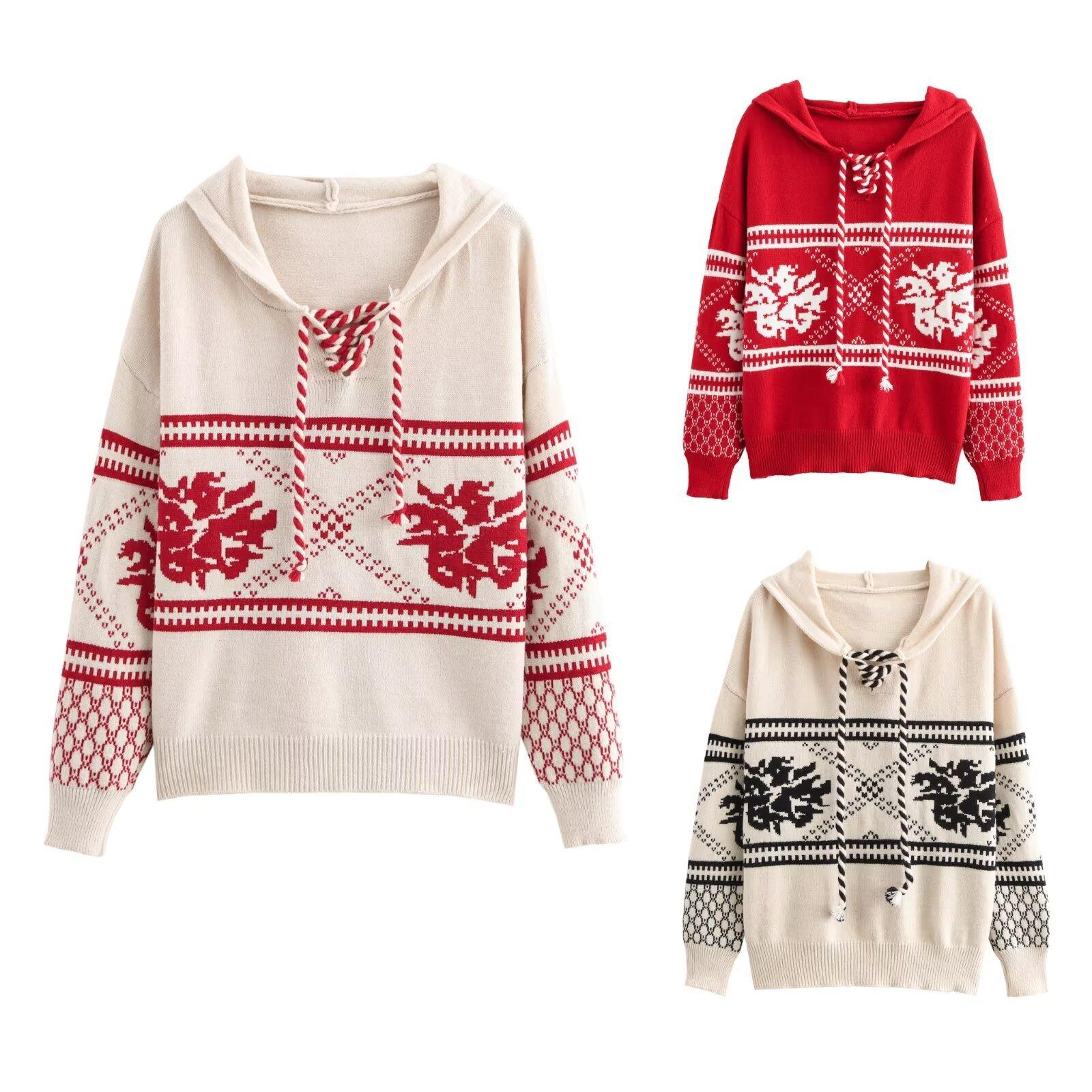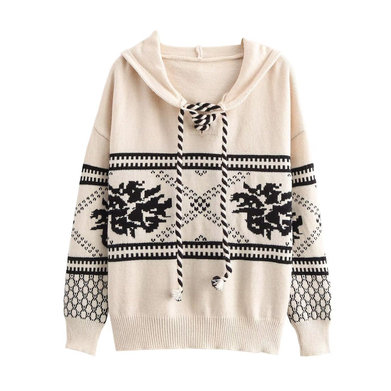 Sudadera con capucha de punto jacquard informal de moda urbana de otoño e invierno 2024 para mujer europea y americana de comercio exterior transfronterizo de Amazon