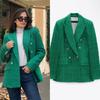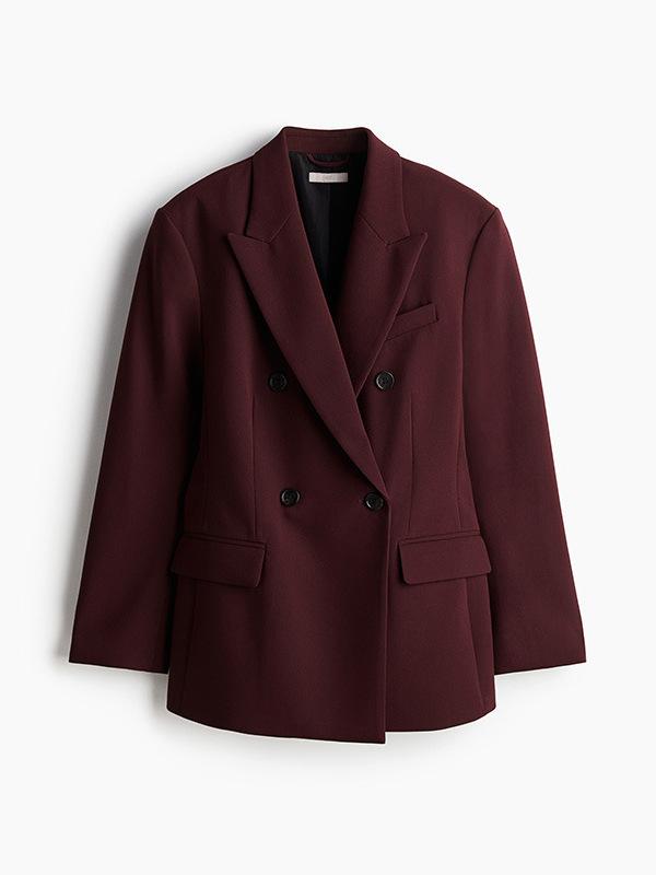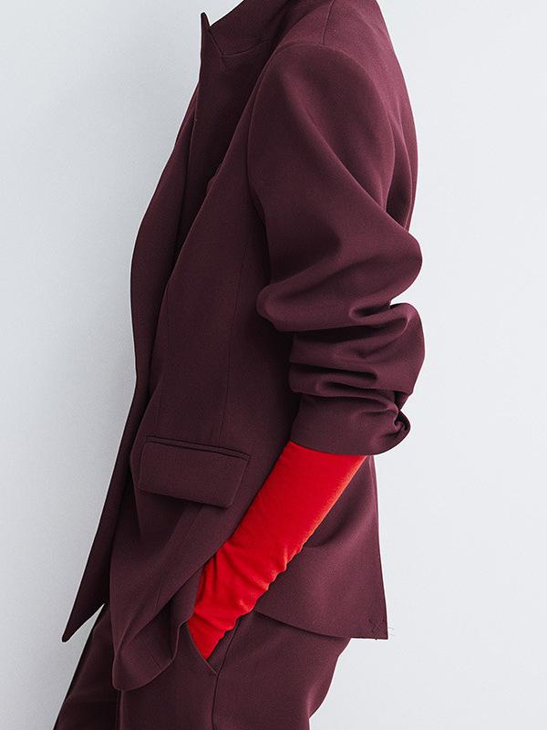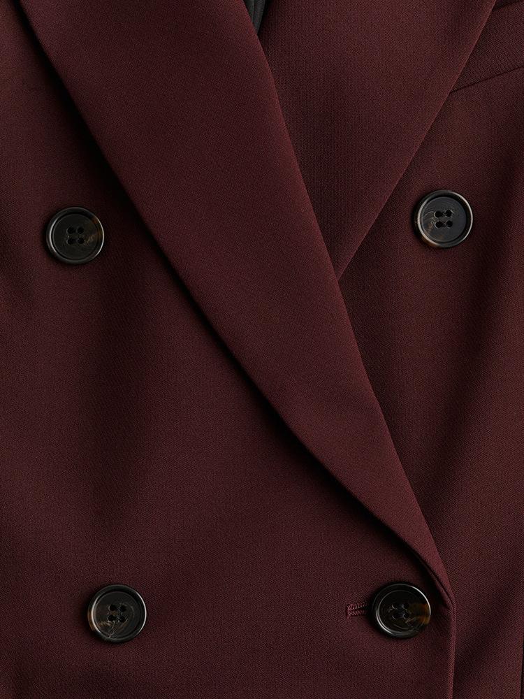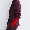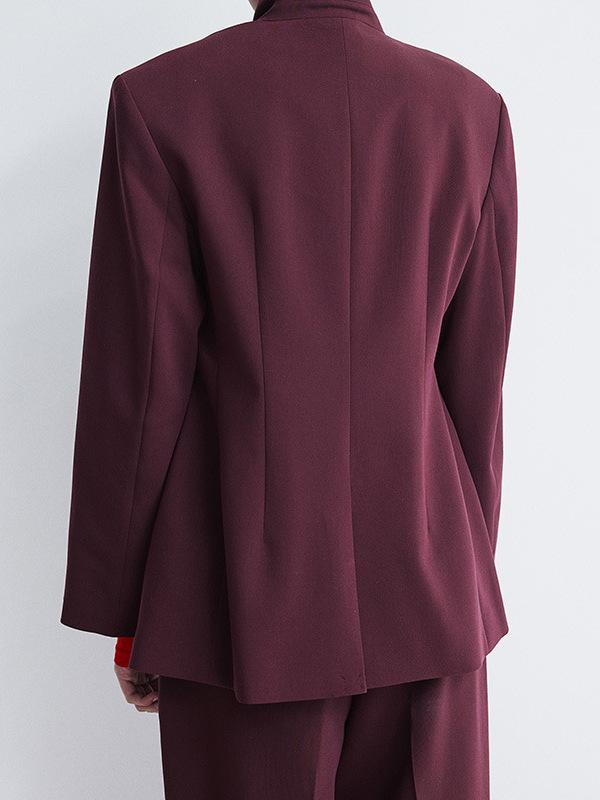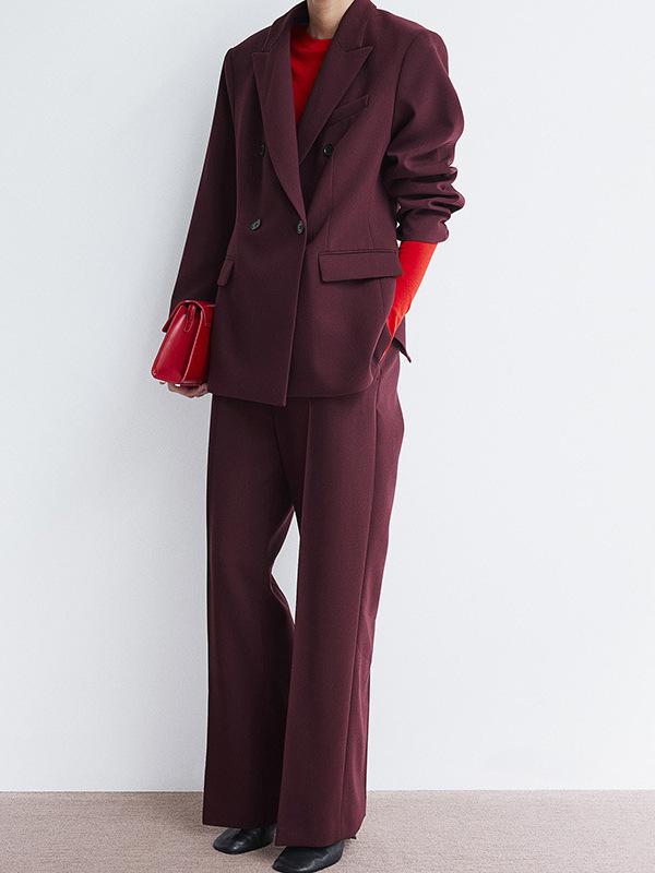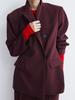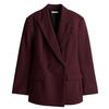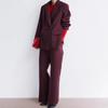 Ropa de Mujer Primavera y Otoño 2024 Nuevo Temperamento de Moda Transfronteriza Europea y Americana Chaqueta de Traje Rojo Vino Cruzada