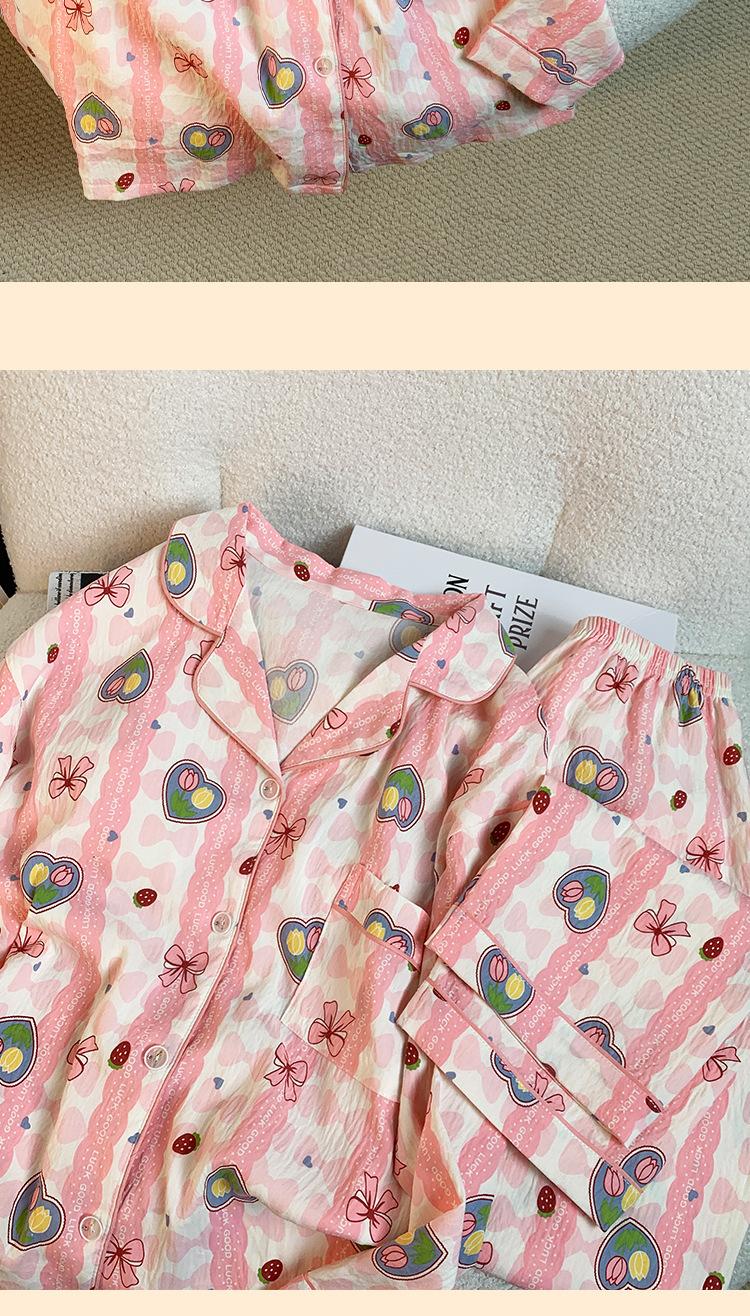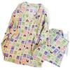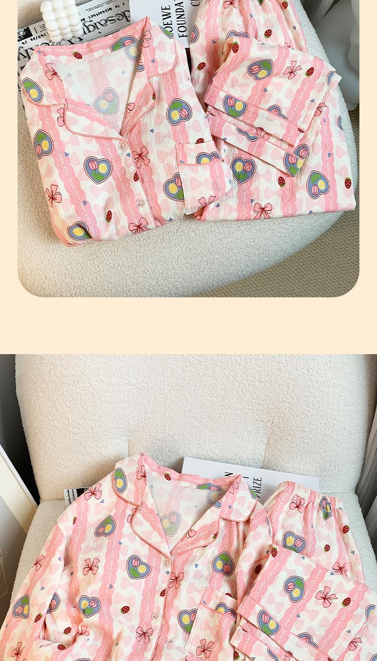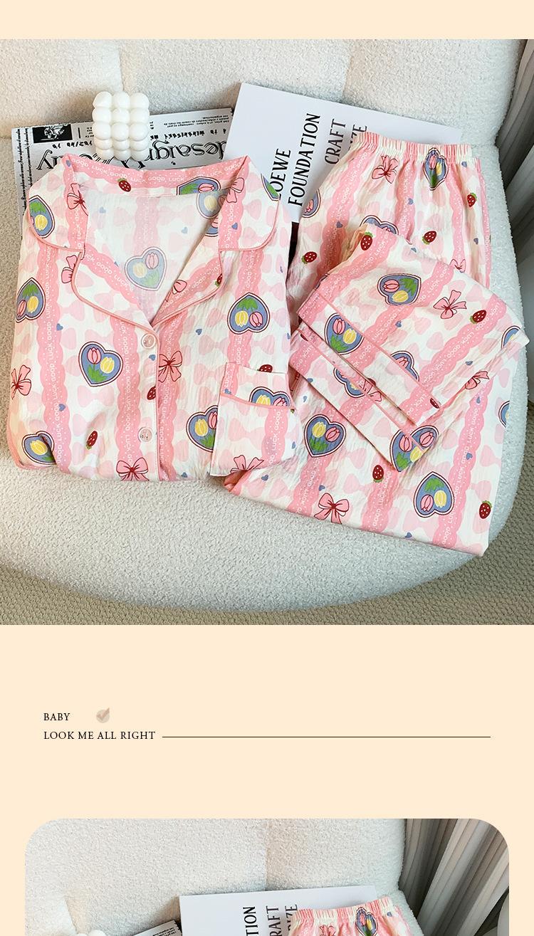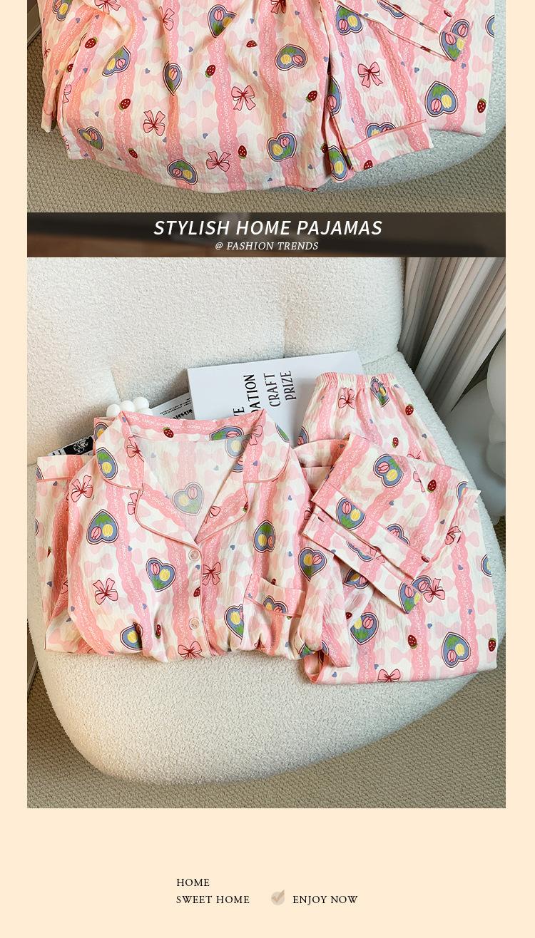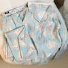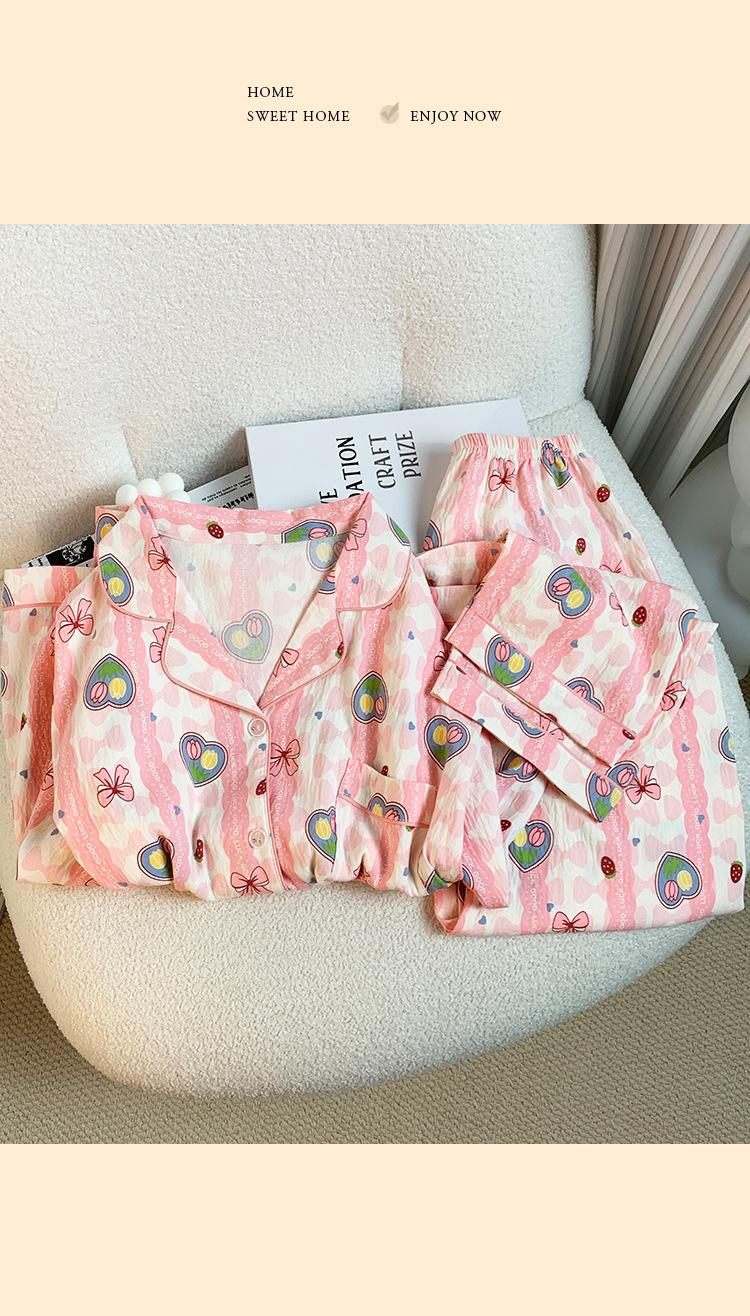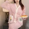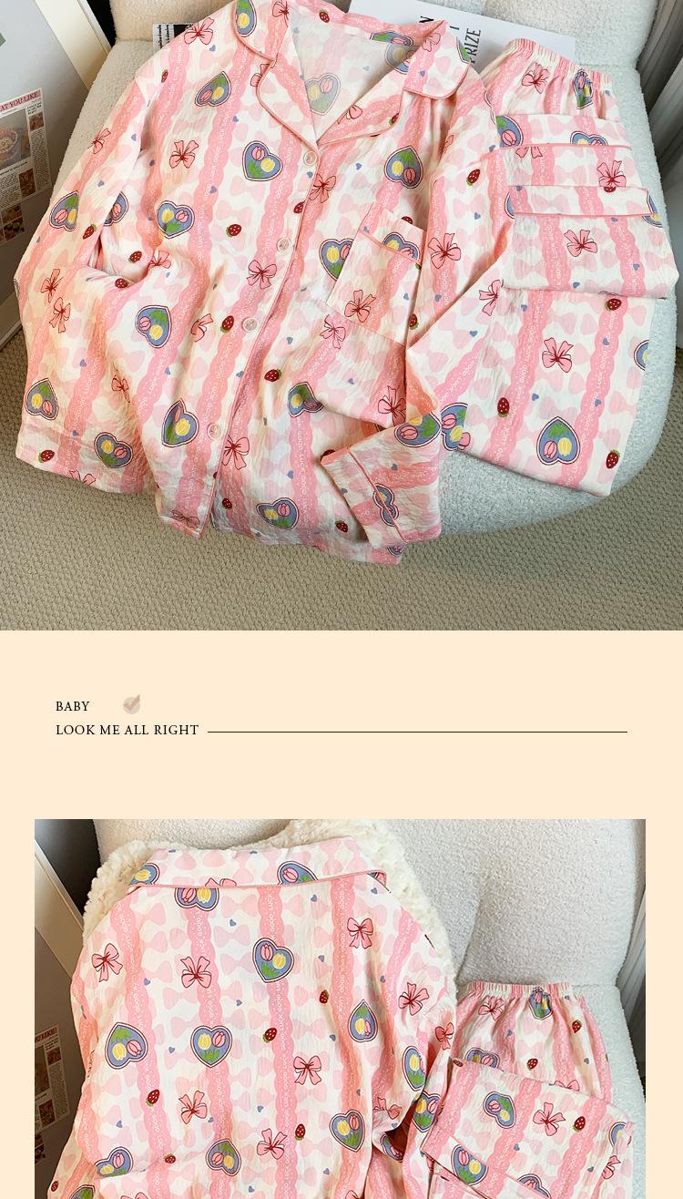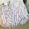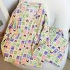 Pijamas nuevos de otoño e invierno para mujer, de algodón con nubes, pantalones de manga larga, bonitos y dulces, con solapa estampada, sueltos, de talla grande, ropa para el hogar