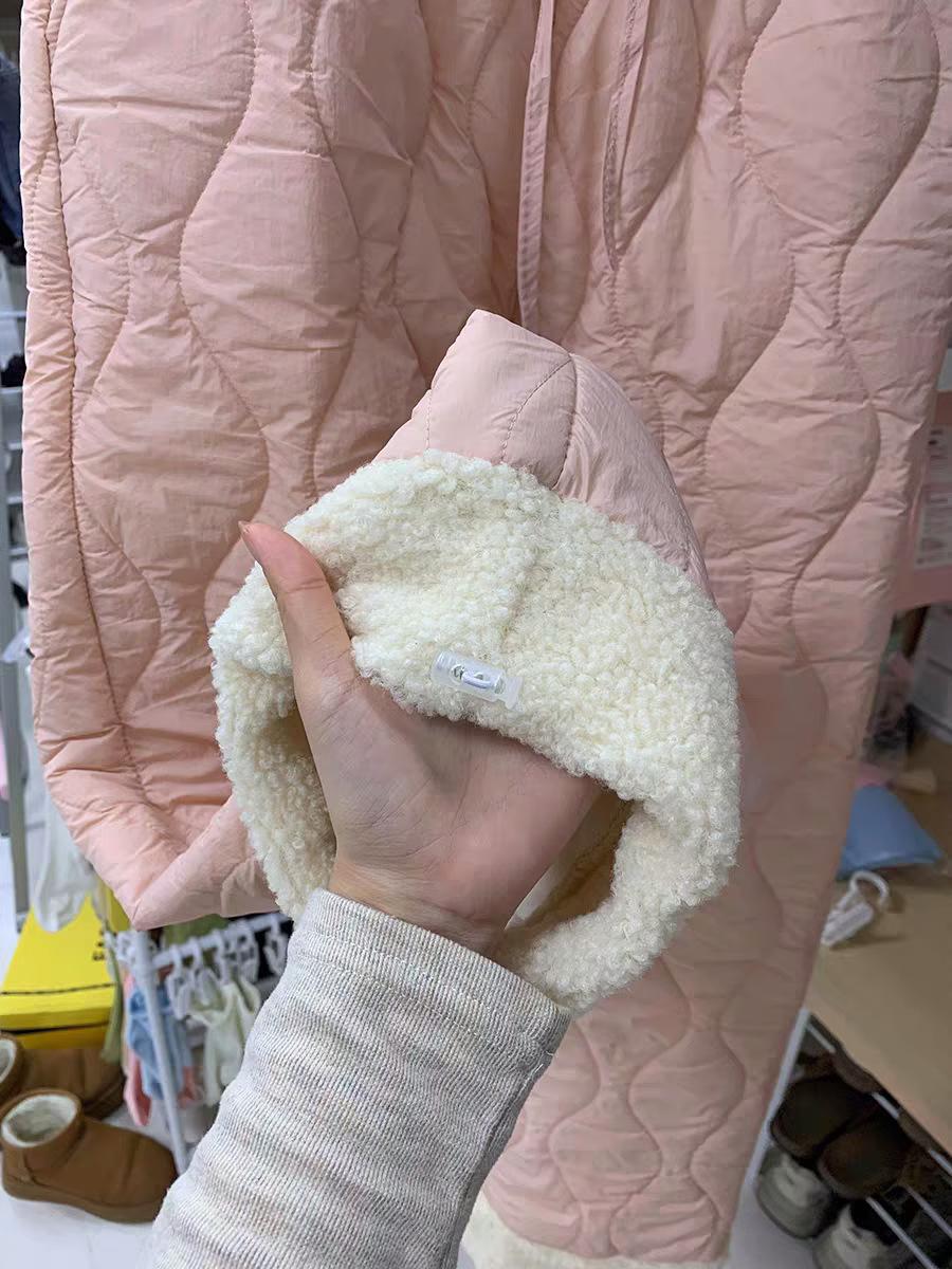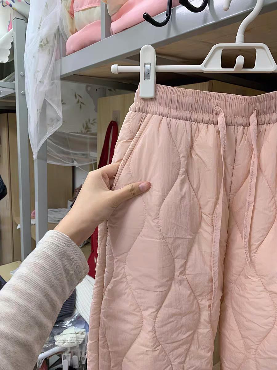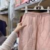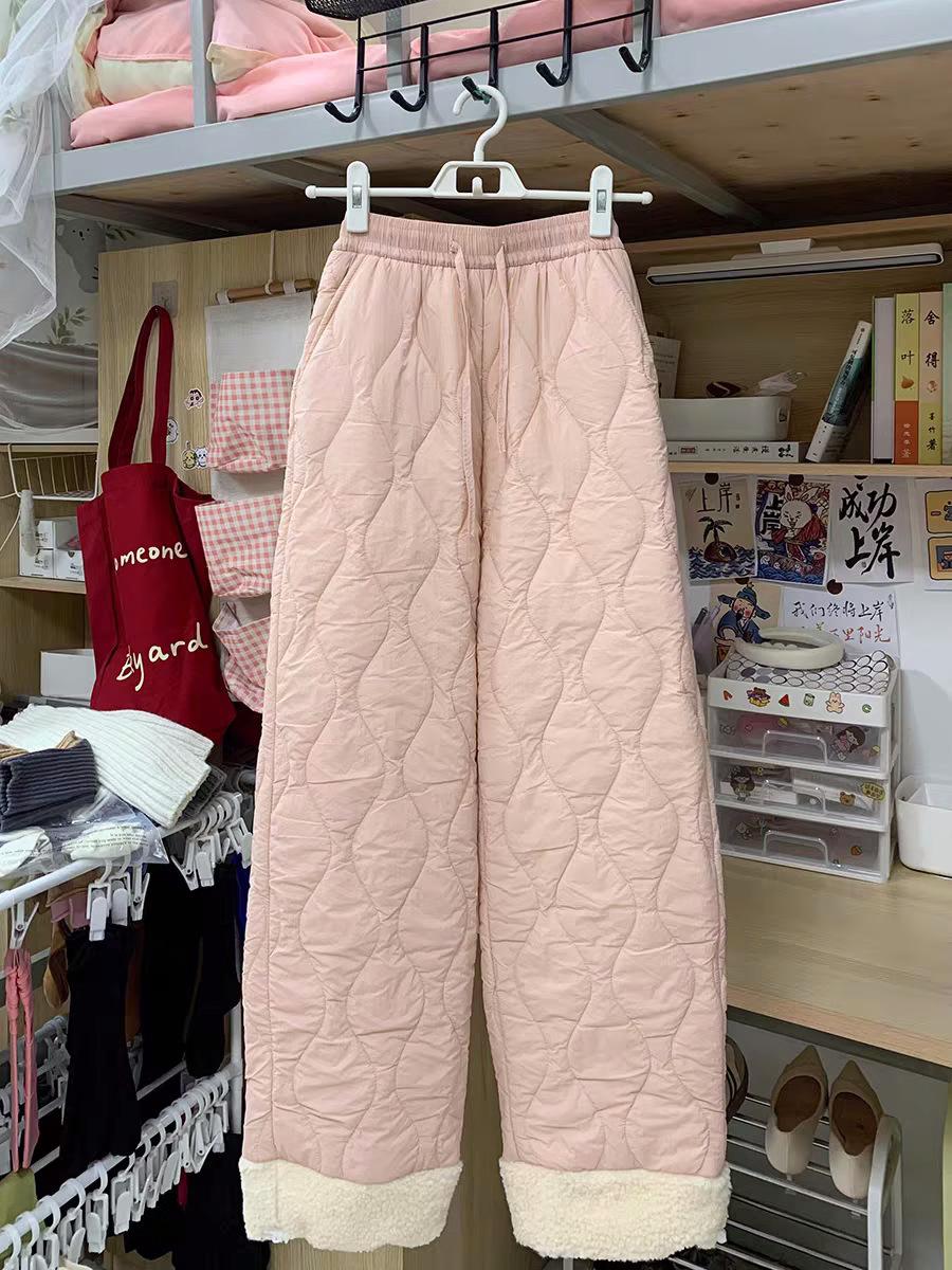 Pantalones pequeños casuales de algodón con forro polar para mujer 2024 otoño e invierno sueltos delgados cálidos cintura alta rosa pantalones de pierna ancha pantalones
