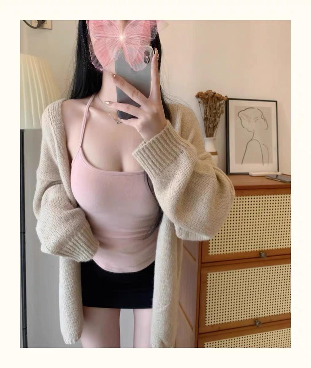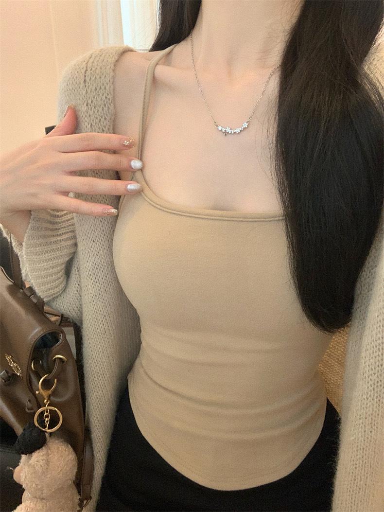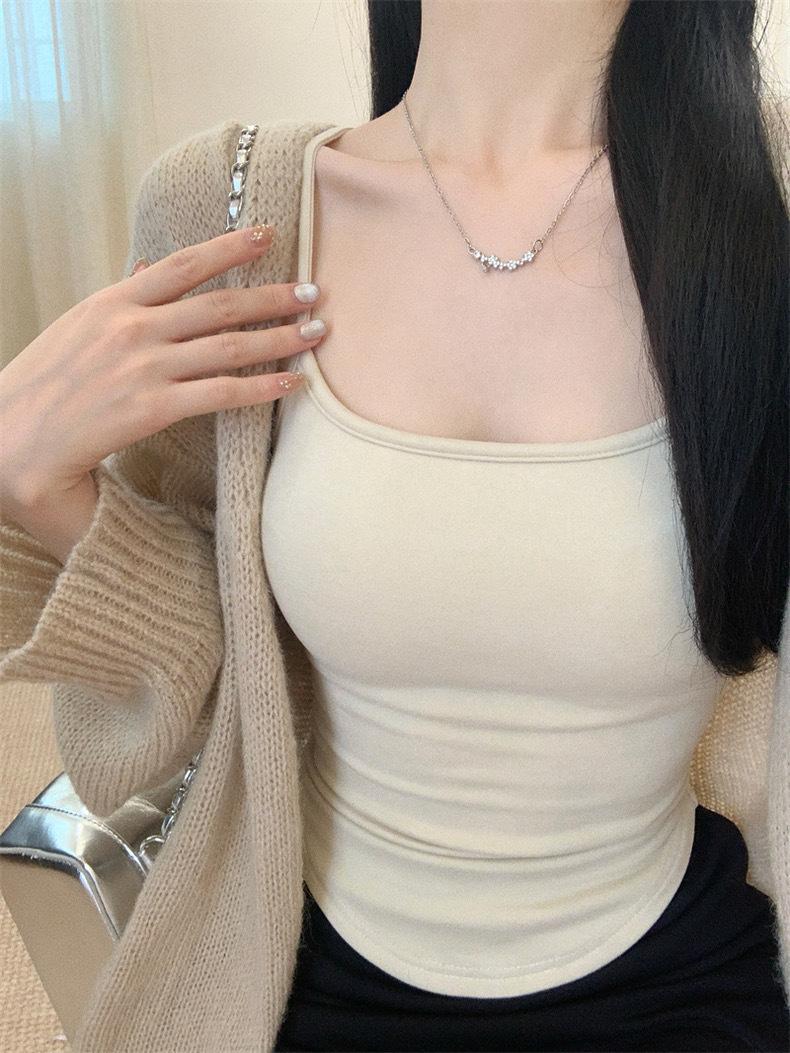 786# Chaleco Cálido de Terciopelo Sling Otoño e Invierno Ropa Interior Ropa Exterior Top Pequeño Ajustado para Mujer con Almohadilla en el Pecho Espalda Cruzada Descubierta