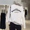 Forro polar Engrosado Otoño e Invierno para Mujer Forro polar Cálido Moda Letra Cuello Alto Sudadera Estampada Cuello Redondo Cien Piezas para Comercio Exterior