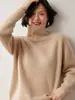 Suéter de cachemira de cuello medio alto para mujer, suéter básico holgado de color sólido coreano grueso de otoño e invierno de 24 pulgadas, suéter de moda