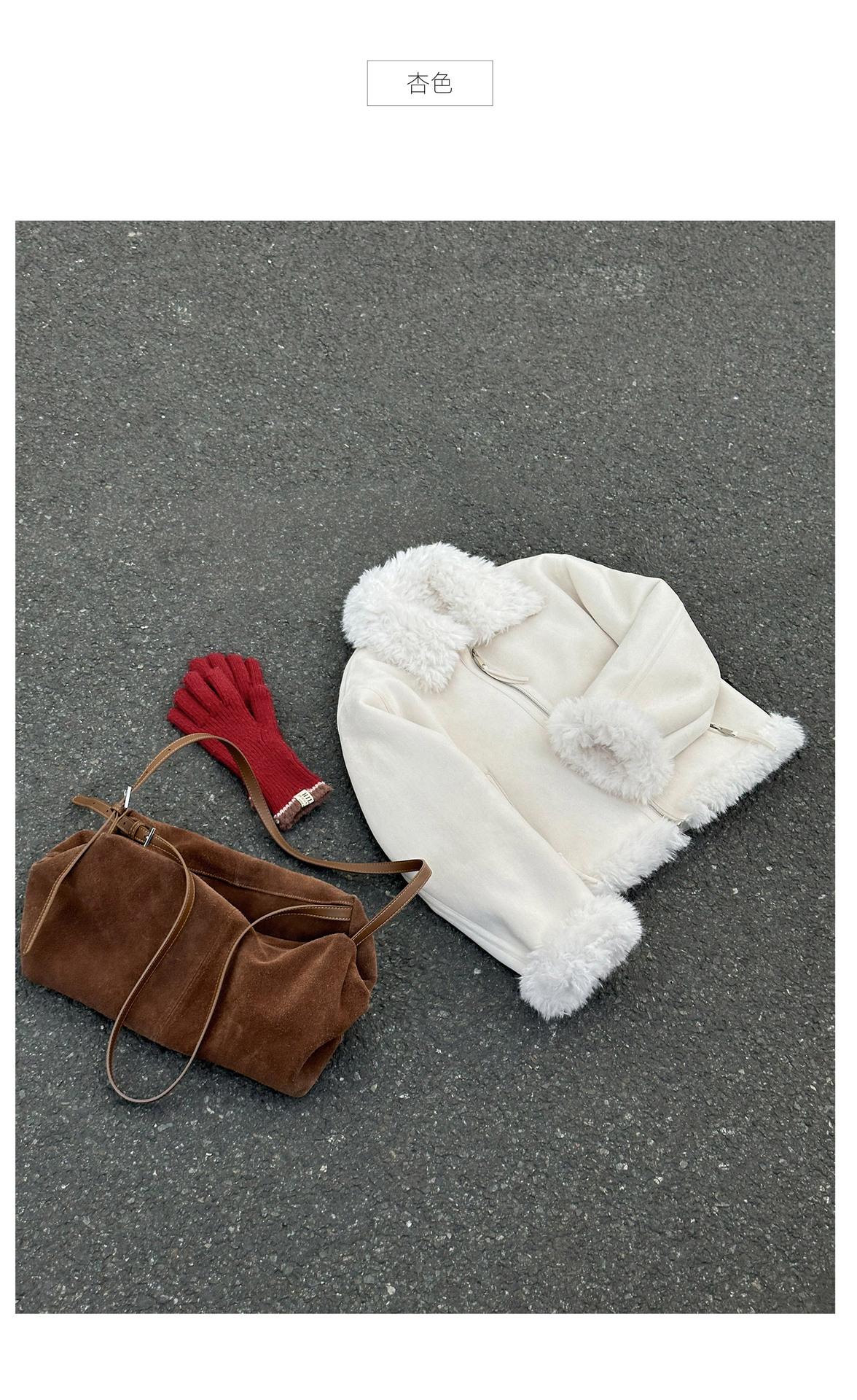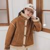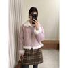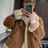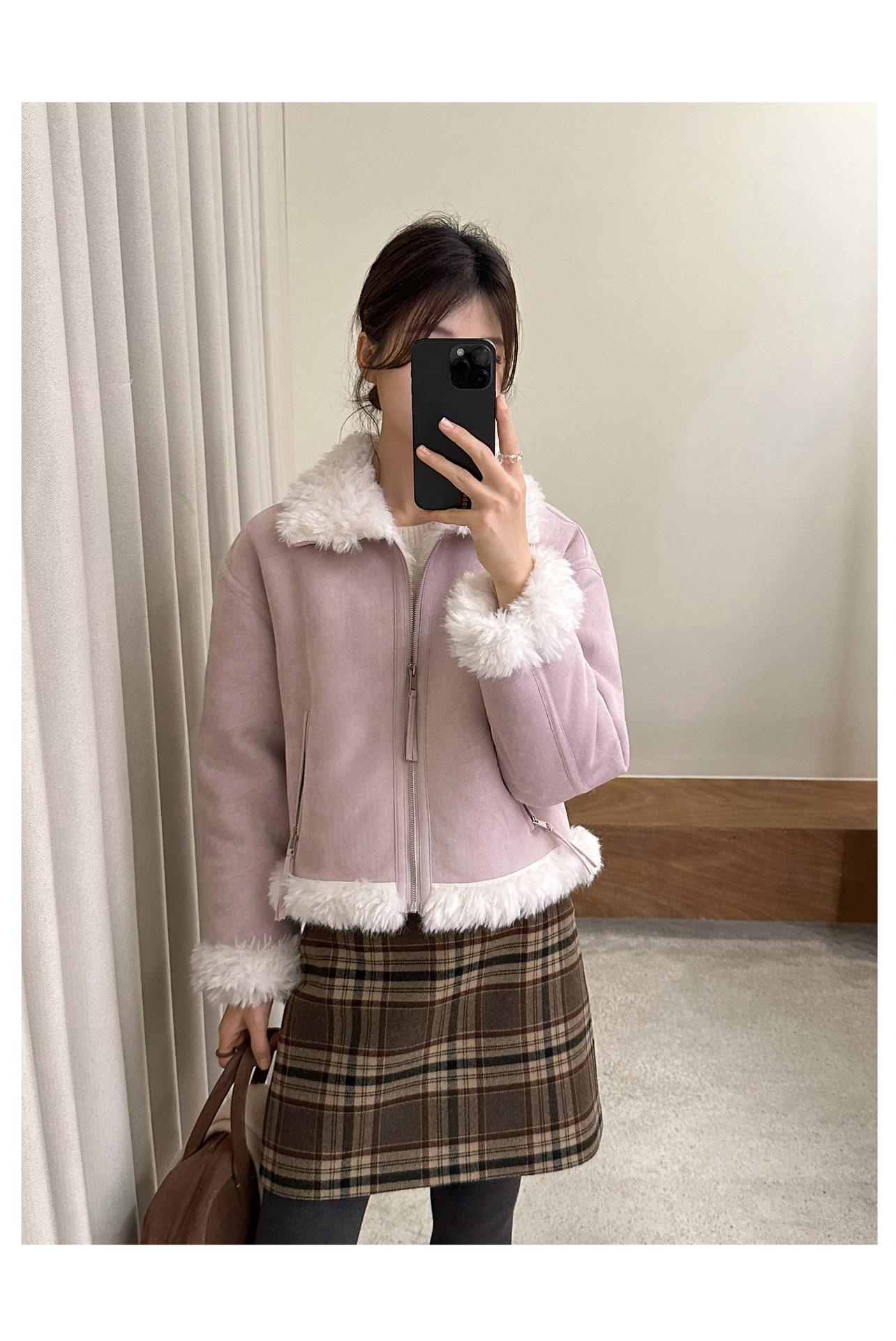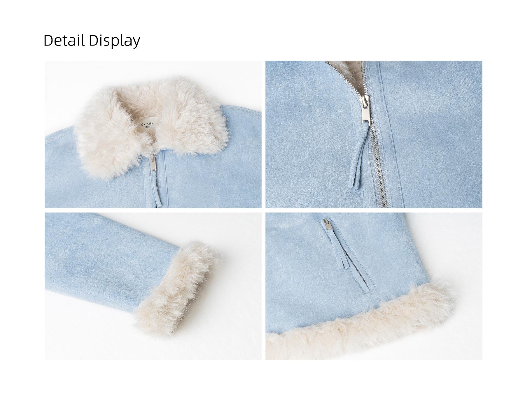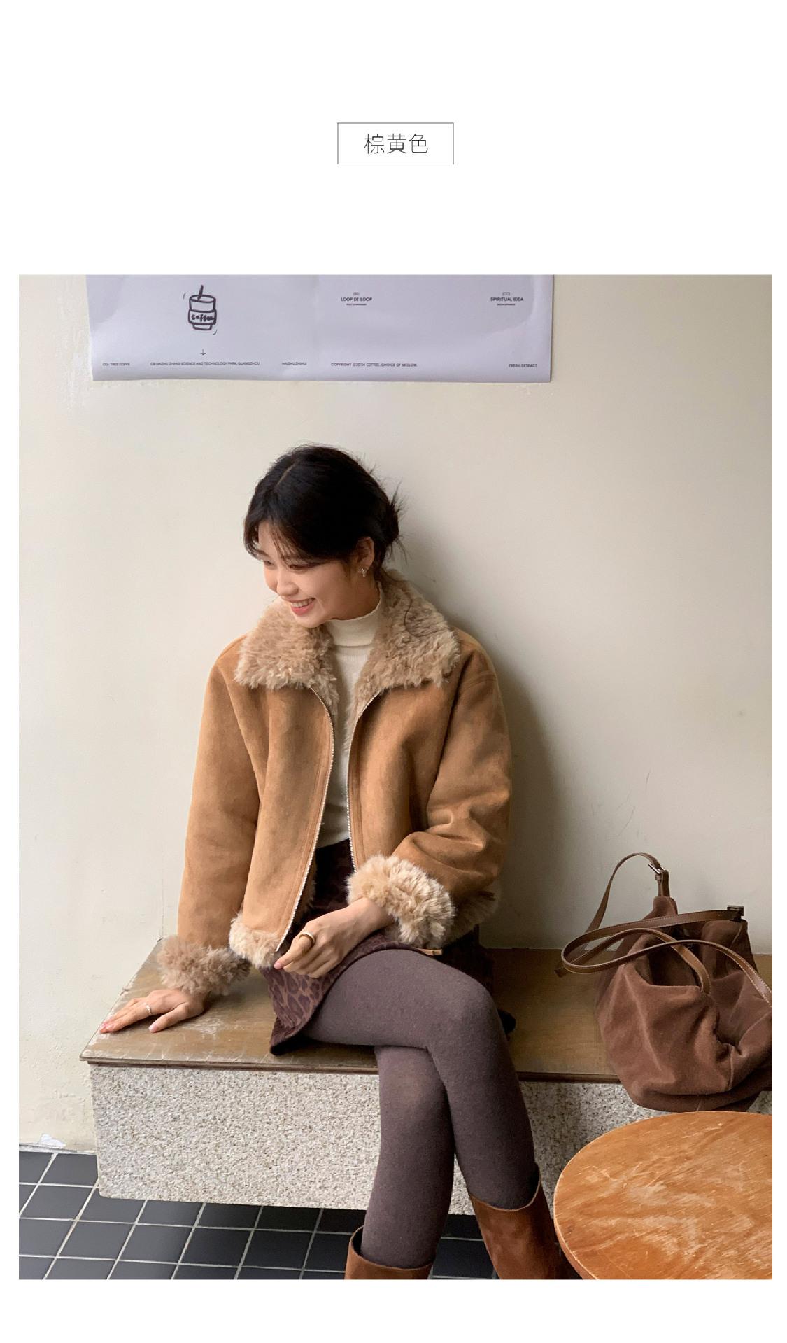 Chaqueta corta clásica de invierno con solapa y contraste de color para mujer, cálida y combinable con todo, con cremallera