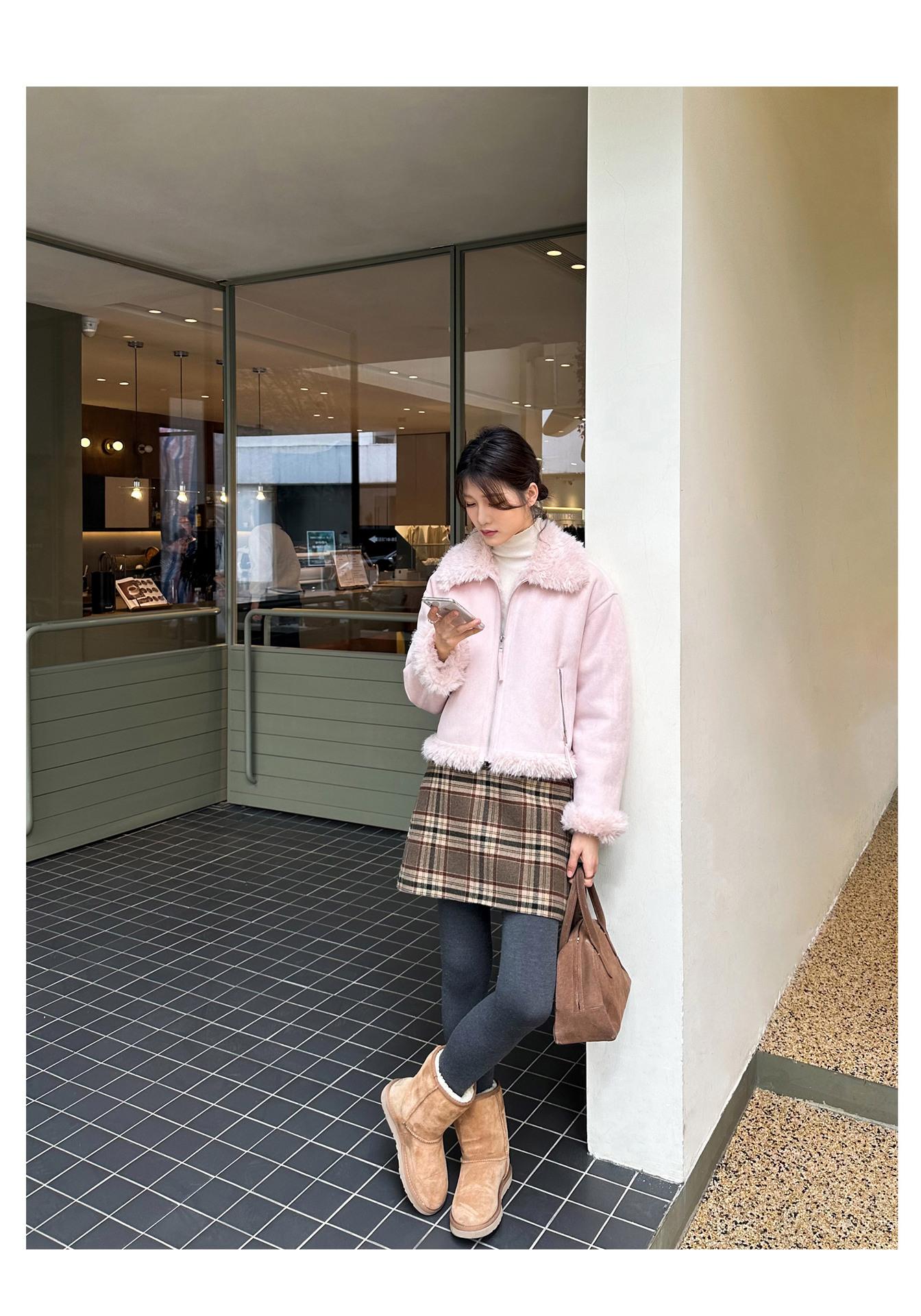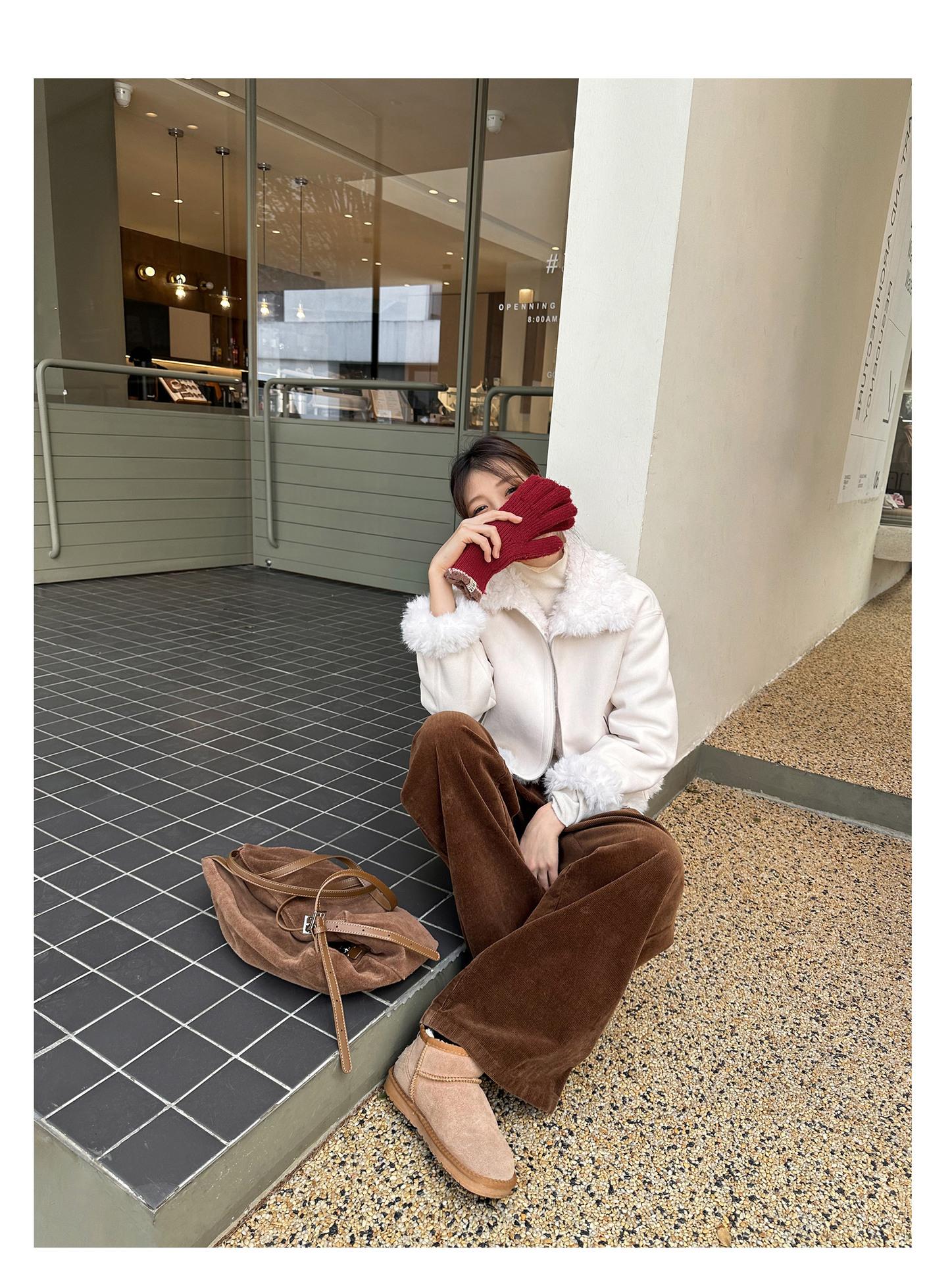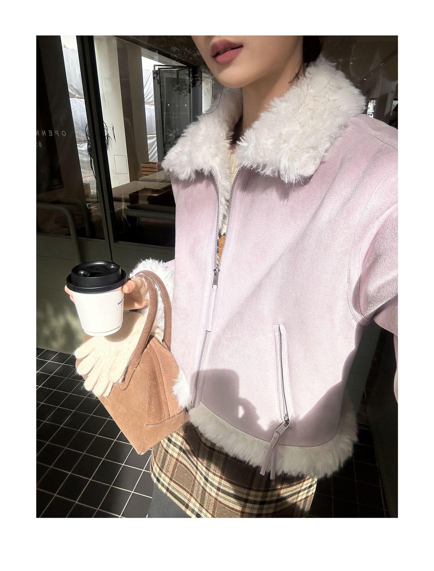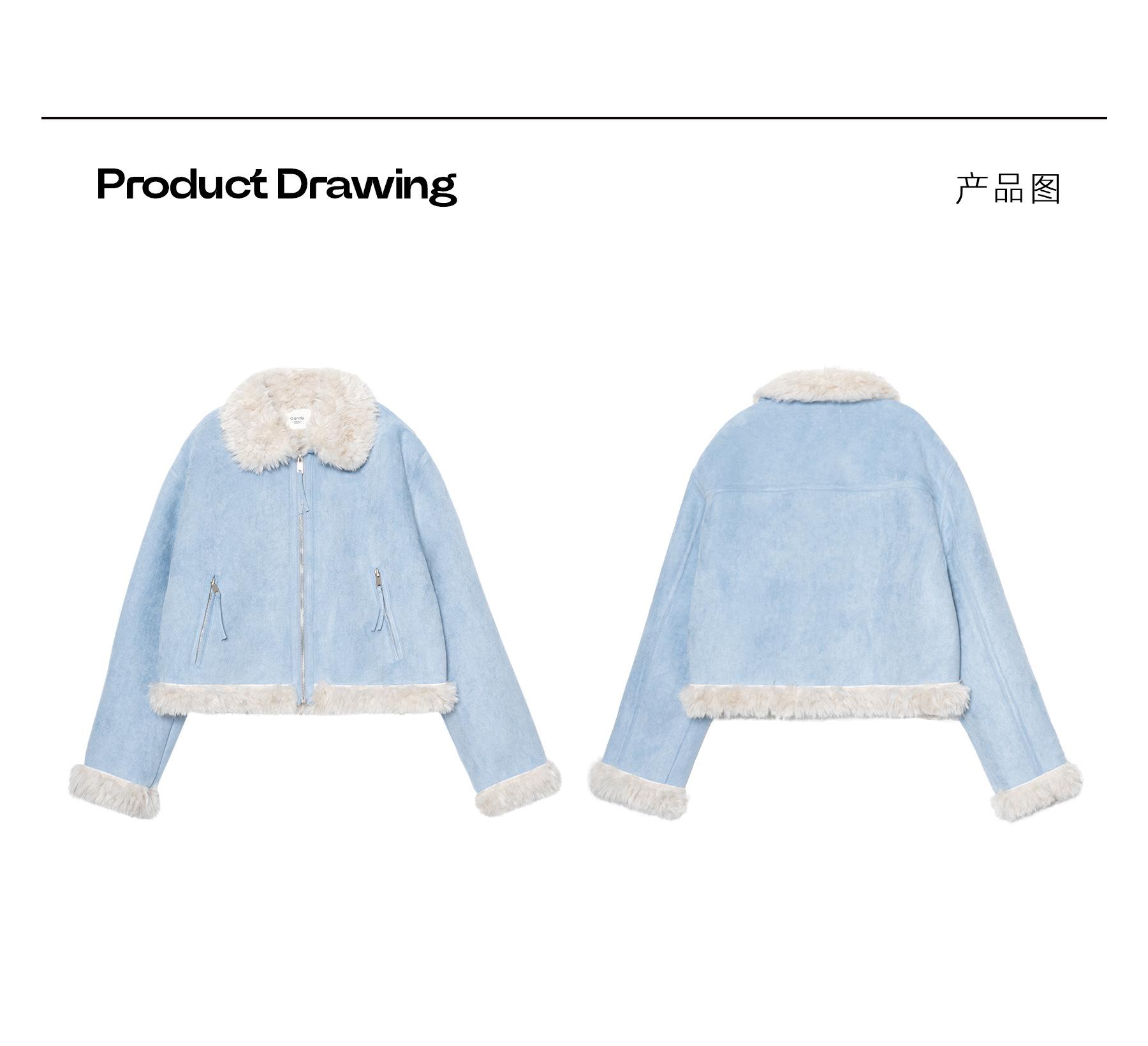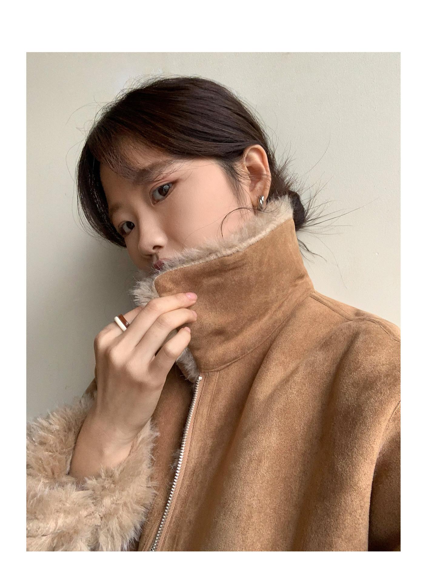 Chaqueta corta clásica de invierno con solapa y contraste de color para mujer, cálida y combinable con todo, con cremallera