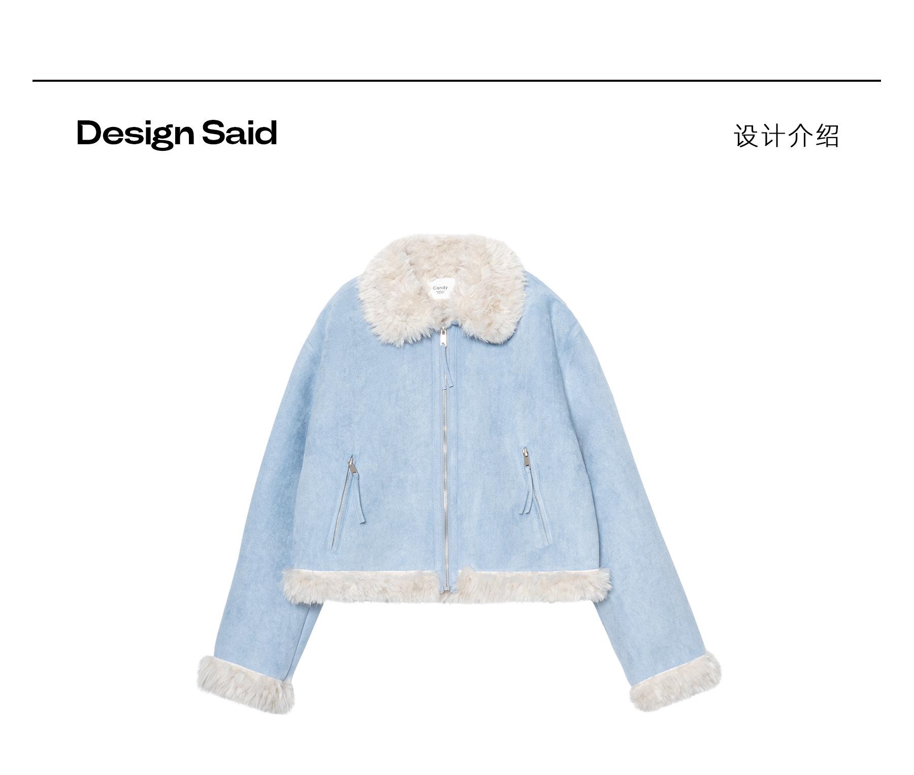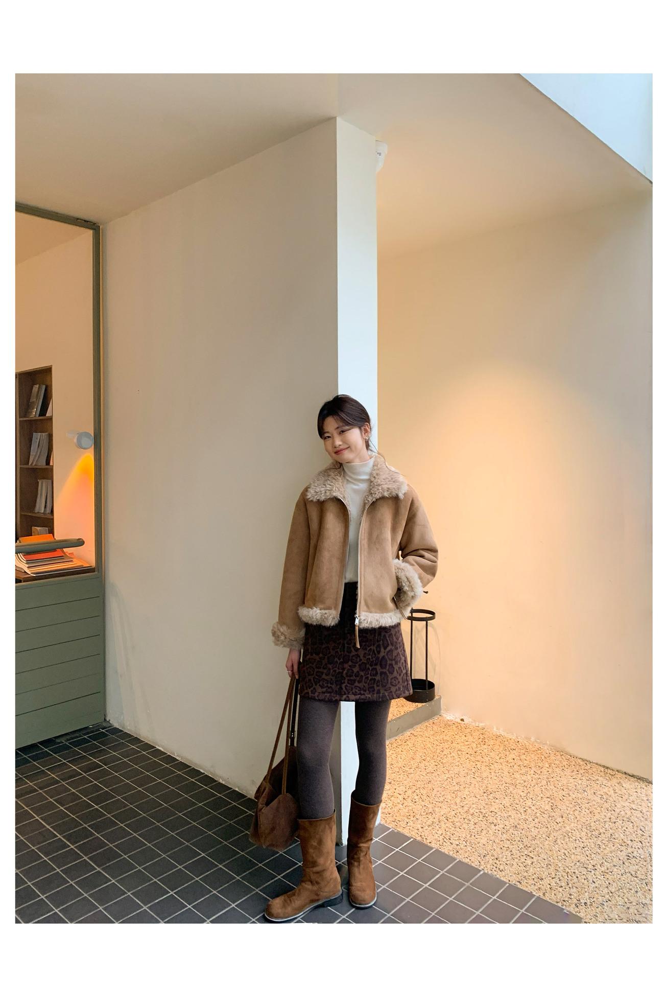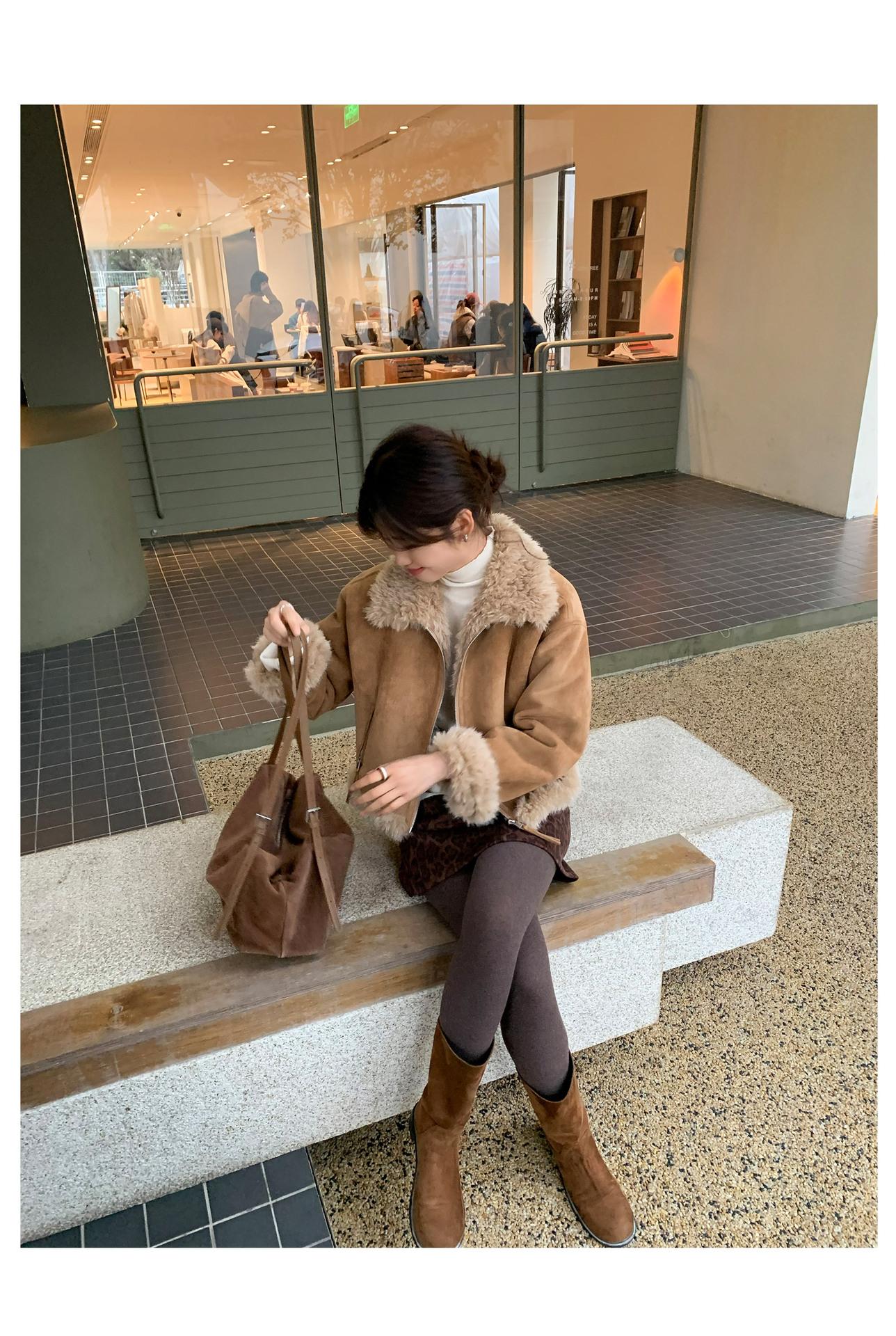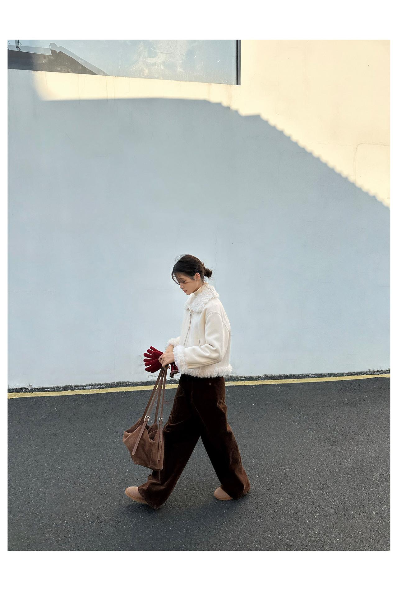 Chaqueta corta clásica de invierno con solapa y contraste de color para mujer, cálida y combinable con todo, con cremallera