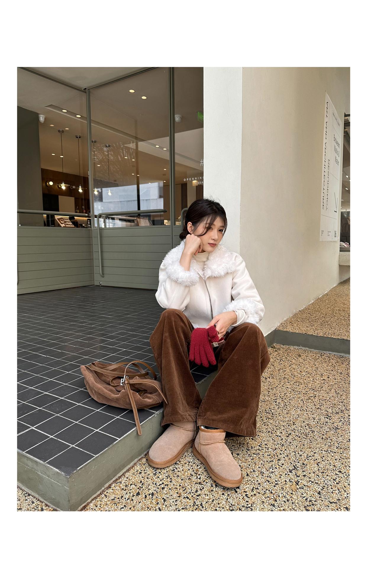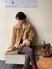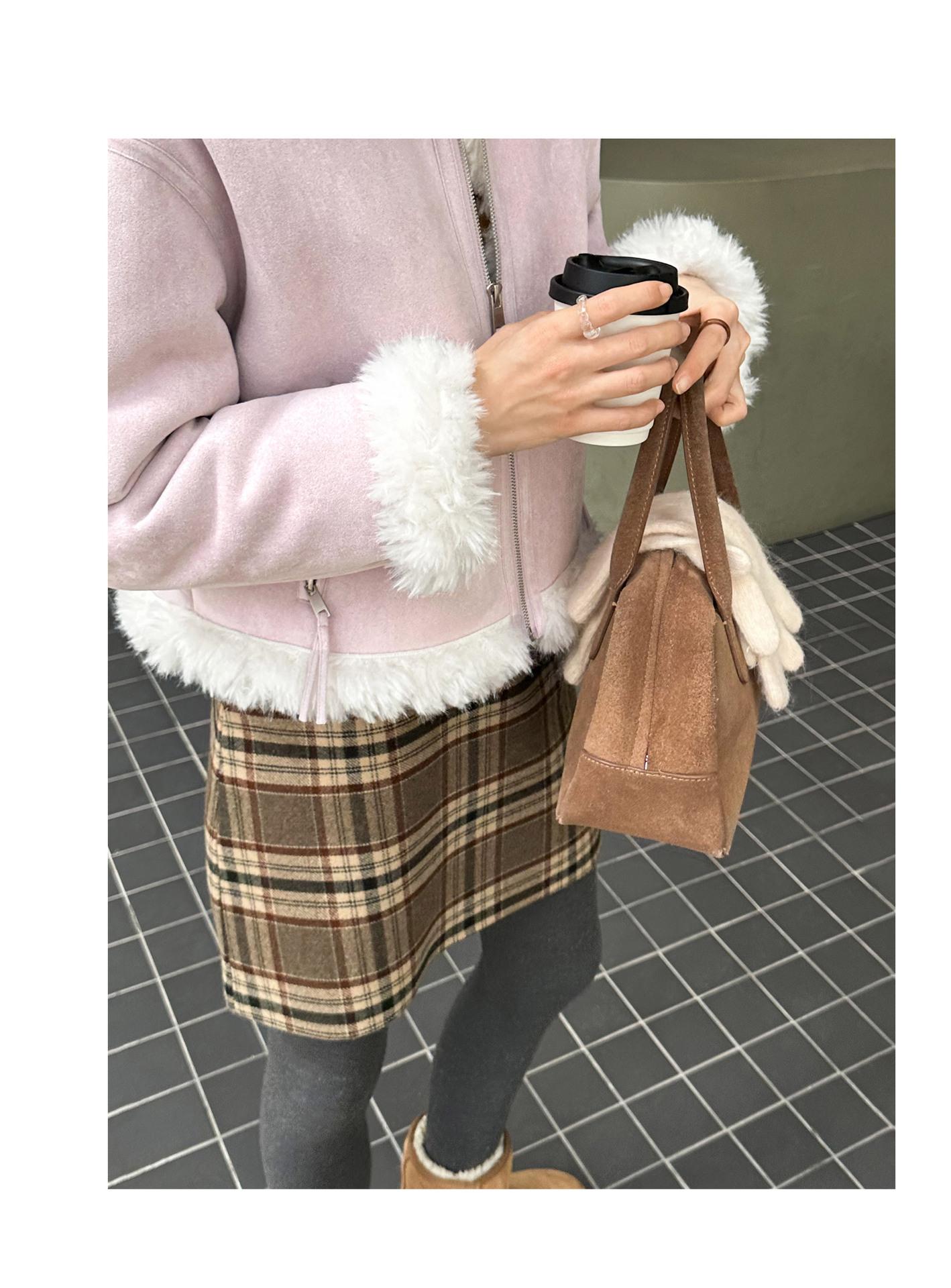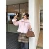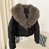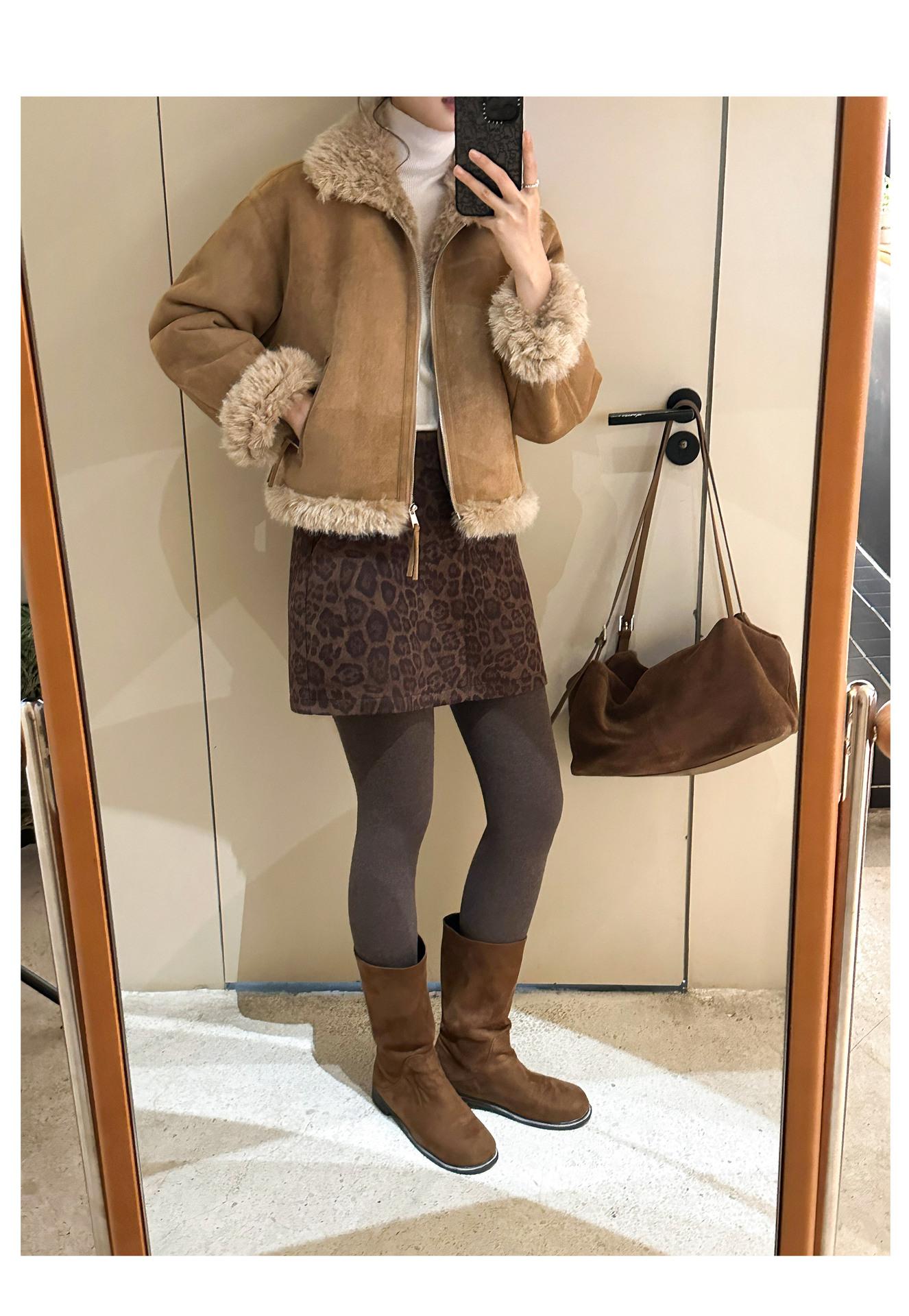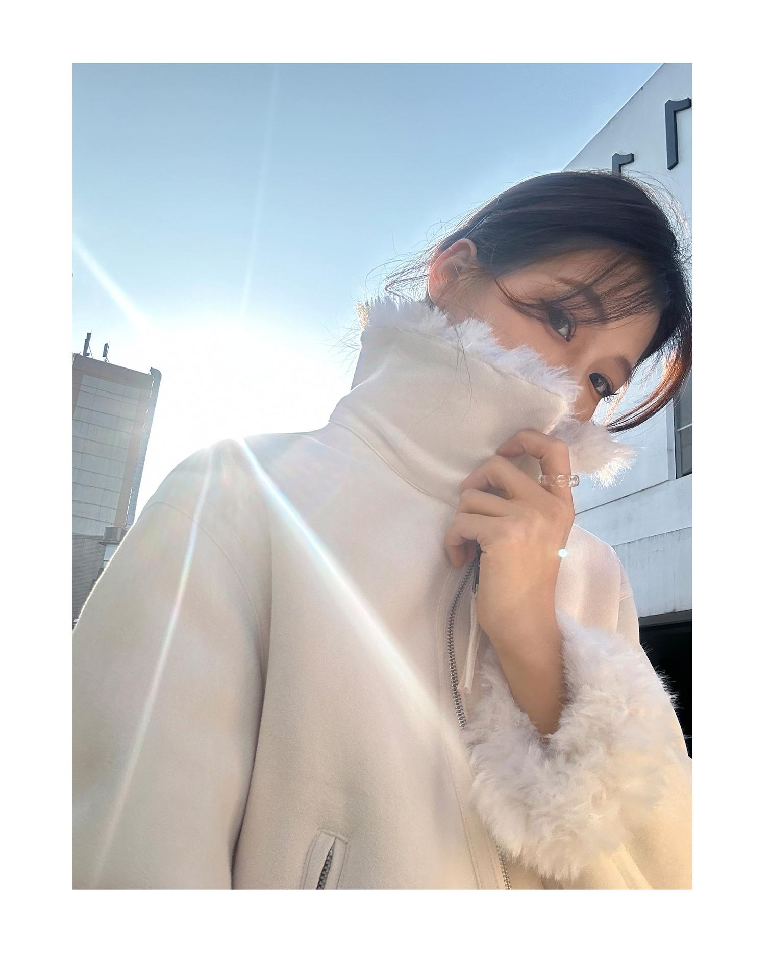 Chaqueta corta clásica de invierno con solapa y contraste de color para mujer, cálida y combinable con todo, con cremallera