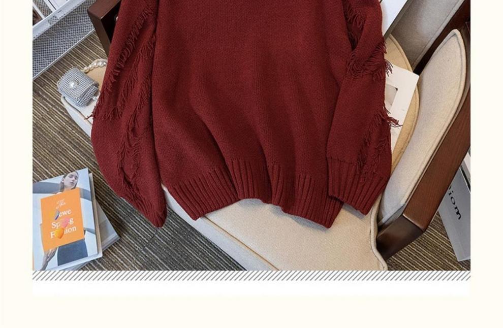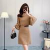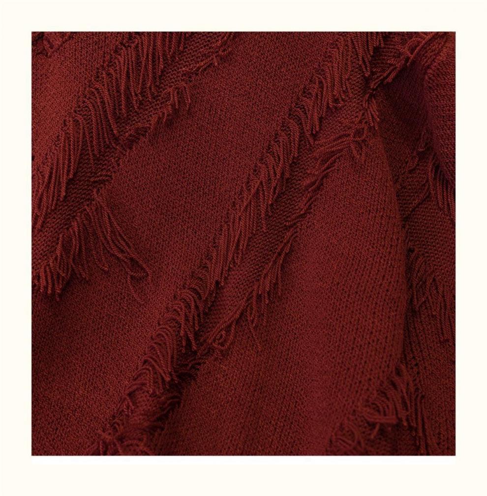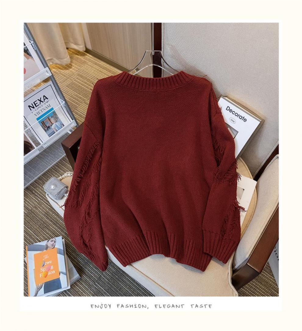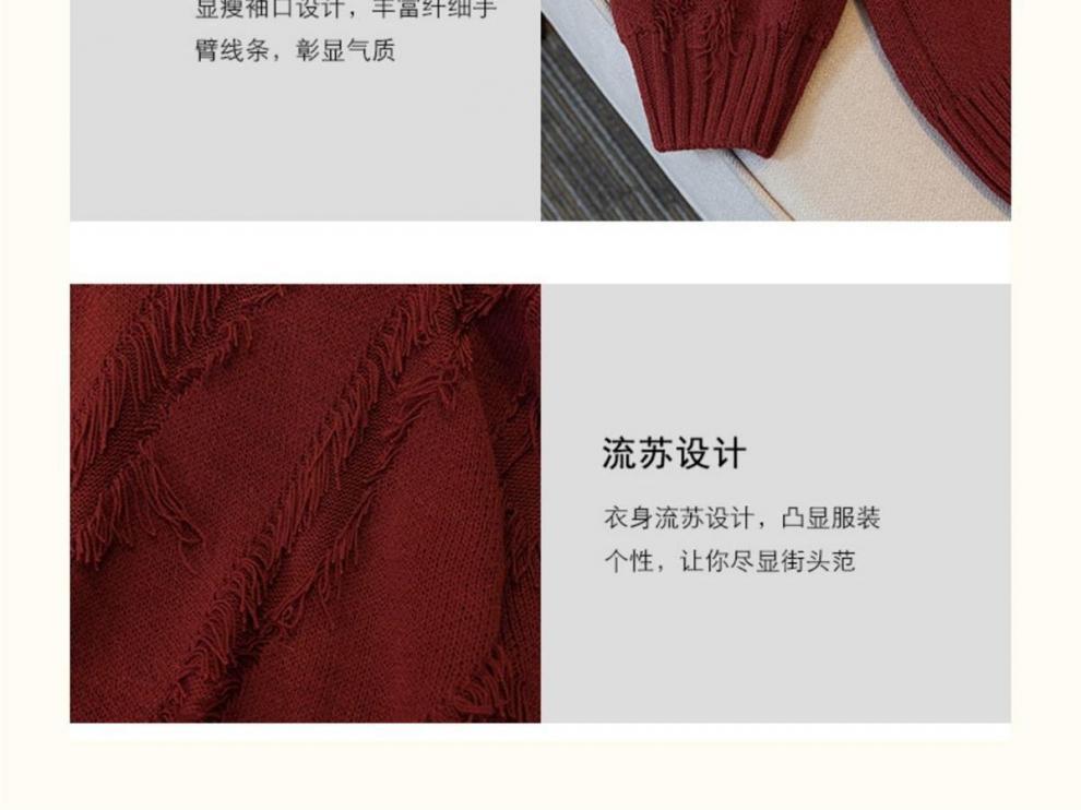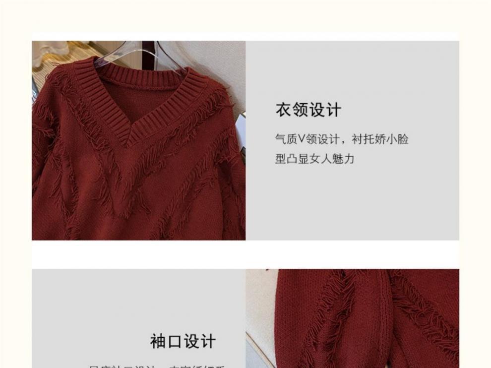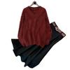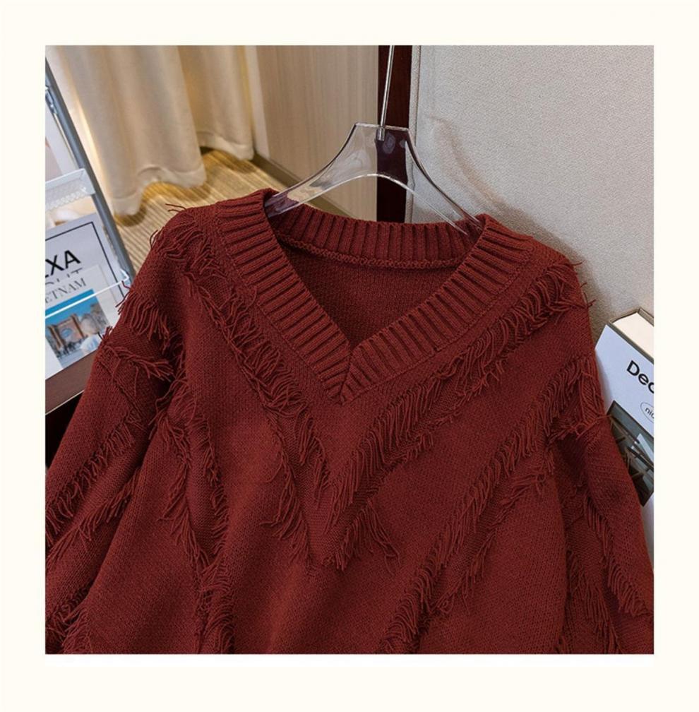 Suéter de Punto Rojo con Borlas de Primavera y Otoño con Sentido de Diseño Nuevo Falda de Cintura Alta Temperamento Conjunto de Dos Piezas Mujer