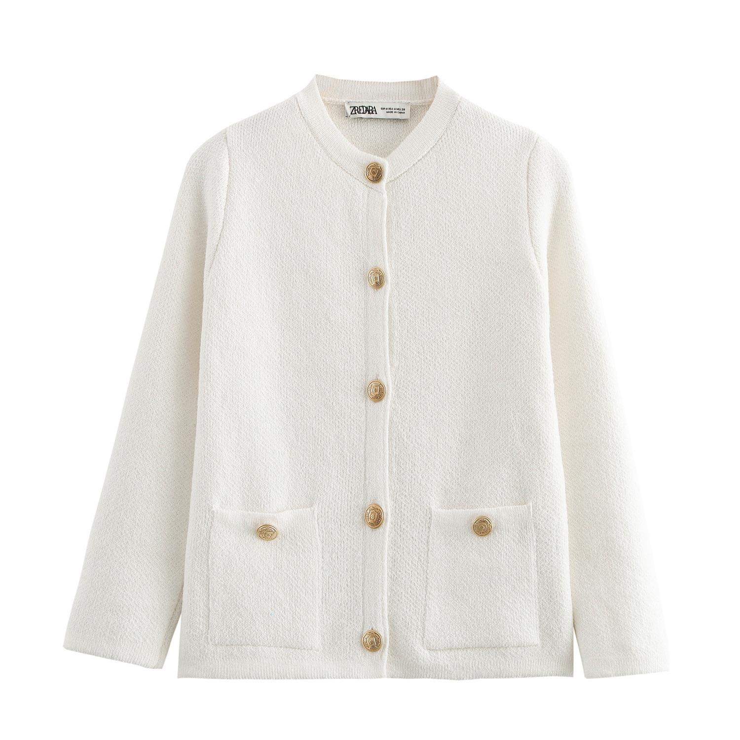 Chaqueta de punto con hebilla de manga larga, sencilla, bicolor, de moda europea y americana, primavera y otoño de 2025, nueva E3A361