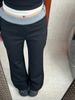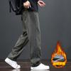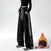Pantalones casuales con costuras negras para mujer, diseño de primavera, otoño e invierno, nuevos, forrados de polar, gruesos, ligeramente holgados, rectos, de pierna ancha.