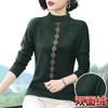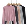 Camiseta básica de cuello alto medio de color sólido para mujer en otoño e invierno con nueva blusa elegante entallada de manga larga plisada 2025