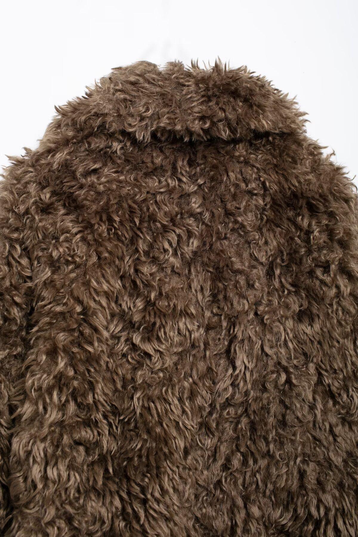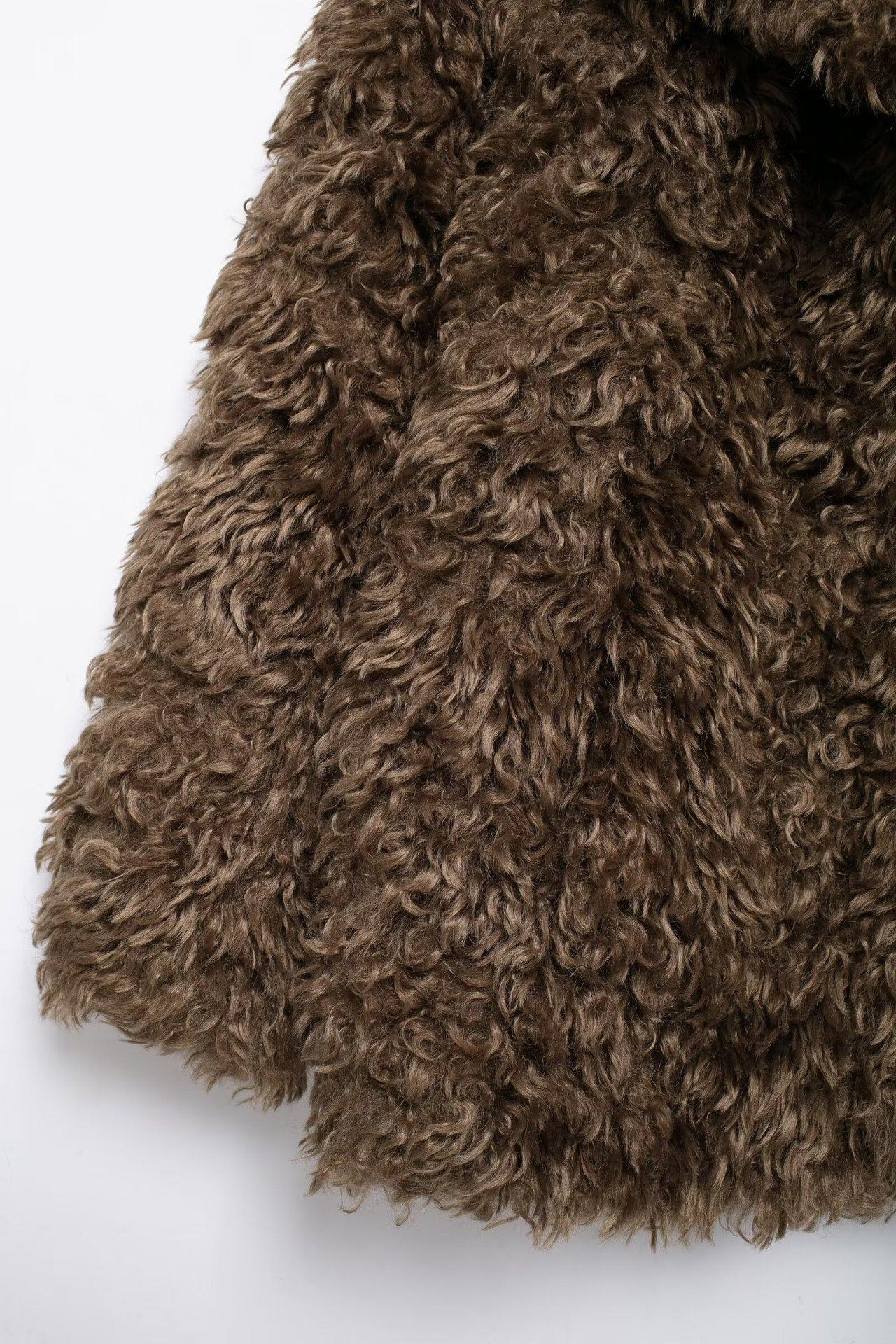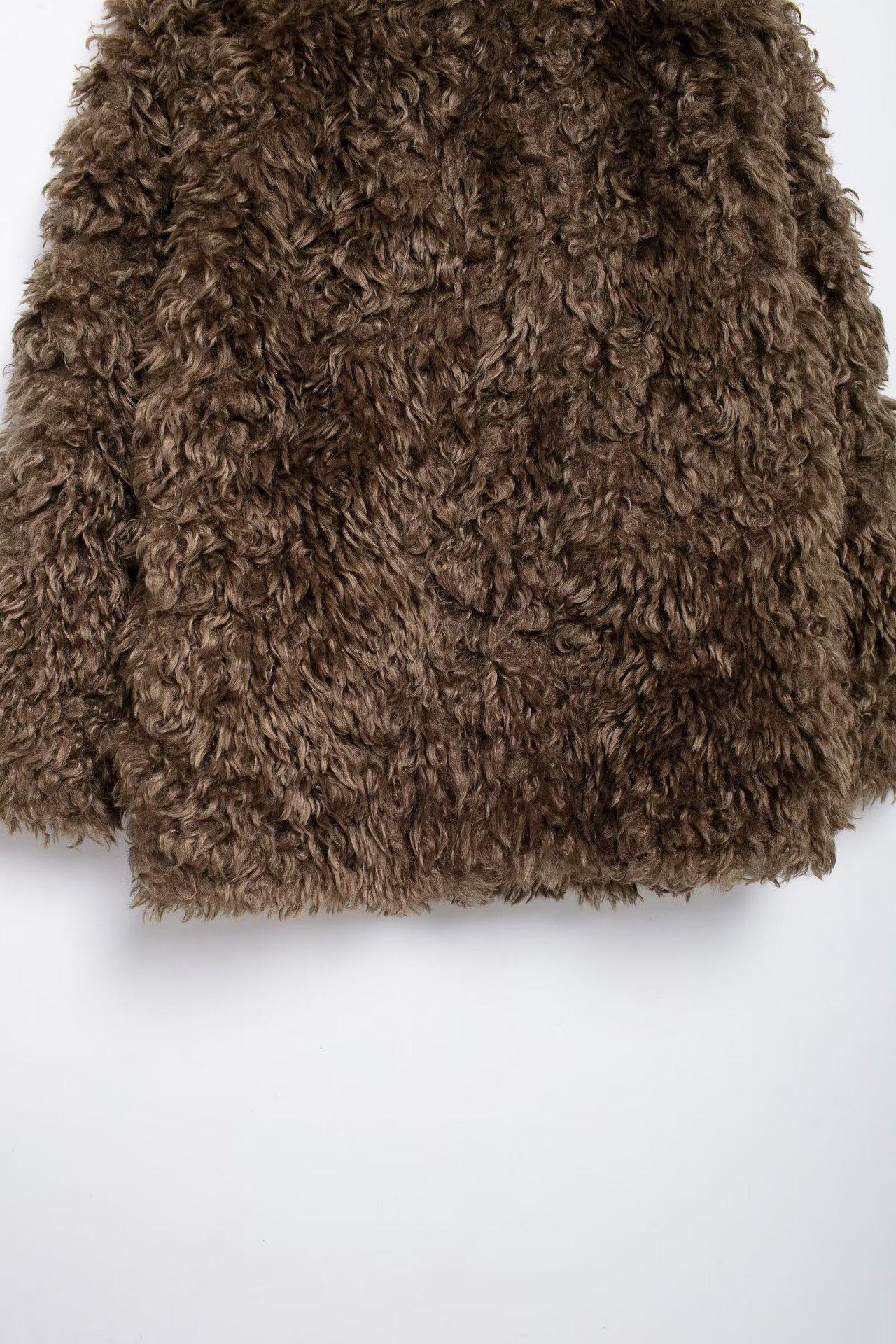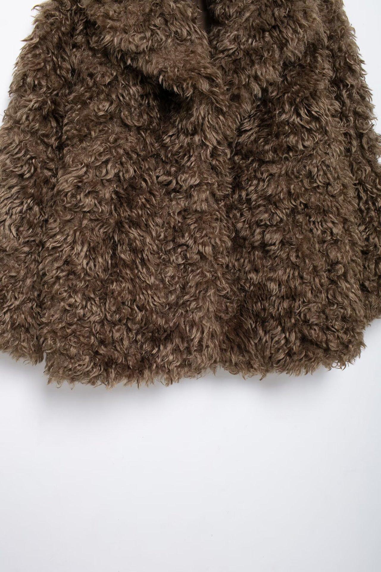 Abrigo corto con efecto de piel sintética de otoño 2024, moda urbana transfronteriza, ropa de mujer europea y americana de Amazon.