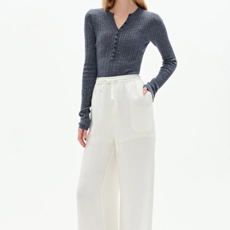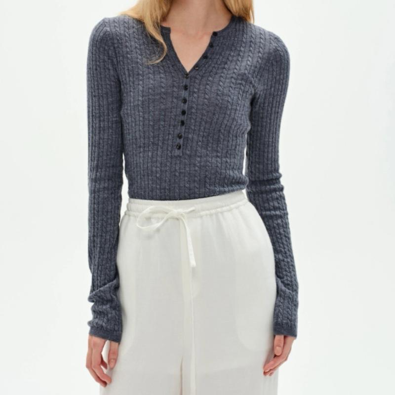 El cuello Henley está adornado con muchos botones pequeños y exquisitos, lo cual no solo facilita ponerlo y quitarlo, sino que también añade un toque de elegancia.