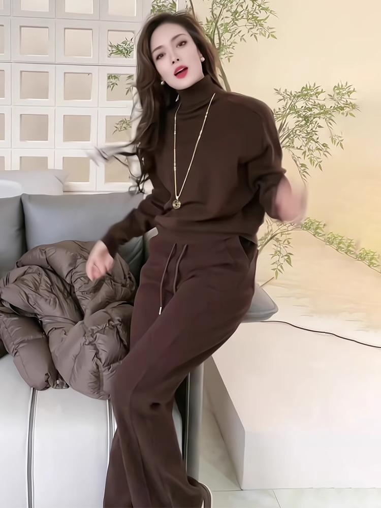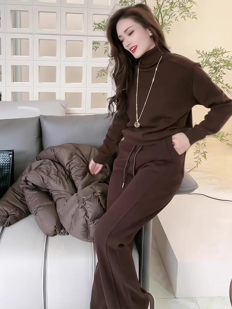 Traje deportivo casual para mujer Primavera y Otoño 2024 Nuevo Diseño de Moda Estilo Occidental Cuello Alto Color Sólido Top Conjunto de dos piezas