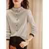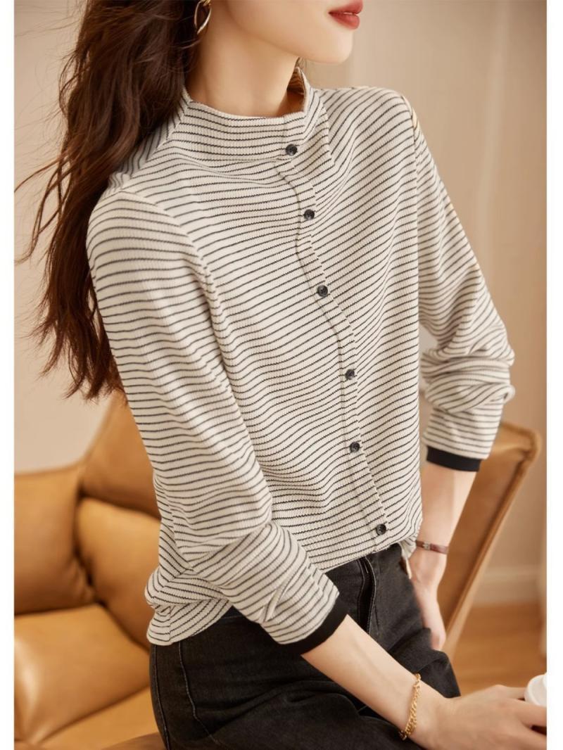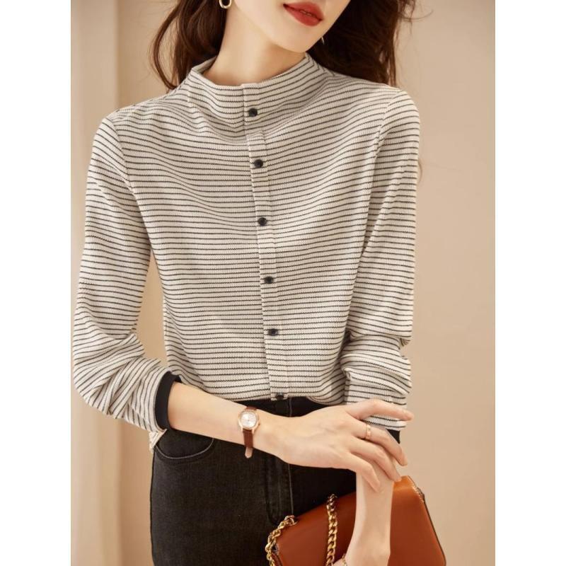 Camisa de manga larga a rayas para mujer, nueva moda de primavera y otoño 2025, camisa adelgazante de estilo occidental con cuello medio alto