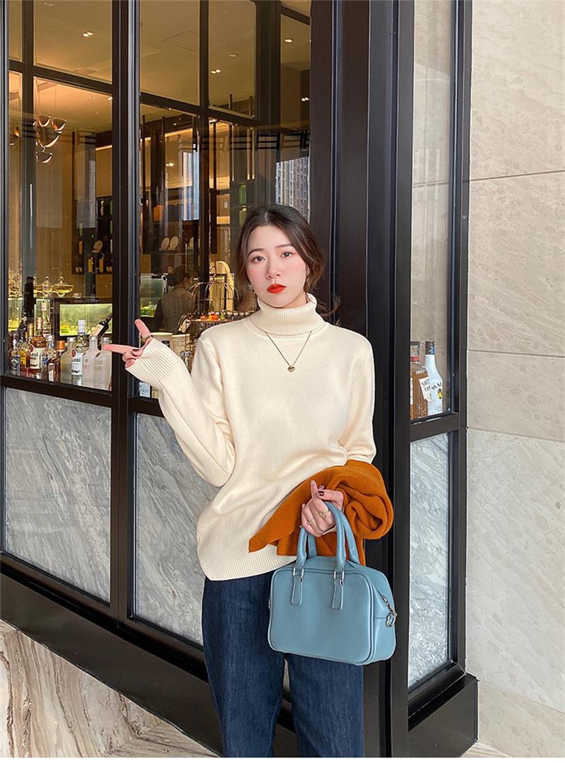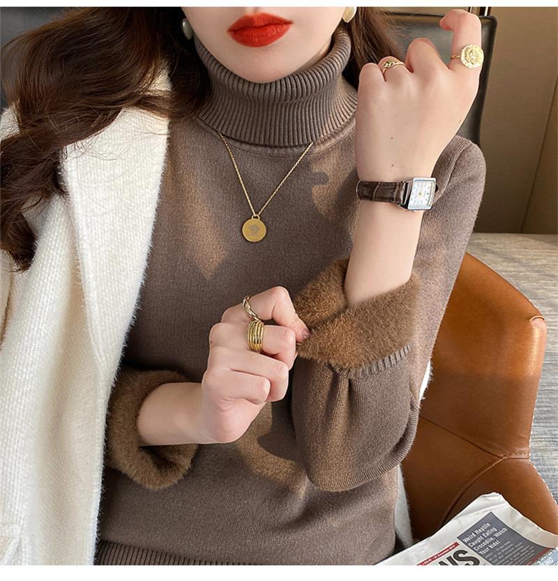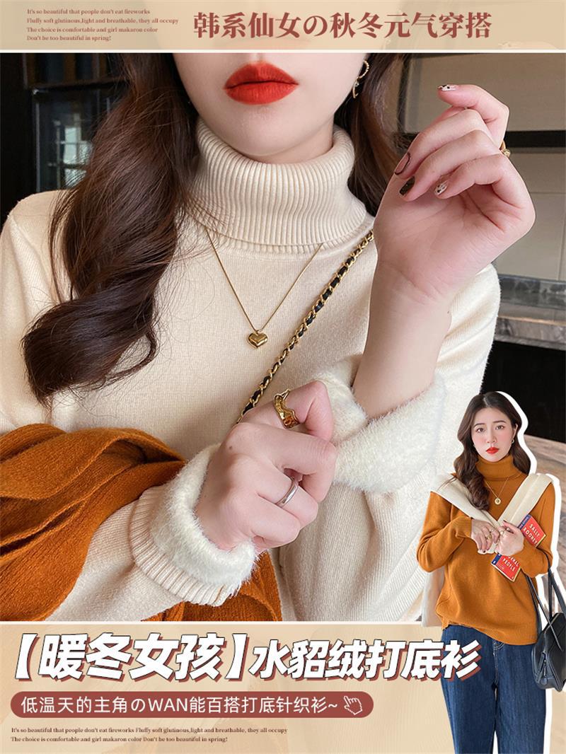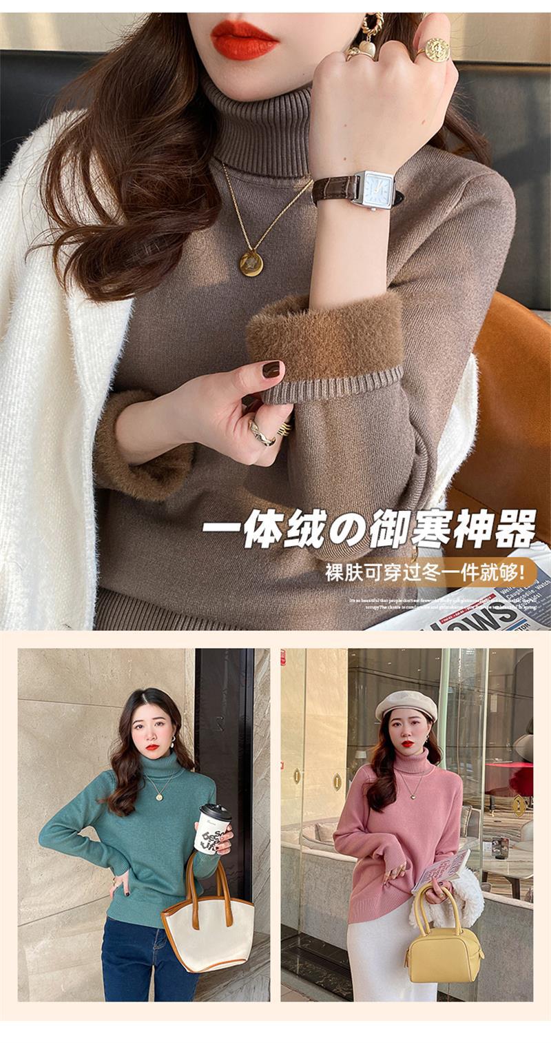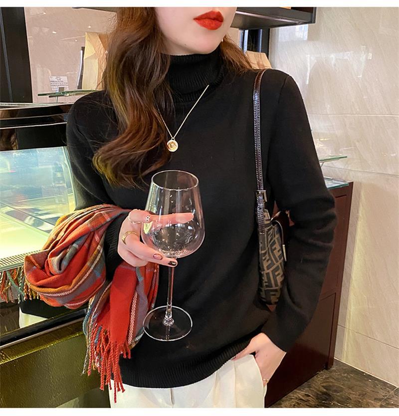 Suéter Grueso con Forro Polar para Mujer Invierno 2025 Nuevo Camiseta Básica de Cuello Alto con Ropa Cálida de Otoño e Invierno Top Estilo Occidental