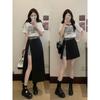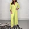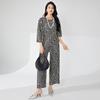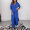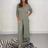 Conjunto Casual de Verano de Dos Piezas de Alta Gama para Mujer Talla Grande con Abertura Top Largo y Pantalón para Mujer Transfronterizo