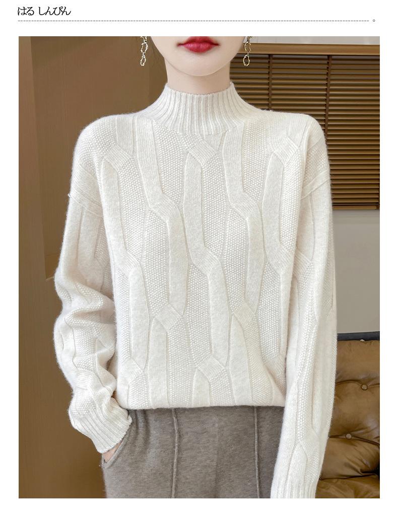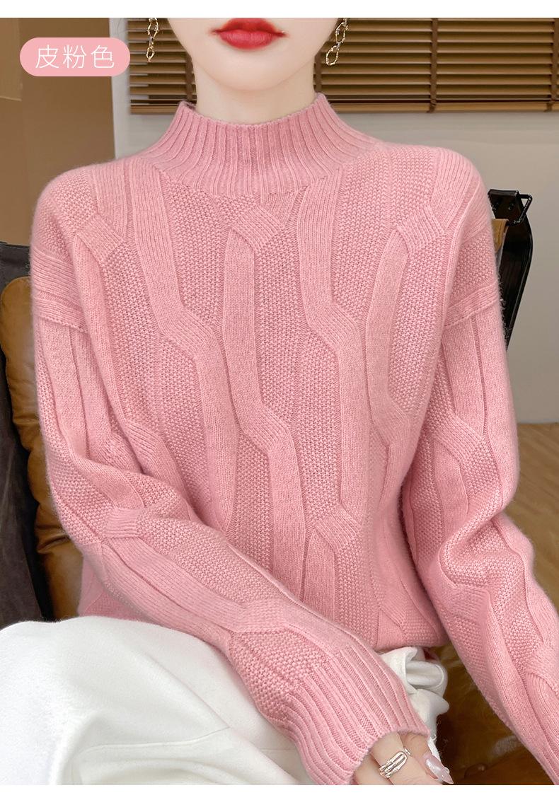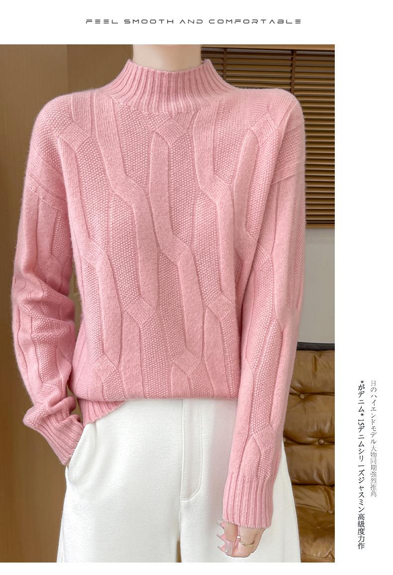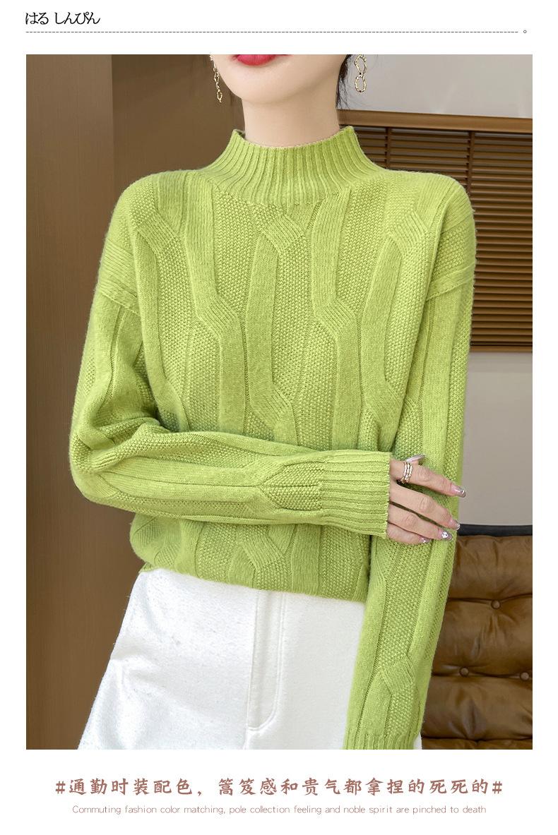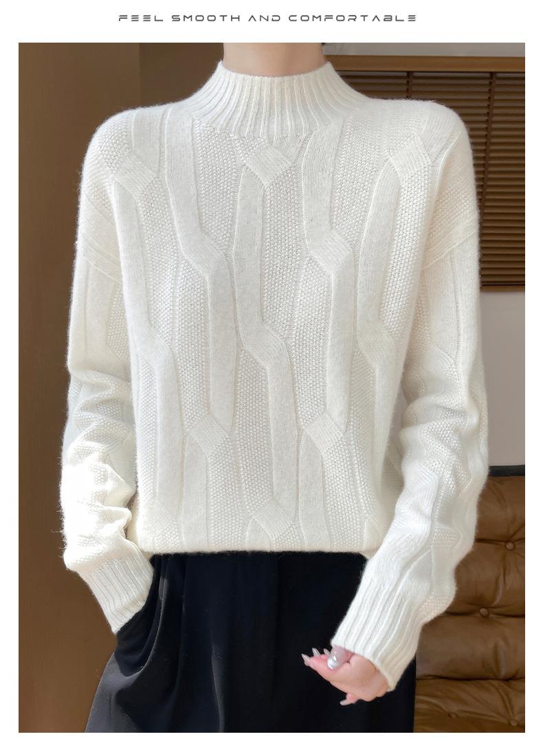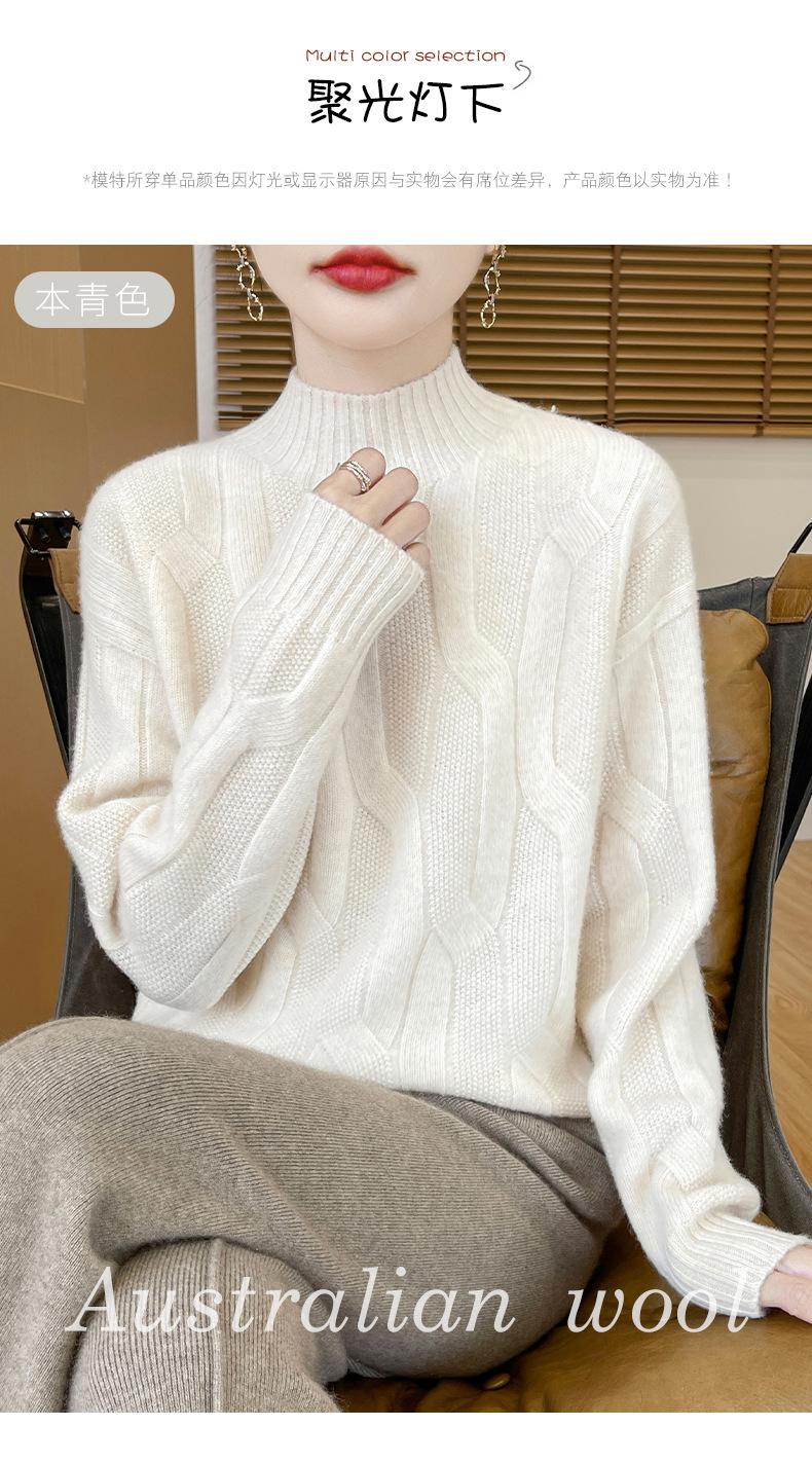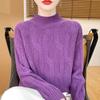 Suéter Grande Twist Bottoming Otoño e Invierno Engrosado Medio Cuello Alto Tejido de Punto para Mujer Suelto 100% Lana Tejido de Punto Nueva Ropa Exterior