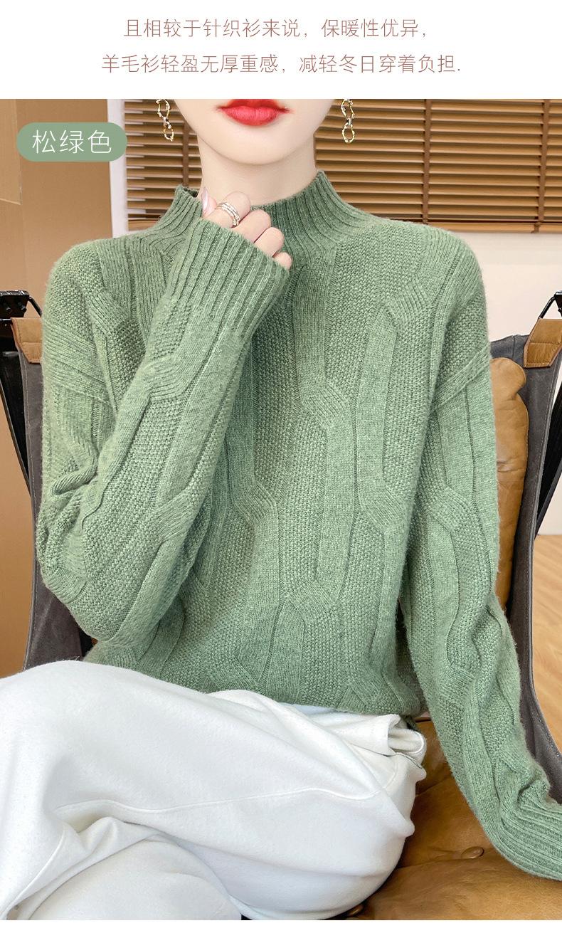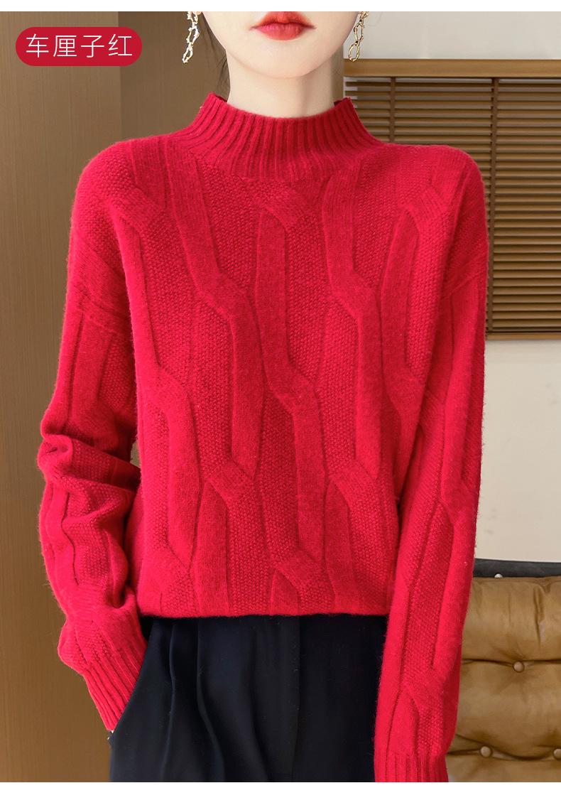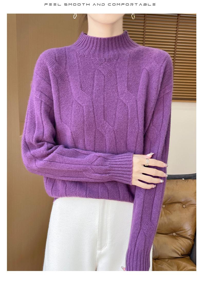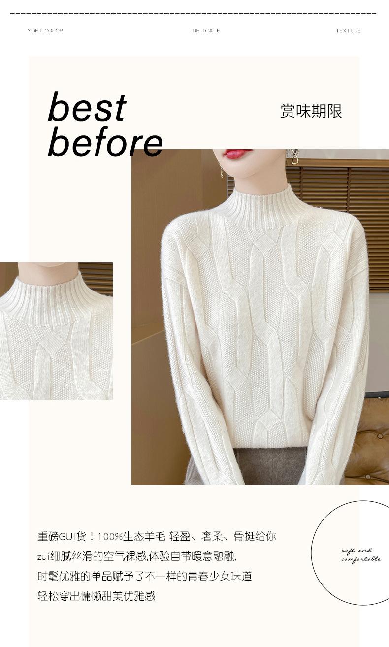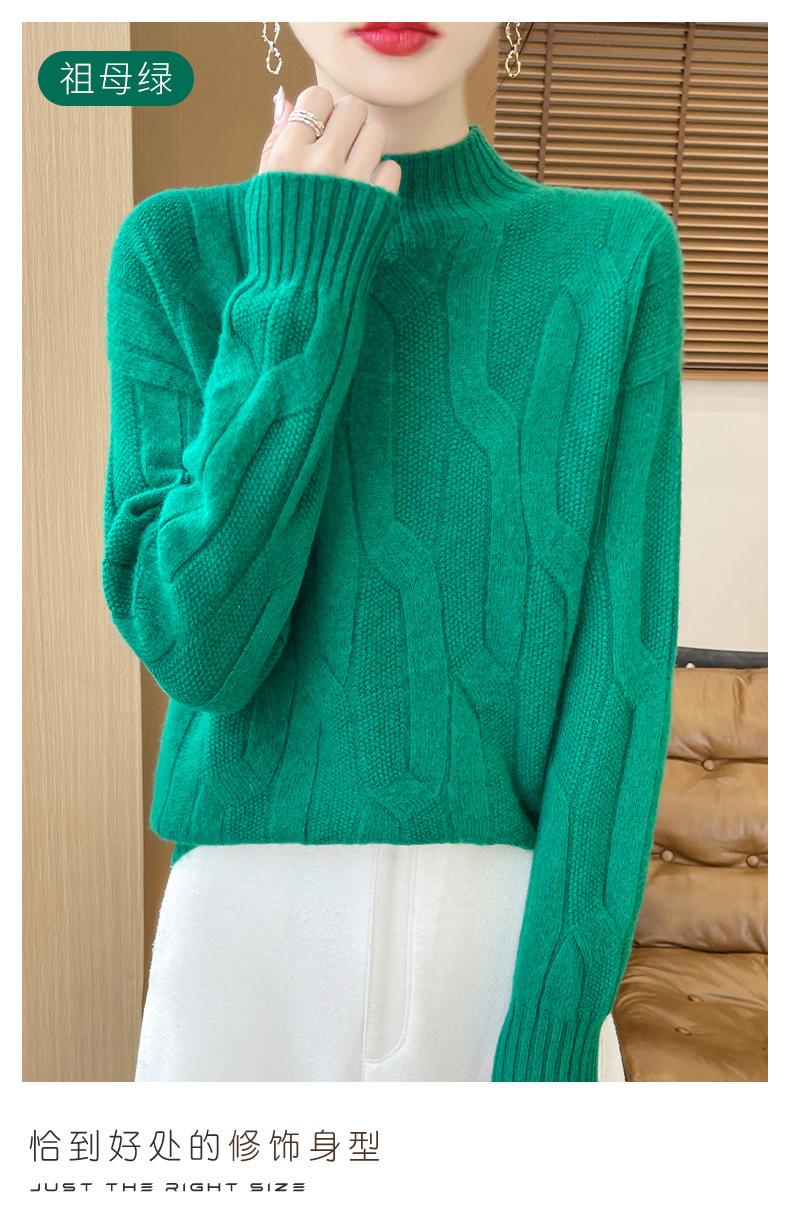 Suéter Grande Twist Bottoming Otoño e Invierno Engrosado Medio Cuello Alto Tejido de Punto para Mujer Suelto 100% Lana Tejido de Punto Nueva Ropa Exterior