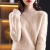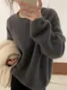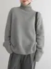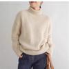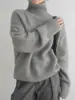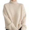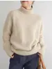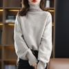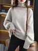 Suéter de lana pura con cuello alto para mujer, jersey de color liso, elegante, holgado, informal, de manga larga, con base encerada suave.