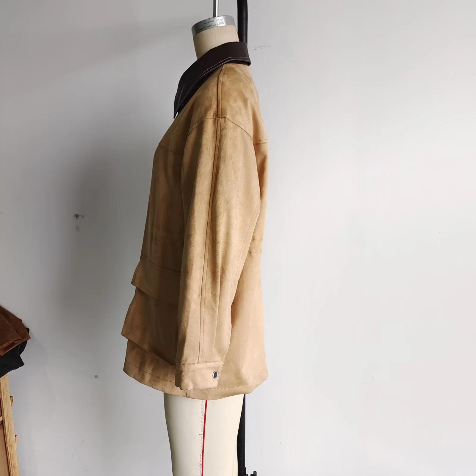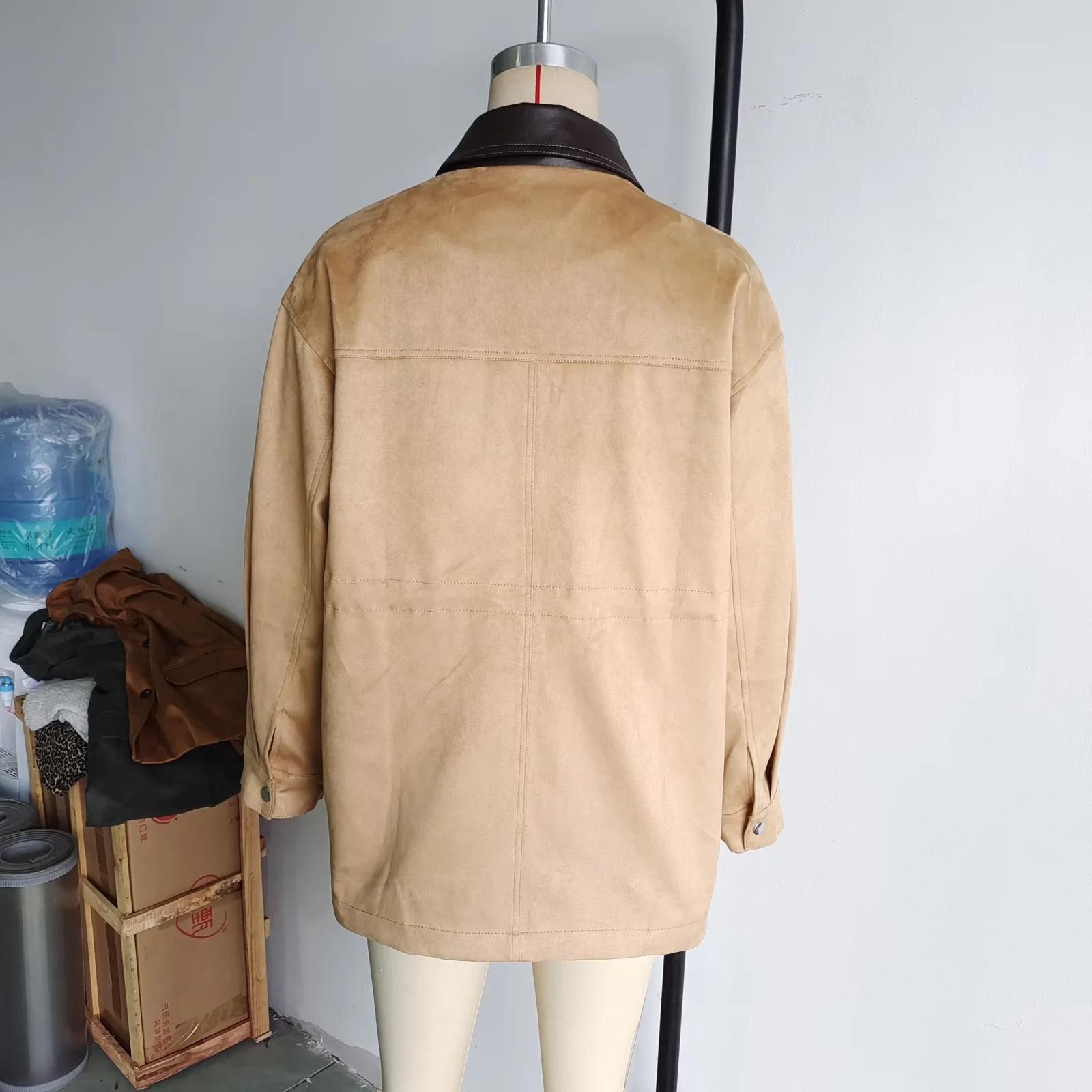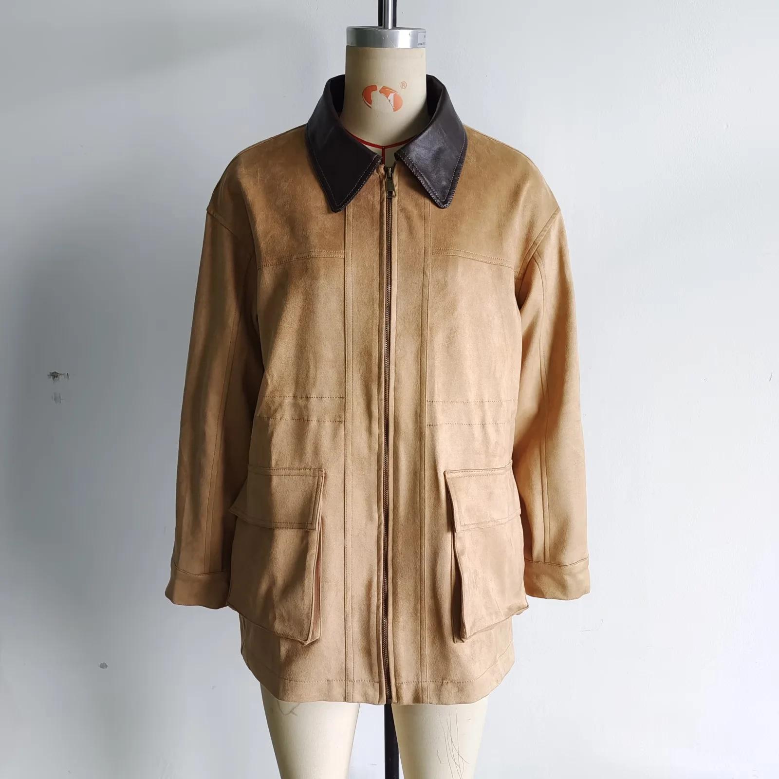 Chaqueta larga cruzada de moda de estilo europeo y americano de otoño 2024, abrigo con solapa de bolsillo grande, color para mujer, venta al por mayor