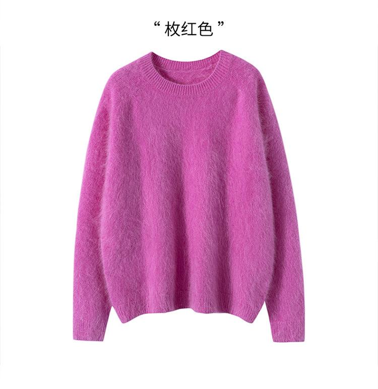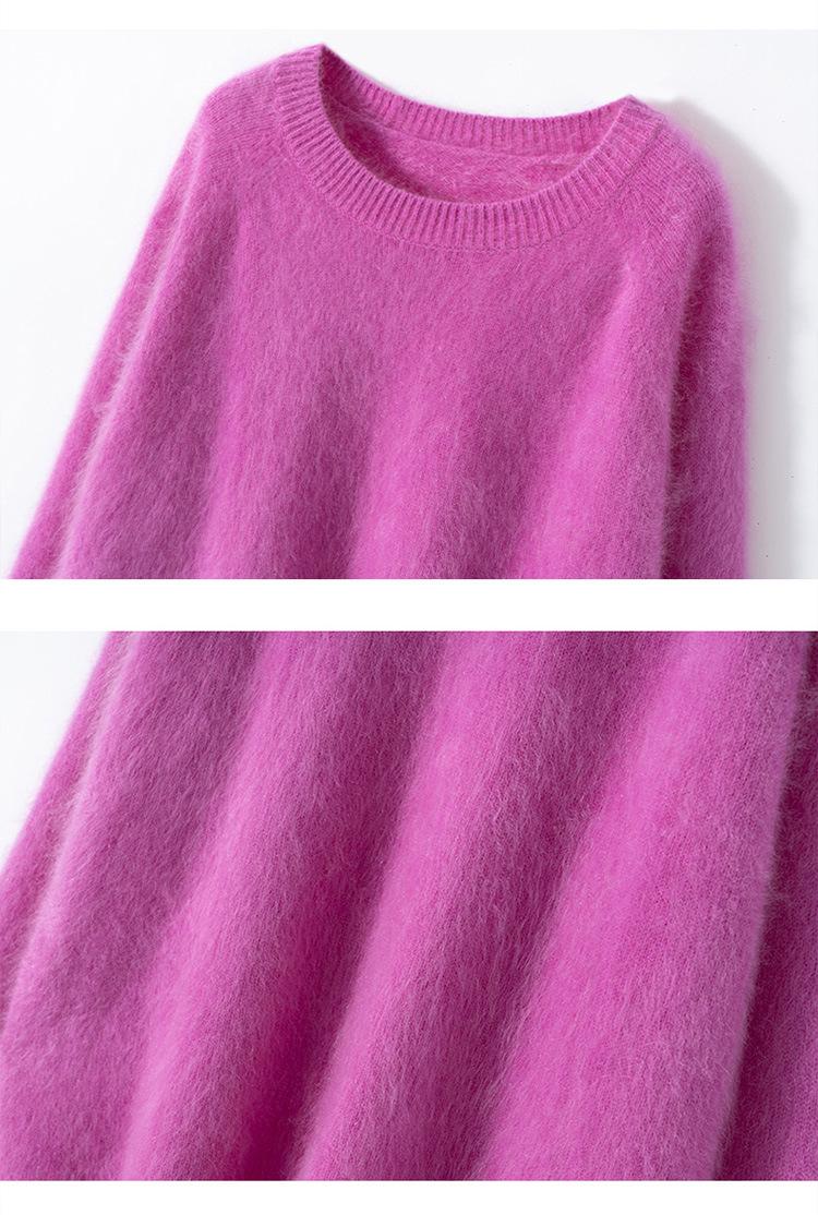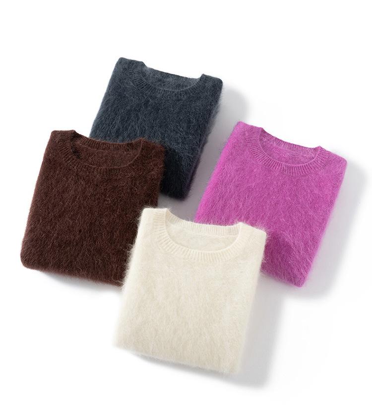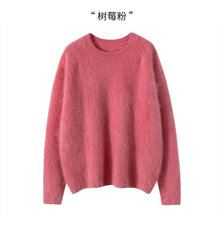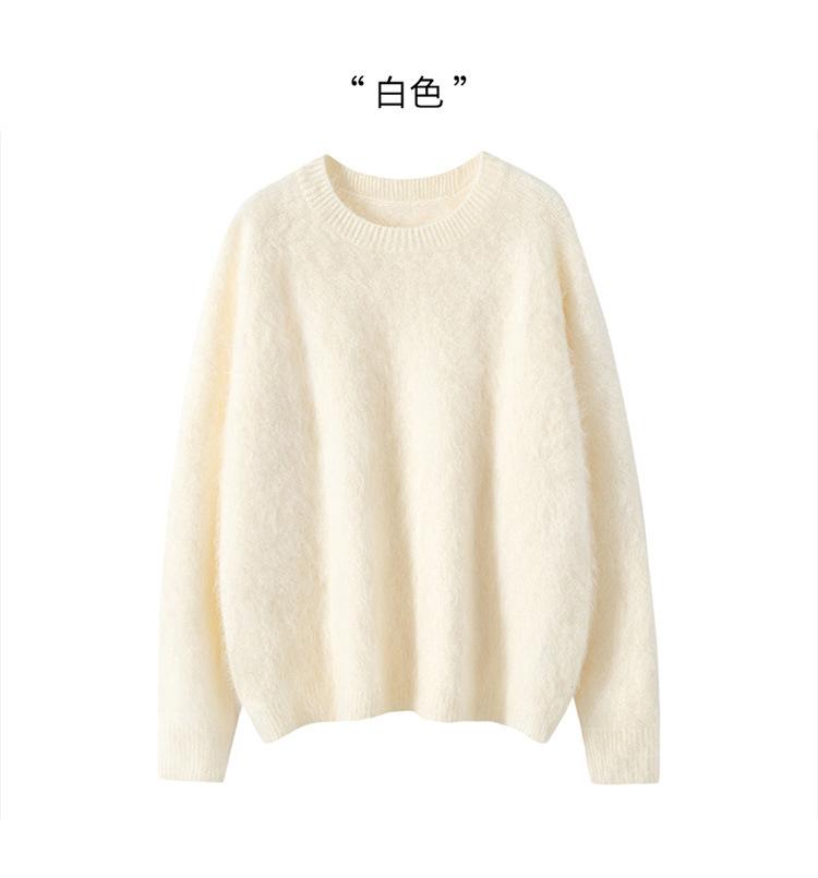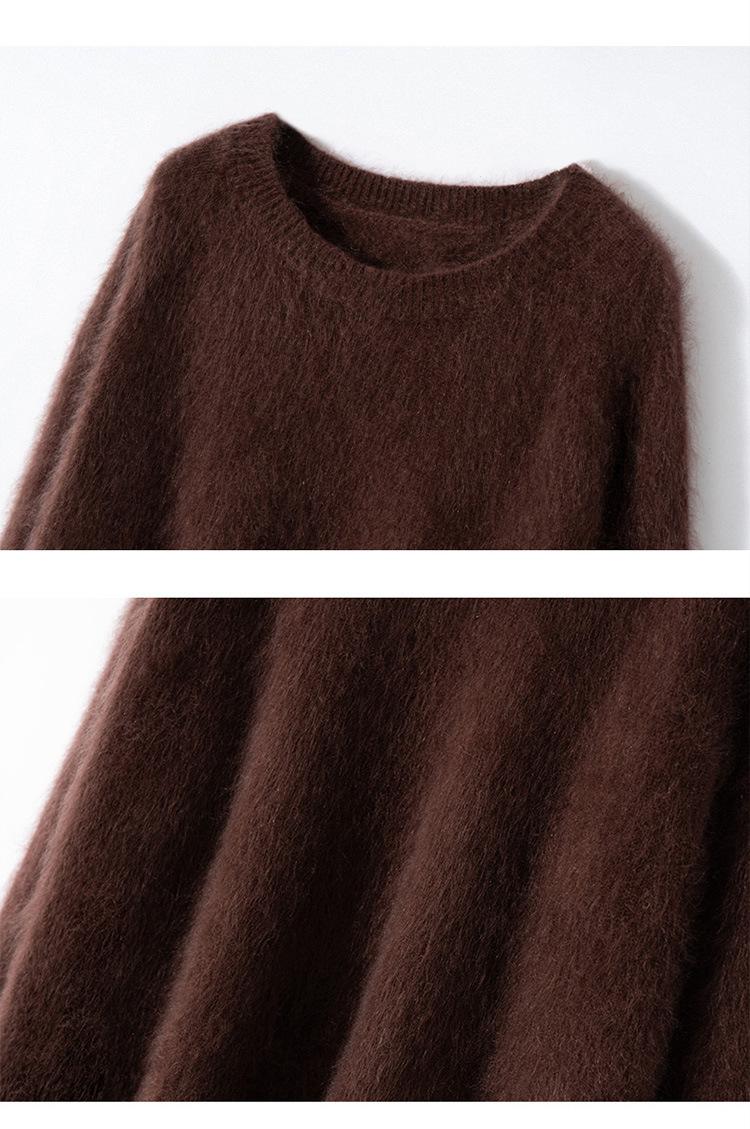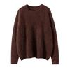 Suéter de punto de terciopelo para bebé, cuello redondo, 100% cachemira pura cepillada pesada, camisa de base de temperamento suelto para otoño e invierno para damas