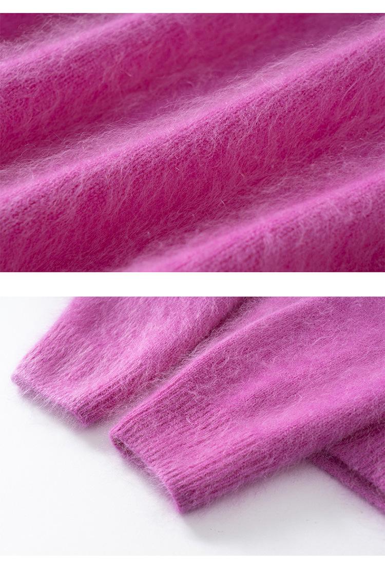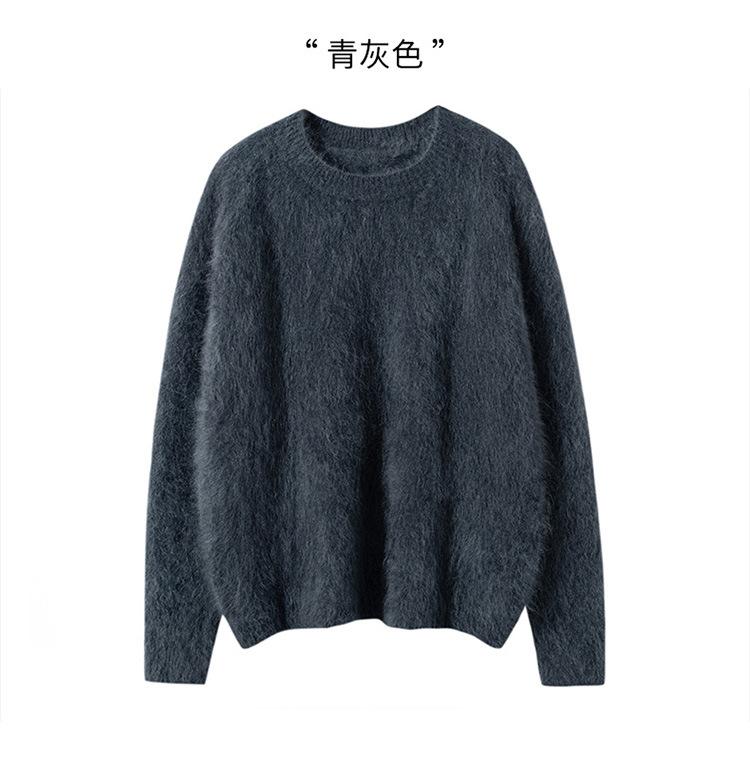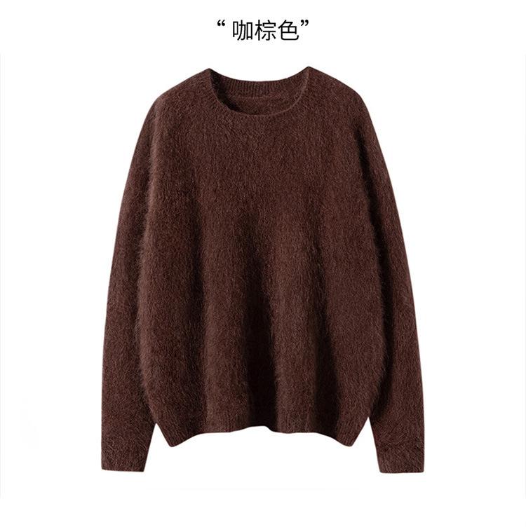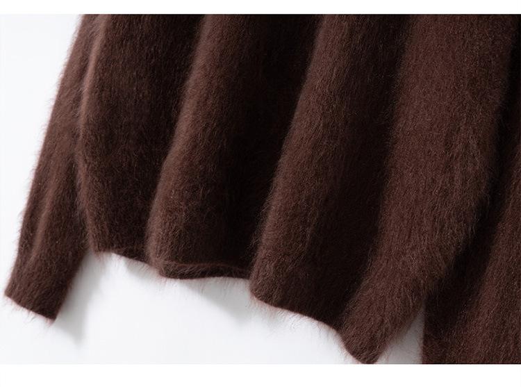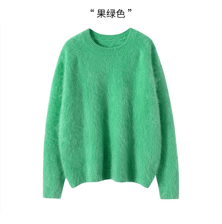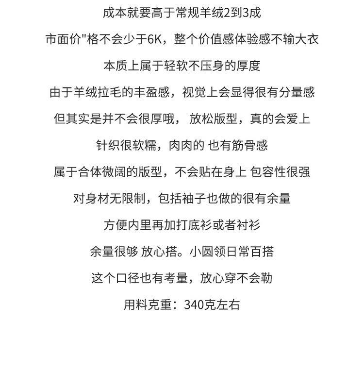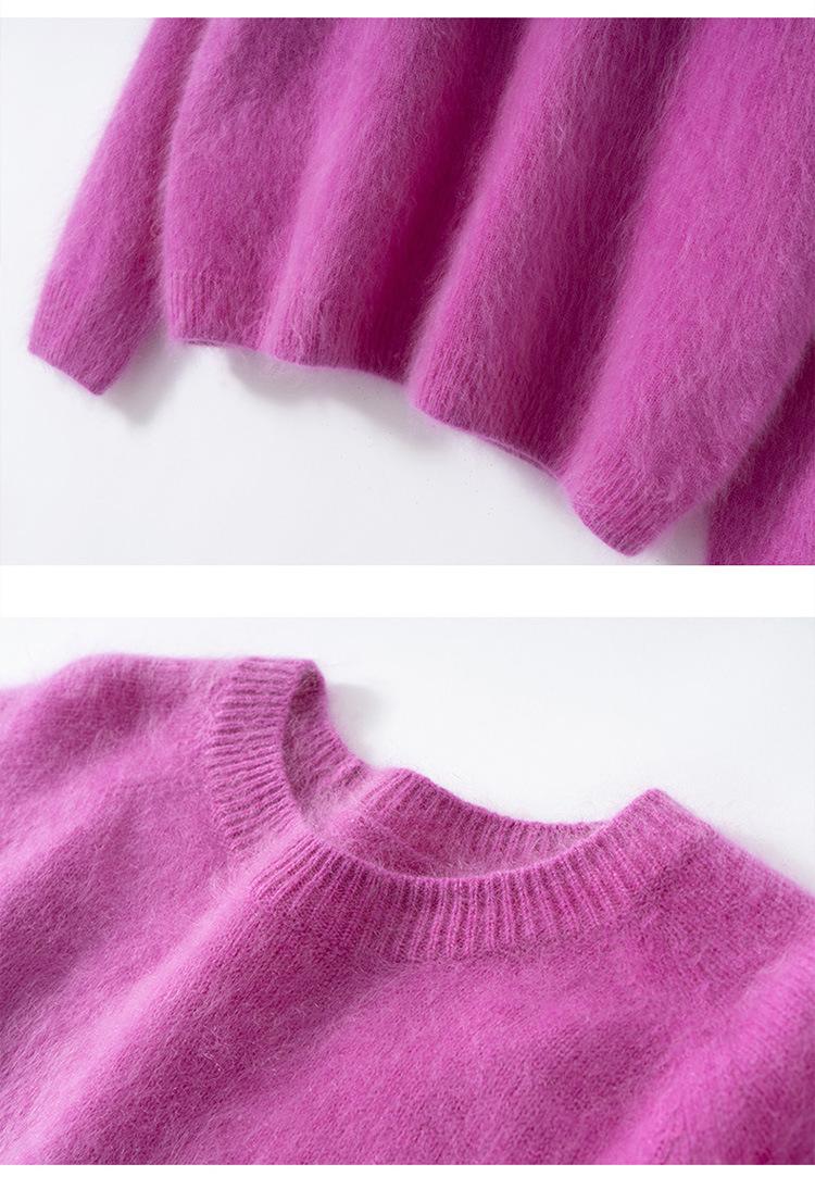 Suéter de punto de terciopelo para bebé, cuello redondo, 100% cachemira pura cepillada pesada, camisa de base de temperamento suelto para otoño e invierno para damas