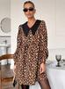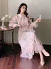 Vestido con estampado transfronterizo europeo y americano, cuello alto, manga larga, tirantes en la cintura, falda de hada de gasa francesa nicho
