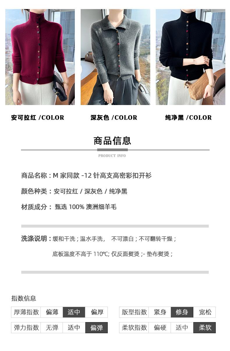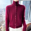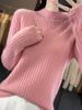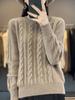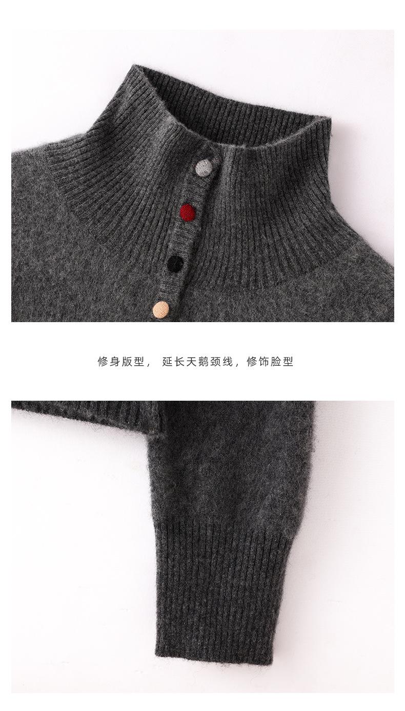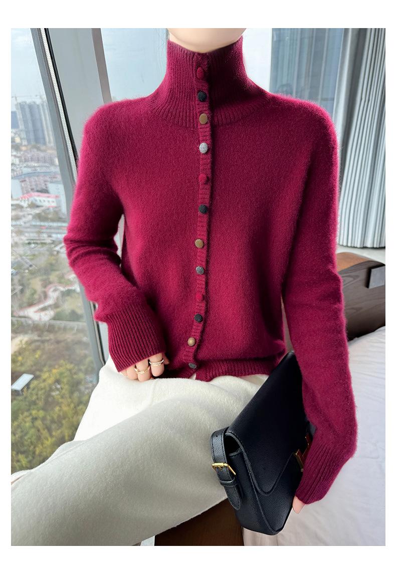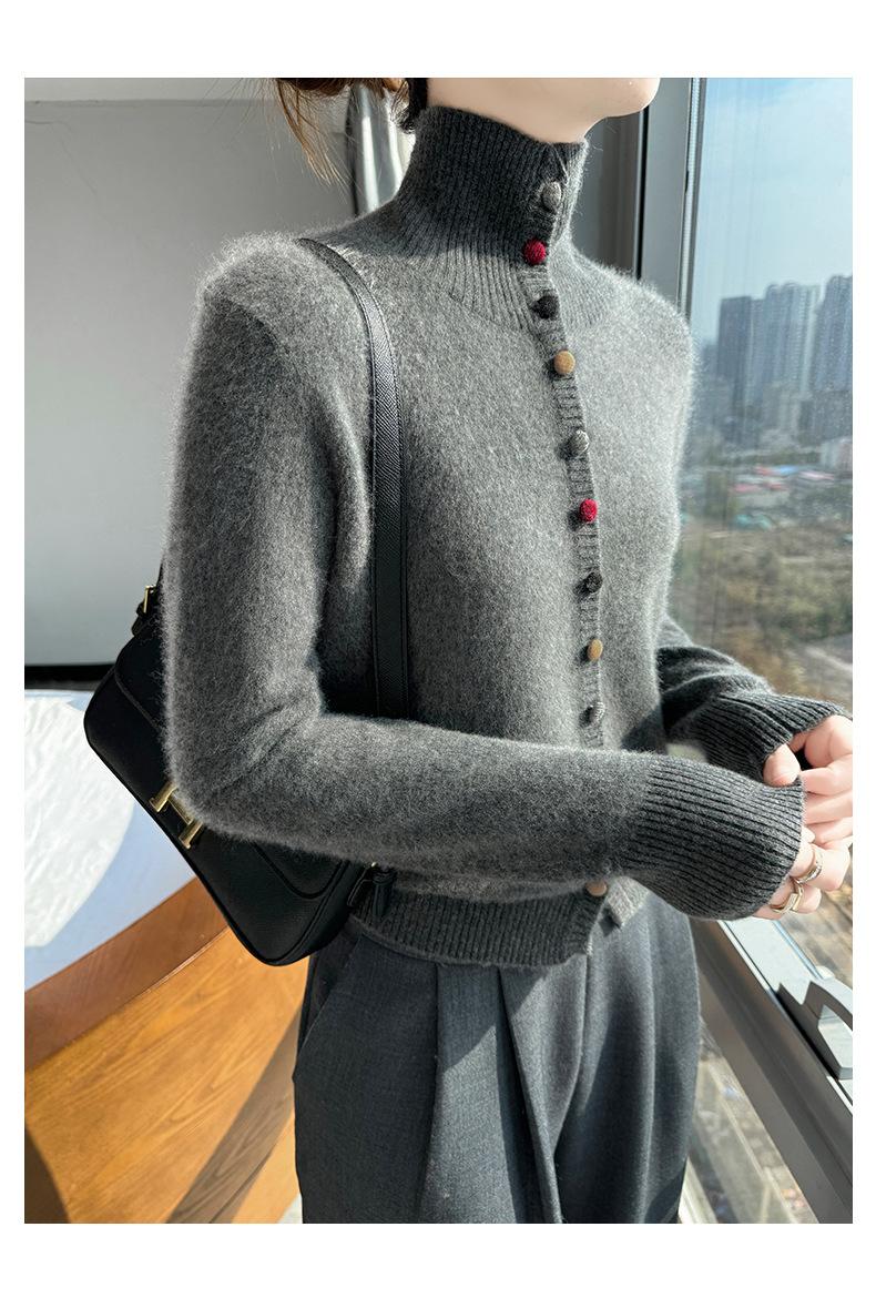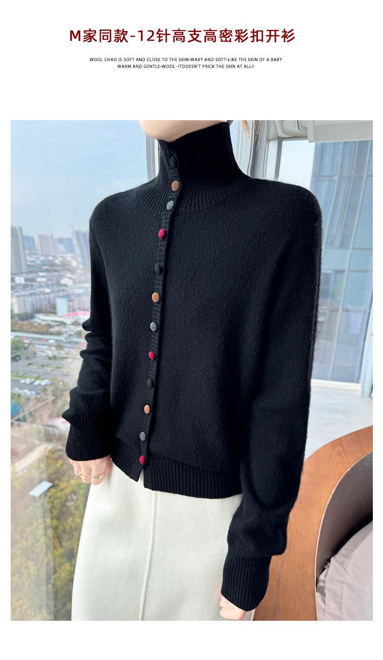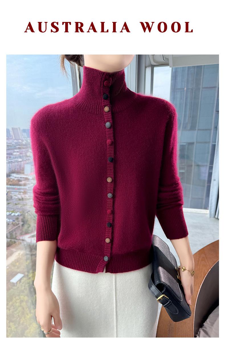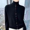 Suéter de cuello alto con hebilla de color para mujer, suéter de lana tejida 100% pura para mujer, nueva camisa base holgada de estilo occidental para otoño e invierno