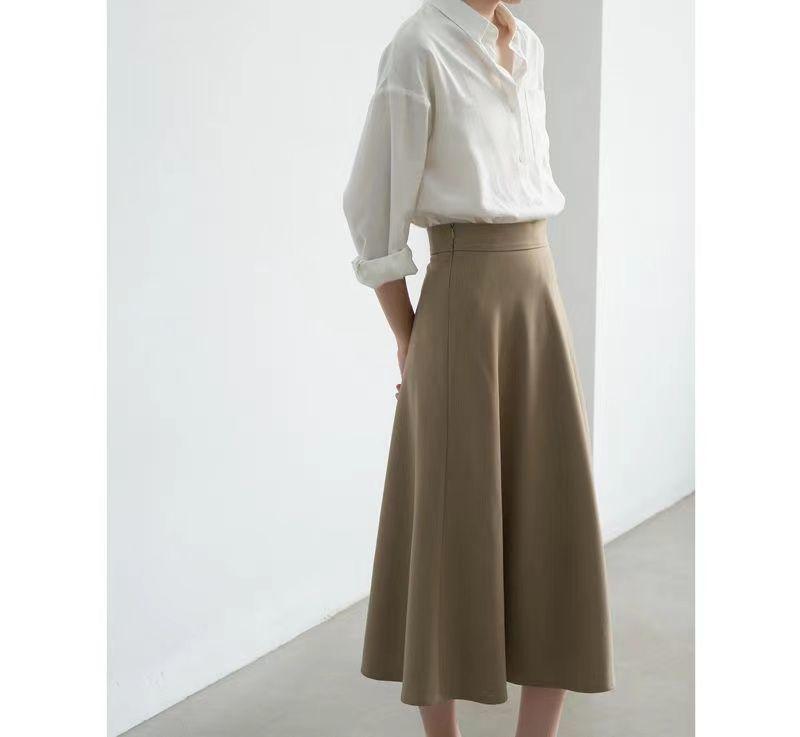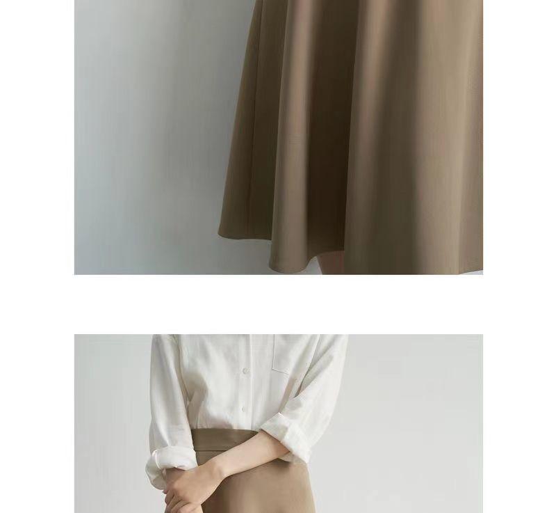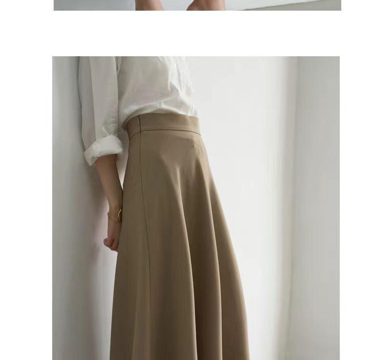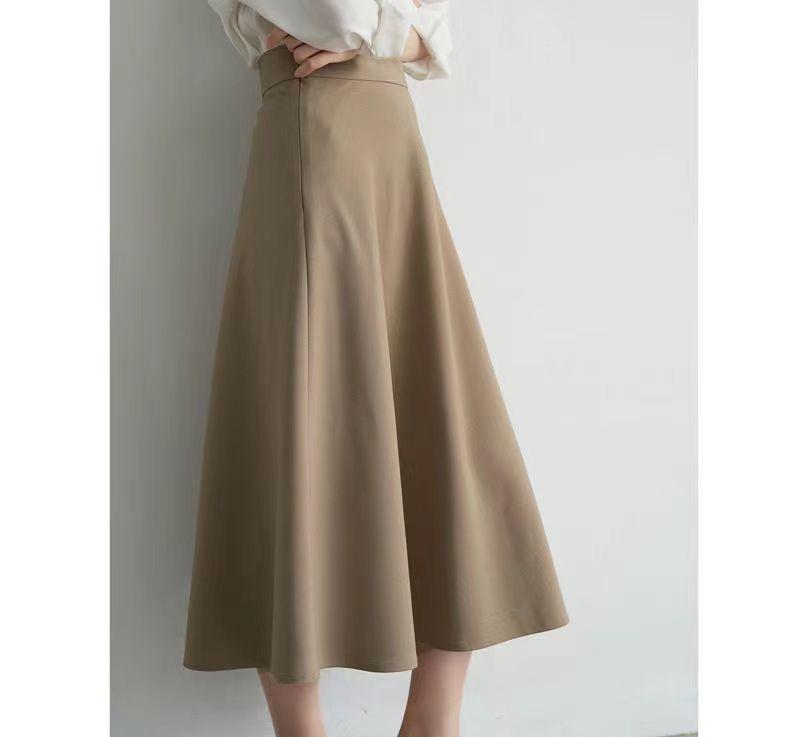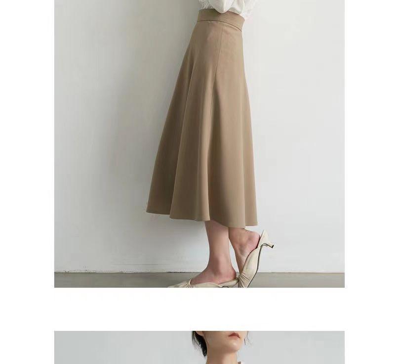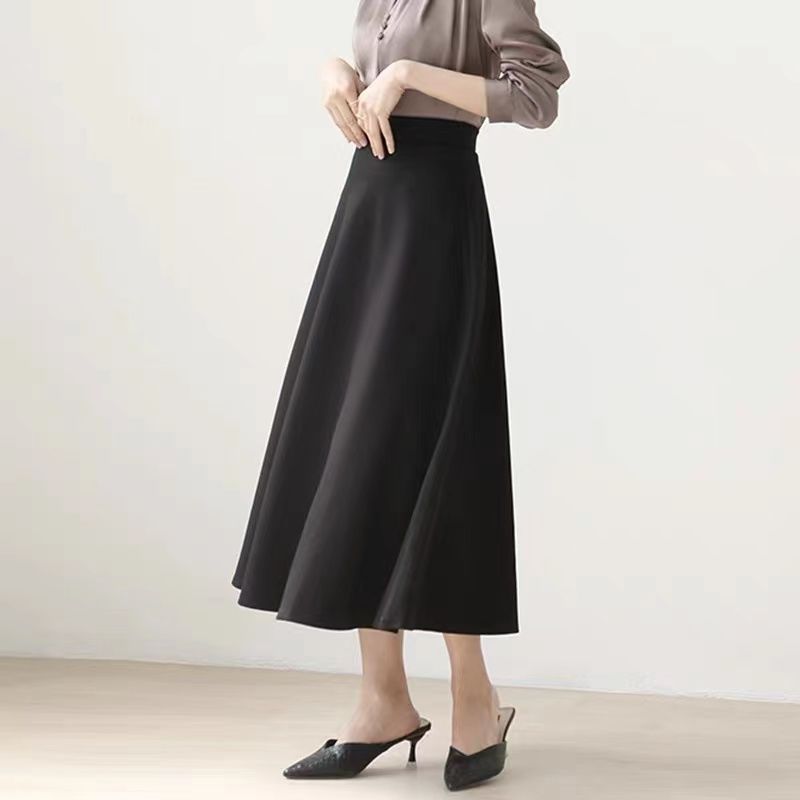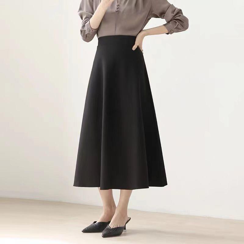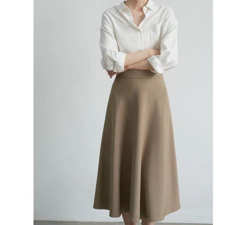 Falda sencilla de color sólido de largo medio nueva de primavera 2024 para mujer falda línea A cintura alta adelgazante falda larga
